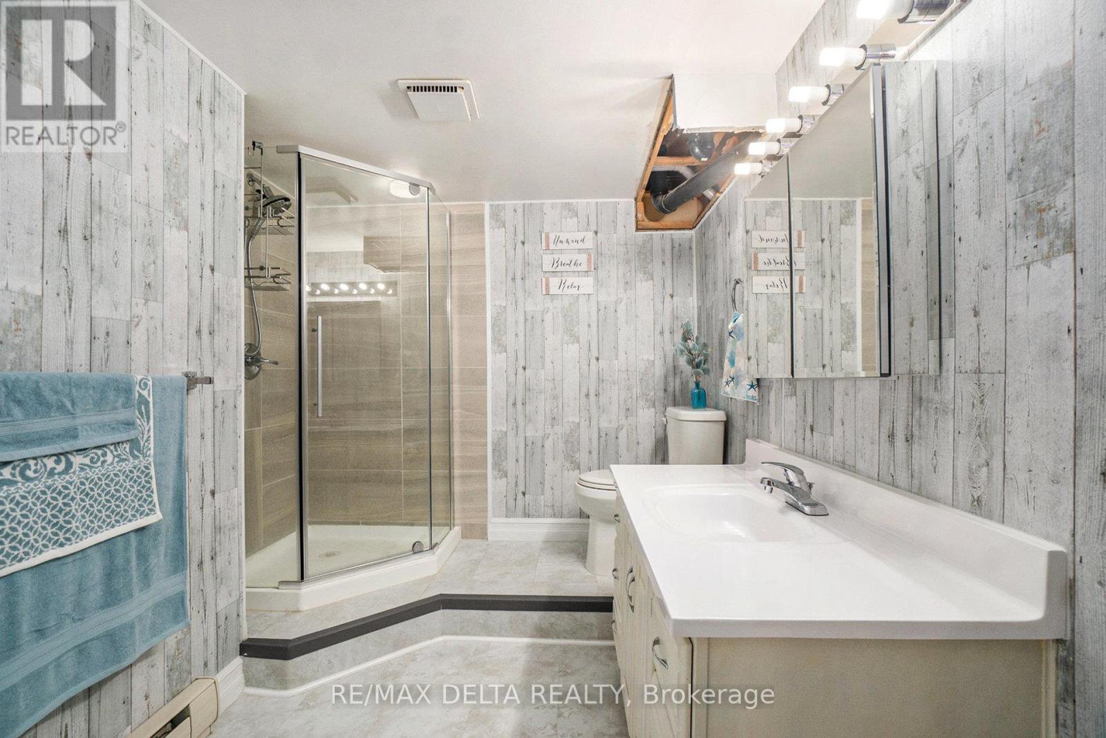 Welcome to this beautifully maintained brick bungalow, offering the perfect blend of comfort, style, and thoughtful upgrades throughout. The large, bright kitchen features solid oak cabinetry and built-in appliances, flowing seamlessly into a spacious and inviting living room-ideal for everyday living and entertaining. The primary bedroom includes a convenient 2-piece ensuite, while the fully finished basement adds exceptional bonus space with a cozy gas fireplace, abundant storage, and a newly renovated bathroom completed in 2024. The bedrooms showcase new flooring installed in 2025, enhancing both style and comfort. Step outside to a generous, fully fenced backyard with a pool-perfect for summer entertaining. The corner lot adds privacy and curb appeal, creating a peaceful outdoor retreat. Notable updates include a 200-amp electrical panel, an owned on-demand hot water heater (2023), air conditioning (2009), and a roof replaced in 2014. The front windows and front door have also been updated. The home is now heated with natural gas; however, the original electric baseboards remain in place and fully functional if ever needed. All of this is just a short walk to the village, parks, and local amenities. Move-in ready with charm, upgrades, and a fantastic location - this is truly a must-see!