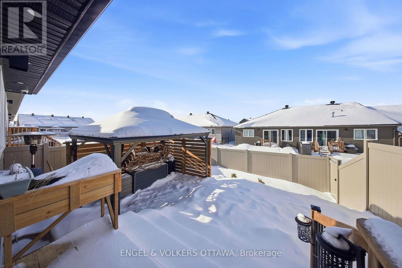 Beautifully appointed Neilcorp-built freehold end-unit bungalow townhome in the heart of Almonte! Offering 3 bedrooms, 3 full bathrooms, a fully finished basement, extended driveway, EV charger, and thoughtful upgrades throughout. The main level showcases a stunning modern kitchen featuring brand-new stainless steel appliances, an elevated backsplash, and beautiful quartz countertops. The open-concept design flows seamlessly into the dining and living areas, creating an inviting space perfect for both everyday living and entertaining. Large patio doors lead to a spacious deck, screened gazebo, and fully fenced backyard - a tranquil outdoor retreat. The spacious primary bedroom offers generous closet space and a beautifully upgraded ensuite complete with a spa-inspired bath and shower, tile finishes, and a double-sink vanity. The second bedroom - ideal as a guest room or home office - along with an upgraded main bath and convenient main-floor laundry complete the main level. The professionally finished basement expands the living space with a generous family room perfect for movie nights, a dedicated workout area and home office space, a third bedroom with its own ensuite, and abundant storage. Enjoy the best of Almonte's small-town charm paired with modern convenience - just steps from scenic walking trails, parks, local shops, and favourites like Equator Coffee and Joe's Italian Kitchen. Don't miss this opportunity to live in a vibrant, welcoming community while enjoying stylish, low-maintenance living.