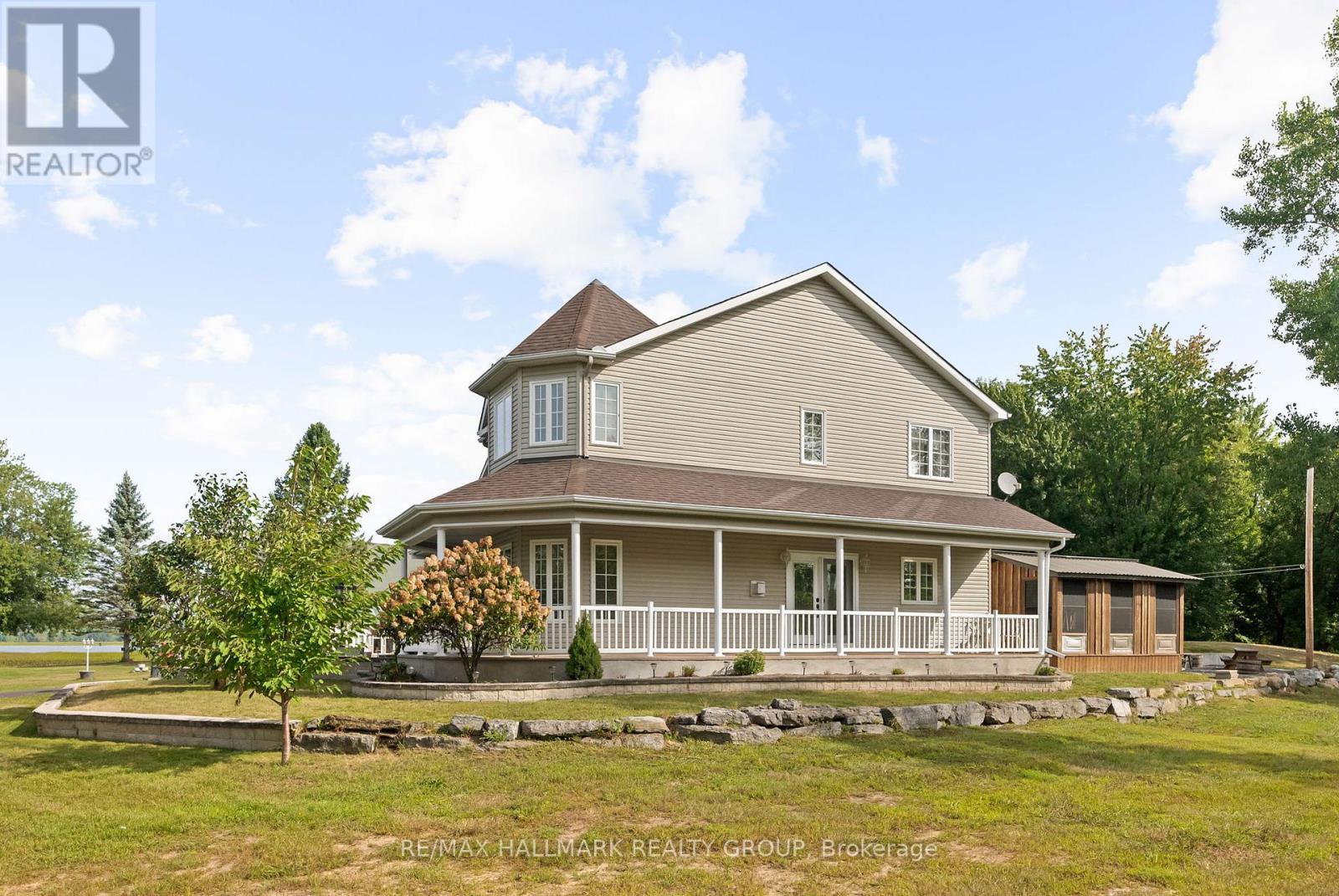 Welcome to this stunning 3-bedroom home perfectly situated next to the Ottawa River, offering incredible views, abundant natural light from its many windows, and the bonus of a private in-law suite. The home's inviting wraparound porch adds charm and plenty of space to relax outdoors, while inside, the gourmet kitchen features a gas stove, large island, and ample room for entertaining. The living room boasts a cozy three-sided fireplace, while bamboo floors and a feature dining room wall add warmth and character. The dining area overlooks the expansive back deck, which includes a fully enclosed gazebo (3.55mx4.70m) that functions as an outdoor living space, offering plenty of room to relax, dine, or entertain in comfort throughout the seasons. The main floor also includes a full 3-piece bathroom and laundry room for added convenience. Upstairs, you'll find a spacious primary bedroom, overlooking the water, paired with a truly stunning main bathroom that exudes luxury, featuring a freestanding soaking tub, oversized glass shower with rainfall showerhead, dual vanities, elegant tile work, and a vaulted window that floods the space with natural light, creating a spa-like retreat right at home. The fully finished lower level offers a home theatre room, perfect for movie nights. The in-law suite, privately set above the oversized two-car garage, provides versatile living space for extended family or guests. This home is truly one of a kind, ideal if you're looking for comfort, functionality, and a touch of something special right by the water. 24 hour irrevocable on all offers.