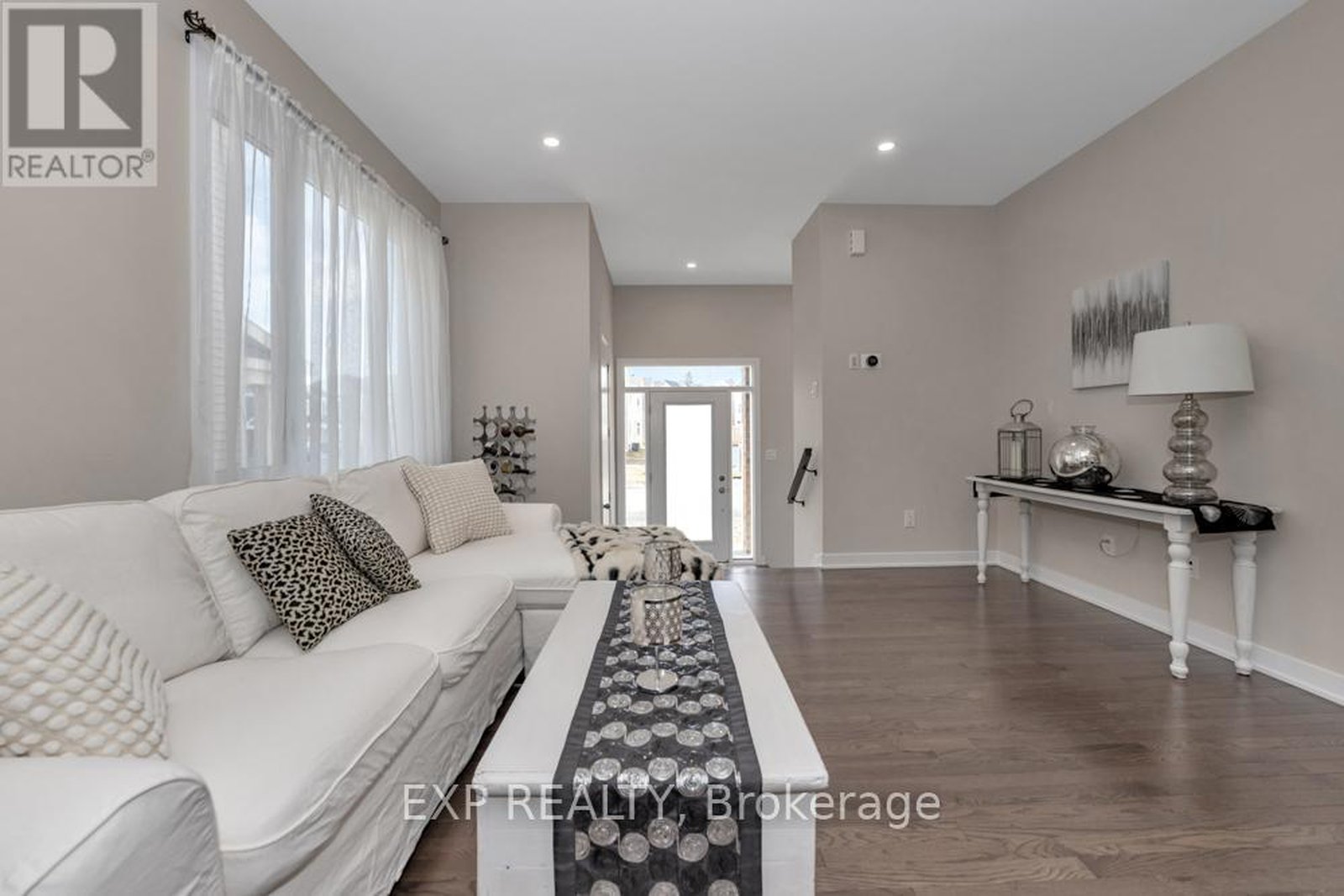 Introducing this stunning newly built townhouse in Trailsedge, featuring 3 bedrooms, 4 baths, and a finished basement. The inviting foyer sets the tone for comfortable living, leading to a thoughtfully designed, open layout with 9-foot ceilings. The upgraded, gourmet kitchen boasts quartz countertops and stainless steel appliances, while the bright living room windows create an expansive airy ambiance, complemented by a spacious formal dining room. Upstairs, the primary bedroom offers a 3-piece ensuite and walk-in closet, alongside two more well-appointed bedrooms sharing a full bath. Backyard has a privacy hedge, no rear neighbours backing onto property. Enjoy nearby amenities, top schools, and convenient transportation access. A beautiful home to create memories for you and your family or an easily rentable, investment property, don't miss out on this exceptional opportunity!