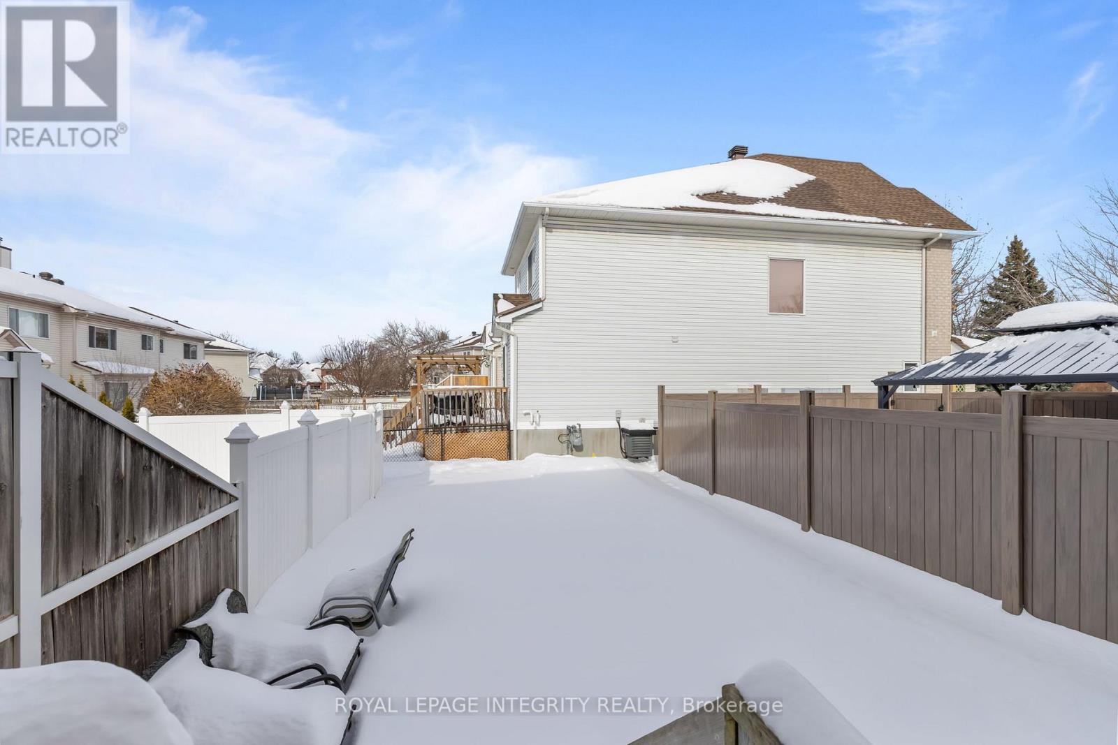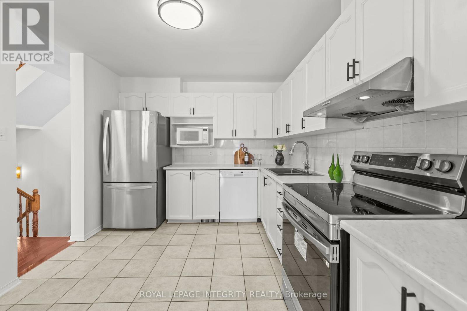 PREPARE TO FALL IN LOVE with this meticulously maintained 3-bedroom, 3-bathroom townhome in the heart of Barrhaven. Enjoy added privacy with no front neighbours and a prime location in a highly desirable, family-friendly community close to shopping, transit, schools, and everyday amenities.The main level features beautiful hardwood flooring and a spacious kitchen with ample cabinetry, complete with an eat-in breakfast bar, extra pantry, and brand-new stove, seamlessly connected to the bright living area and convenient powder room. The living room is highlighted by a cozy gas fireplace and patio doors that open to the backyard. Upstairs, you'll find a generous primary suite with a walk-in closet and private ensuite featuring a soaker tub and separate shower, along with two additional well-sized bedrooms and a full bathroom. The second floor is completely carpet-free, offering both style and easy maintenance. Set on a deep 20 X 103 ft lot, this home also includes a finished basement recreation space ideal for a home office, gym, or entertaining family and friends. Major updates include Roof (2015), Furnace & A/C (2022), Stove (2026), and Carpet (2026).