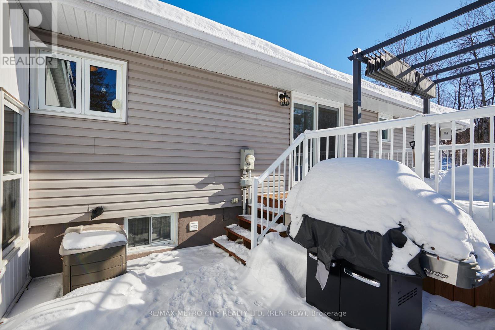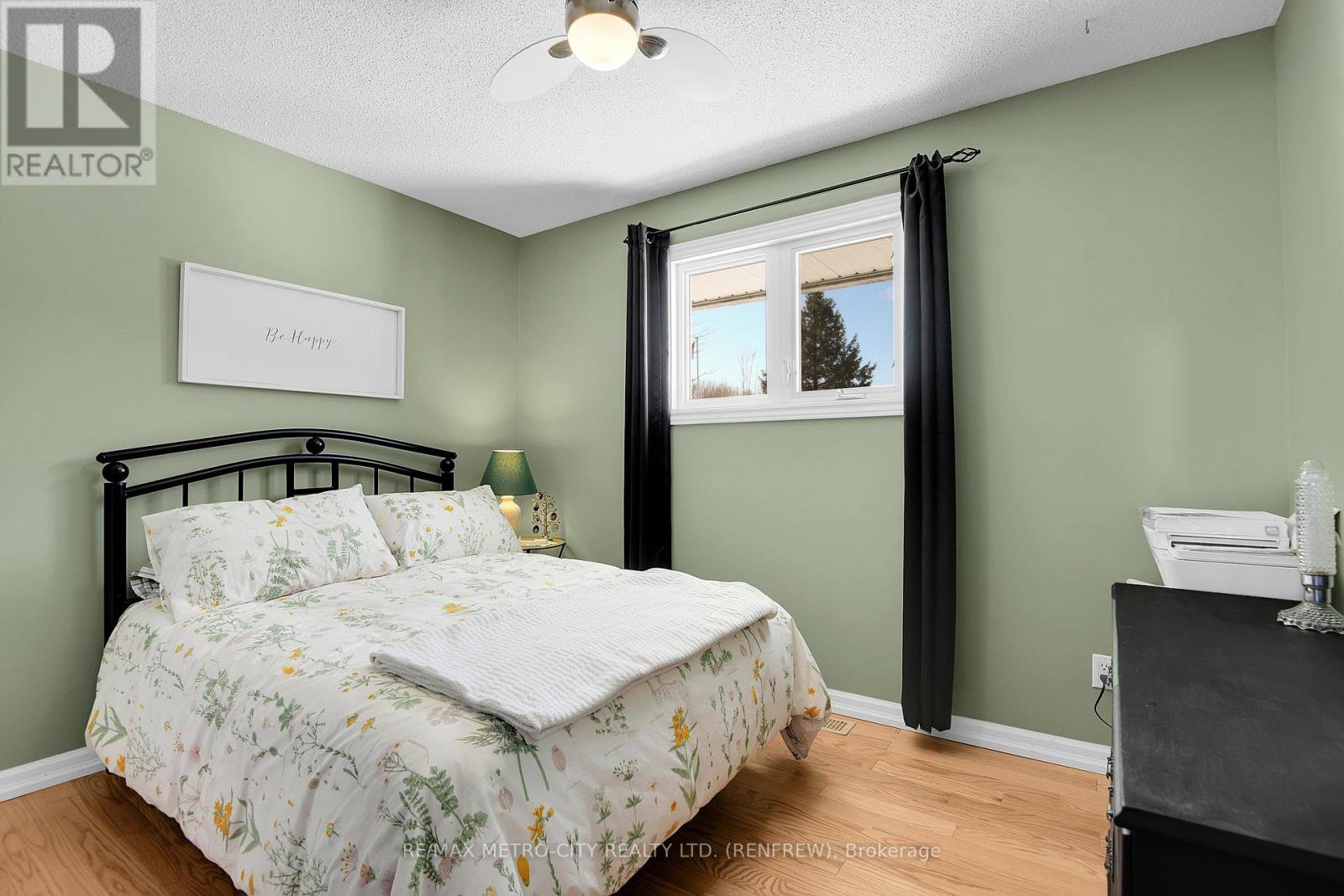 This meticulously cared-for three-bedroom bungalow with attached garage is located on the edge of town, perfectly situated on a quiet paved road with easy access to Hwy 17. This property offers a spacious one-acre lot featuring well-maintained lawns and vibrant gardens. Inside, you'll be welcomed by a bright and inviting living room that flows into a dining area, along with a large galley kitchen equipped with ample cupboard and counter space, perfect for all your culinary needs. The generous-sized bedrooms provide comfortable retreats for family or guests, complemented by a convenient main floor 4-piece bathroom. Enjoy serene evenings in the expansive insulated three-season sunroom at the rear of the home, where you can relax and admire the stunning open fields and breathtaking sunsets. The fully finished basement adds even more value to this home, featuring a large recreation room, additional storage, laundry facilities, a 3-piece bathroom, a workshop, and a utility room, ensuring all your needs are met. Noteworthy updates include a complete professional renovation of the entire home in 1997, a new septic tank and bed replaced in 2022 (pumped in 2024), roof re-shingled in 2016, a new heat pump installed in 2025, and a hot water tank updated in late 2025. The property also features 200 amp breaker service and a new well submersible pump installed in 2011, with all new plumbing lines from the well to the house. This delightful bungalow combines comfort, convenience, and modern features, making it the perfect place to call home. Hydro averages $176 monthly and propane averages $1000 a year. There is also a 10' X 10' Storage shed with hydro for added storage.