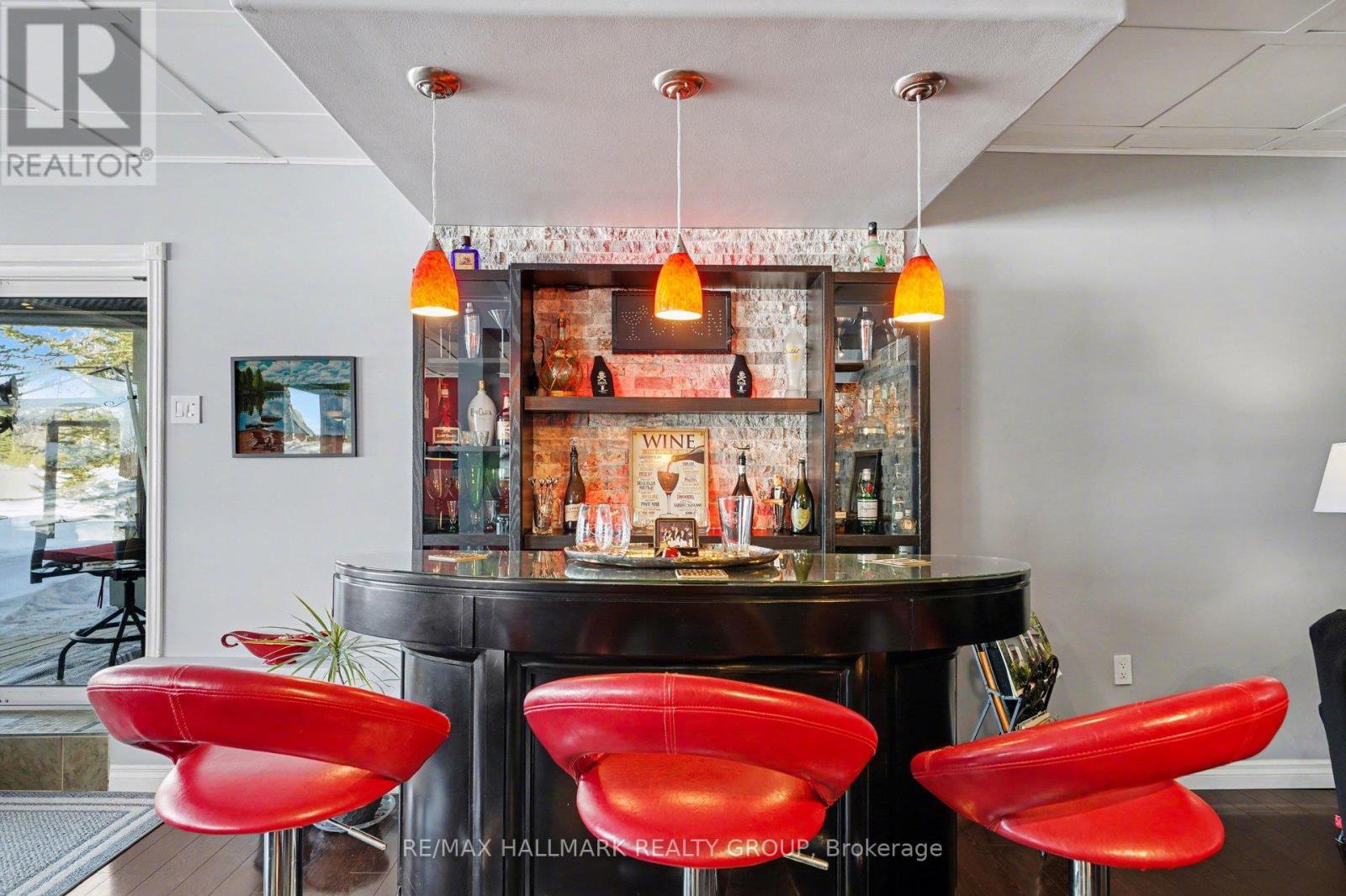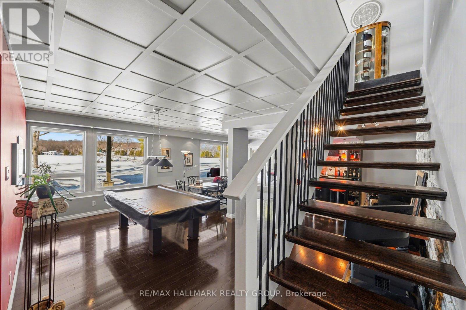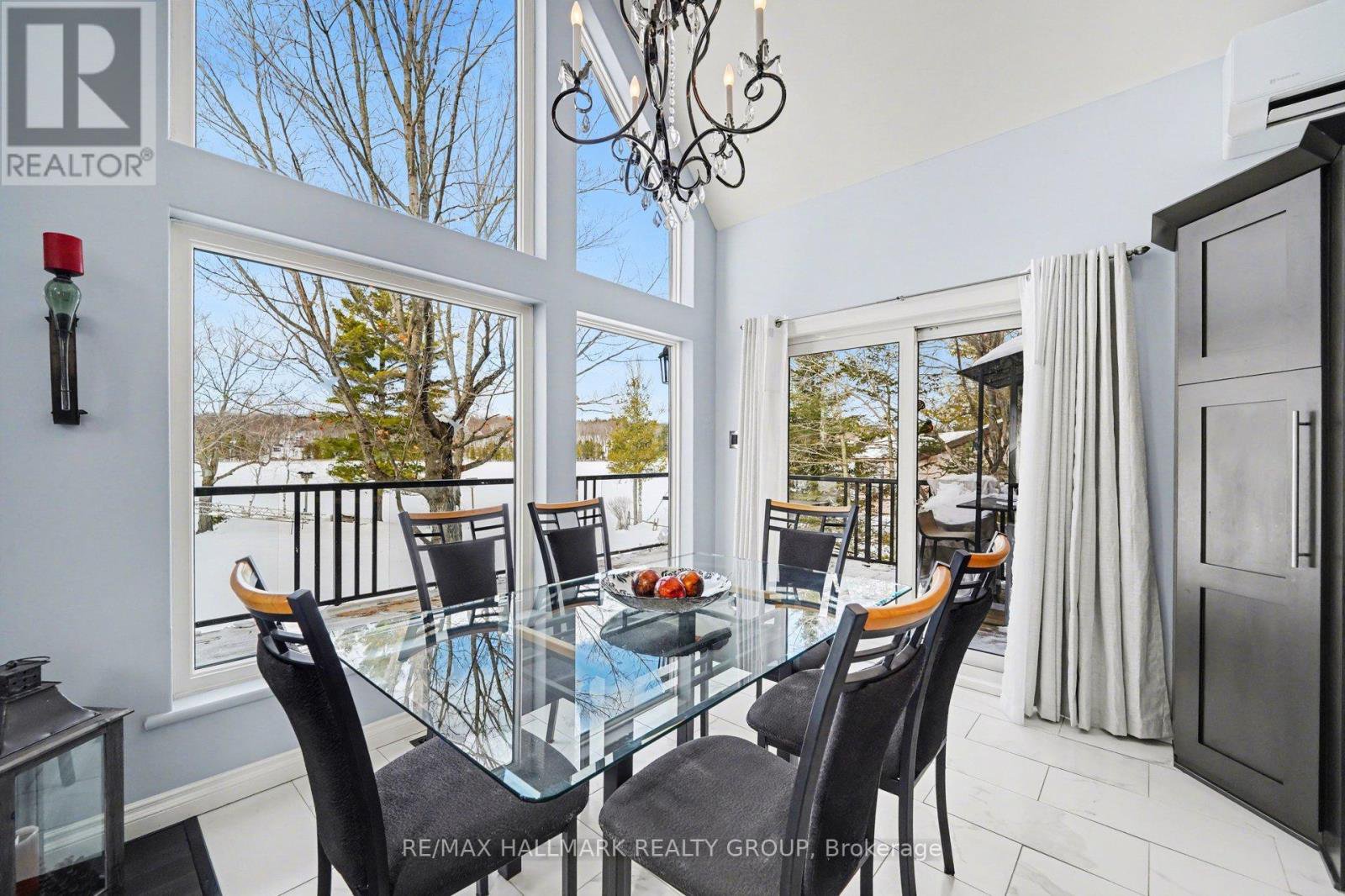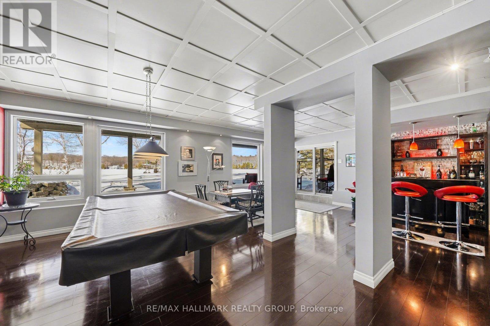 Escape to your perfect blend of home and cottage at 519 Parsons Lane, nestled in the beautiful Lanark Highlands. This waterfront sanctuary offers effortless water access and sweeping Western views from a large deck with a covered patio below, ideal for year-round enjoyment. The main level features bright, open-concept living with 20-foot ceilings and a propane fireplace in the living room that overlooks the dining area and modern kitchen, which includes an island, granite countertops, and a mirrored backsplash. Two bedrooms on the main level, one with laundry, plus a full family bathroom provide convenience and versatility. The second floor overlooks the main level and hosts a luxurious primary bedroom with a spa-like ensuite for ultimate relaxation. The lower walk-out level offers radiant floor heating in the cozy family room, a pool table, and a stylish bar with numerous windows framing lake views and manicured gardens. Outbuildings include an insulated two-car garage, a utility shed, and a toy shed closer to the lakefront. Meticulously landscaped grounds with lakefront access complete this rare offering-a true home and cottage in one, combining comfort, style, and waterfront serenity for weekend escapes or full-time living.
