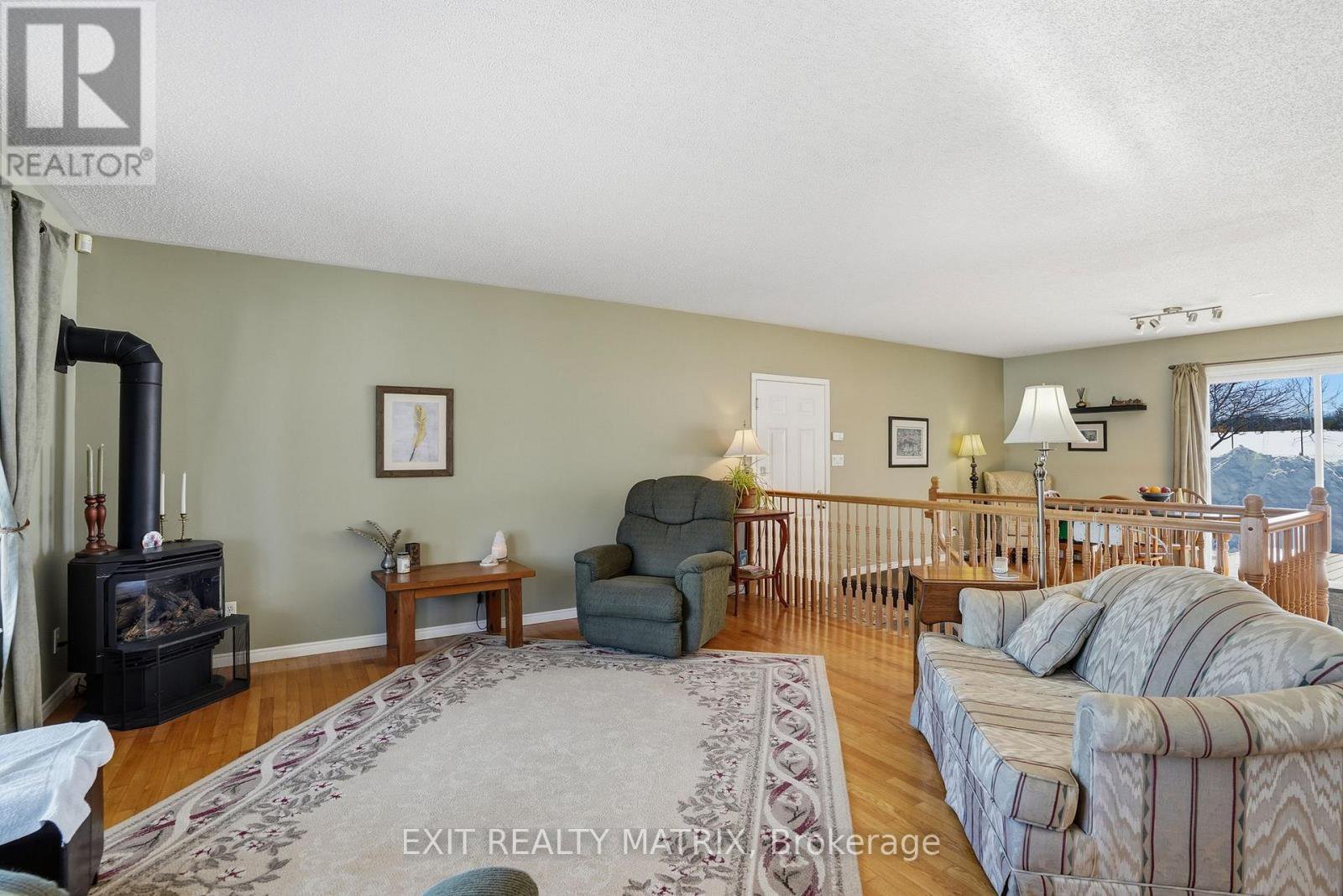 BUNGALOW - VANKLEEK HILL. Welcome to country living on sought-after Happy Hollow in Vankleek Hill! Nestled on a beautiful 1-acre lot, this well-maintained bungalow offers space, comfort, and numerous recent updates throughout. The bright open-concept main floor features a spacious family room highlighted by a cozy natural gas fireplace-perfect for relaxing evenings. The solid oak kitchen has been refreshed with new countertops and includes a convenient island with a butcher block top, ideal for meal prep and gathering with family and friends. This level offers two bedrooms, including an oversized primary bedroom that could easily be converted into two smaller rooms to suit your needs, along with a full bathroom. The fully finished lower level provides exceptional additional living space with a huge rec room/family room, a full bathroom with standing shower, a private office or hobby room, and abundant storage. You'll also find a cold room and a mechanical room that doubles as a workshop-perfect for DIY enthusiasts. Additional features include a double attached garage, GenerLink generator hookup for peace of mind, and a propane gas line already installed and ready for connection. Outside, enjoy the fenced yard, a lovely patio area, and an electric awning for shaded outdoor living. A wonderful opportunity to enjoy peaceful country living just minutes from town amenities!