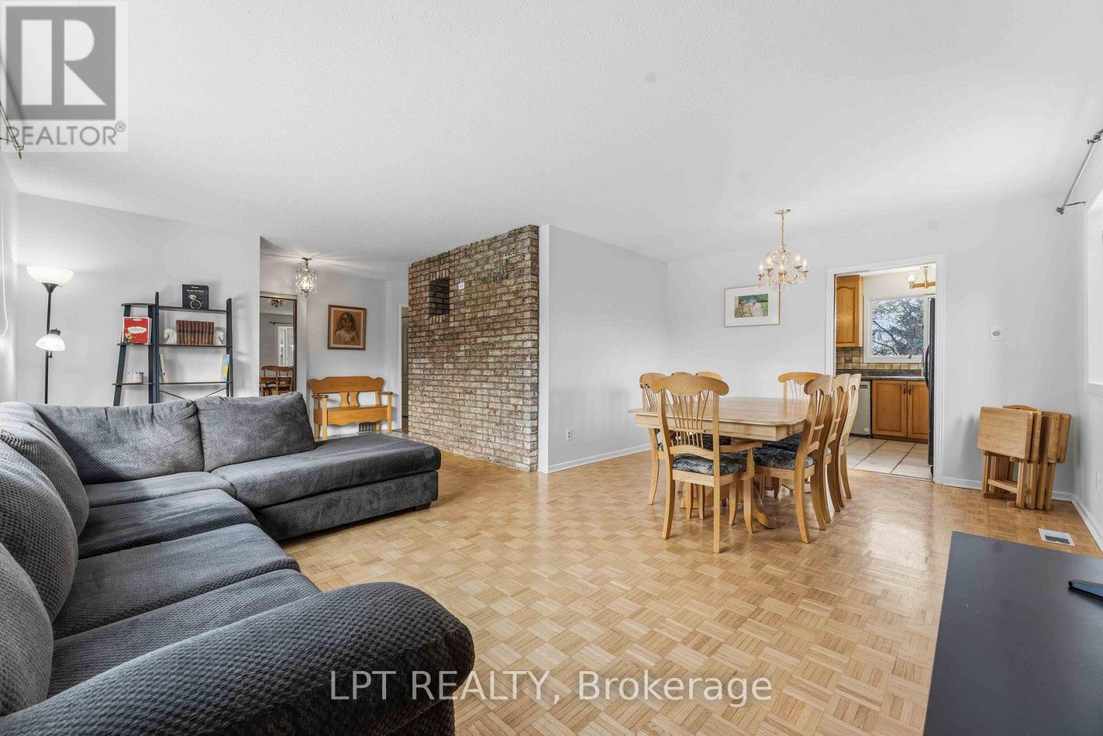 SUNDAY OPEN HOUSE - Feb 22 @ 2-4pm. Meticulously maintained, large 3 bedroom bungalow with a double attached garage. Covered interlock walkway & an inviting foyer welcomes you in, 2 large bay windows fill the living and dining area with natural light, centered around a stunning floor-to-ceiling brick accent wall where a cozy wood fireplace await on the other side in the main floor family room. The walkthrough kitchen is a chef's delight with all-wood cabinetry, a built-in cooktop and oven, and plenty of storage space to keep everything tidy and within reach. Patio doors in the family room open out to the spacious, fenced backyard. The primary bedroom offers double closets and a convenient cheater door to the spacious family bath with a soaker tub and separate shower. There are two additional bedrooms as well. Downstairs, you'll find a finished rec room with a fireplace and a 3-piece bathroom, along with two flexible rooms, a large laundry and storage area, and a utility room. Located on a pie shaped lot at the end of a quiet cul-de-sac and backing onto city owned greenspace. It's close to parks, great schools and Pineview community walking paths. Easy access to HWY 417& 174, Blair O-Train Station, CSIS-SCRS, CSE-CST, NRC-CNRC, Gloucester Centre, Cineplex & various restaurants, Pineview Golf Course, Costco, Aviation Parkway, Montfort Hospital & Innes Rd businesses.