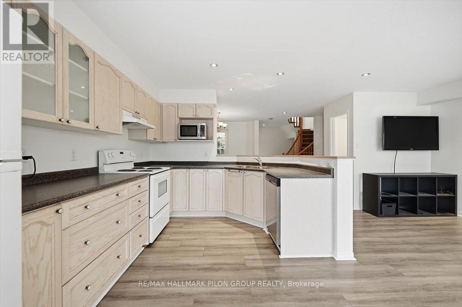 This bright and spacious end-unit townhome offers an excellent, family-friendly floor plan in a desirable location; welcome to 2015 Breezewood Street. Step into the generous foyer, where you'll immediately appreciate the open-concept main floor living area. The living and dining rooms are ideal for entertaining, featuring newer flooring and large windows that flood the space with natural light. The kitchen is both functional and inviting, showcasing solid wood cabinetry, ample counter space, and crisp white appliances. A pleasing powder room and convenient inside access to the single-car garage complete this level. The second floor first opens to a versatile bonus family room, expansive in size and anchored by a cozy gas fireplace and a large window overlooking the quiet street. The primary bedroom offers exceptional space to accommodate any bedroom set and features a walk-in closet along with a four-piece ensuite complete with a relaxing soaker tub. Two additional bedrooms are generous in size with ample closet space. A neutral full bathroom and convenient second-floor laundry complete this level. The fully finished lower level adds valuable living space with a large recreation room, perfect for family movie nights or watching the big game, while still offering plenty of storage in the unfinished area. Step outside through the patio door off the kitchen to the sunny West-facing backyard, highlighted by a large deck ideal for outdoor dining and entertaining during the warmer months. Ideally located close to excellent schools, beautiful parks, transit, and major grocery stores, this home also offers the convenience of amenities within walking distance - an outstanding opportunity in a fantastic community. Some photos virtually staged.