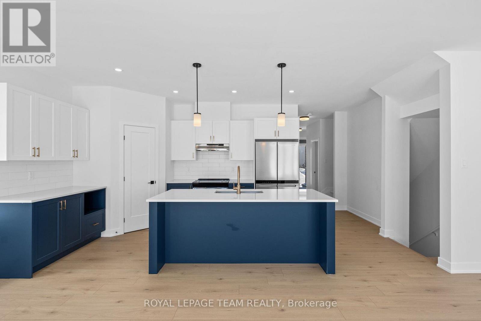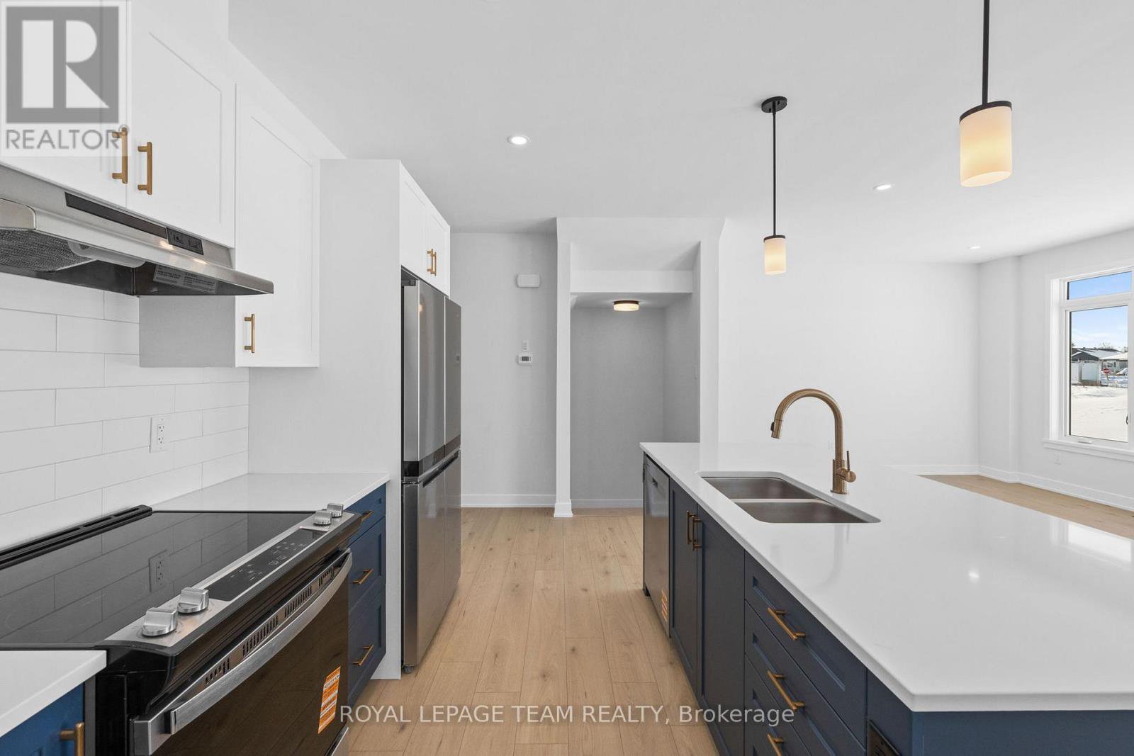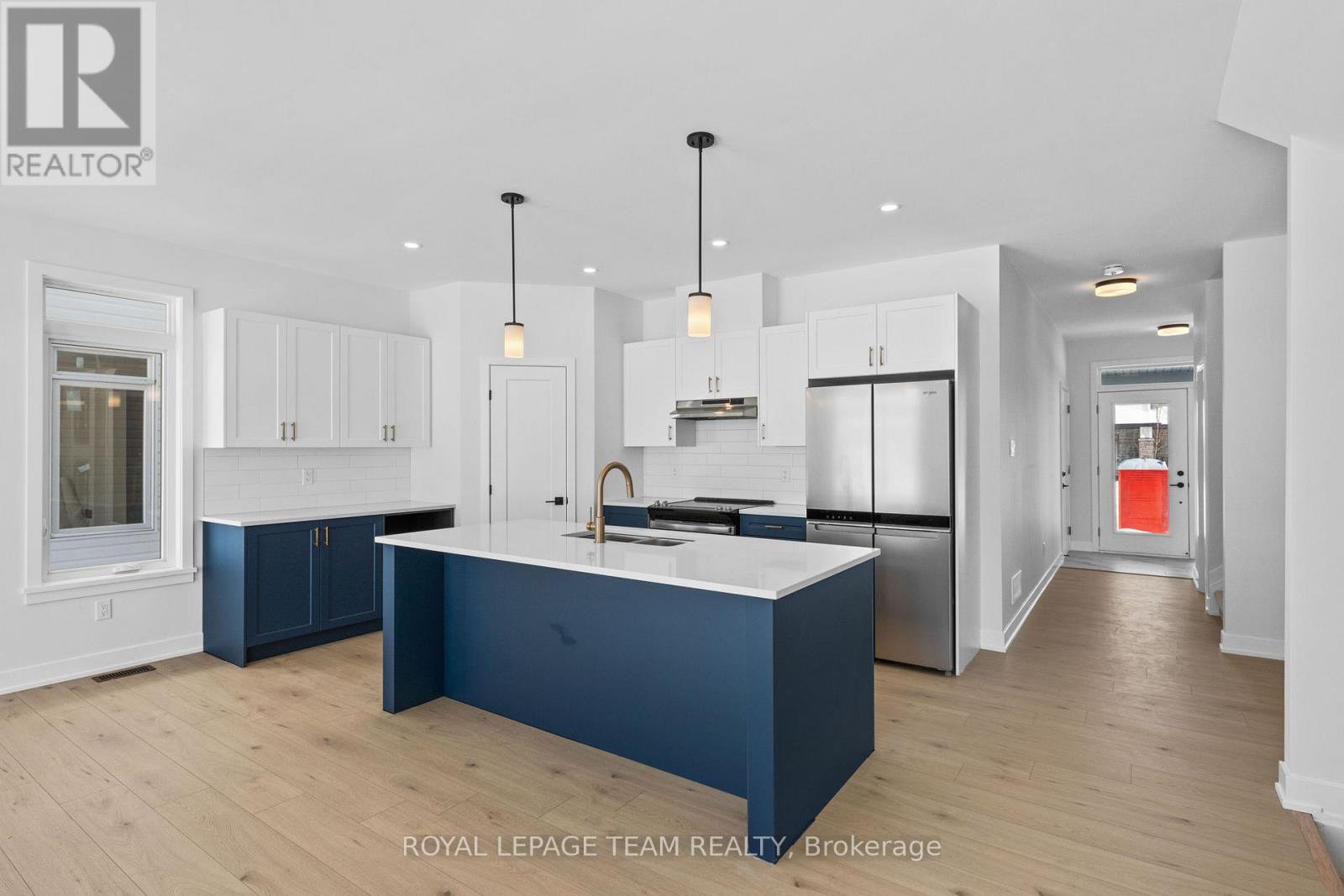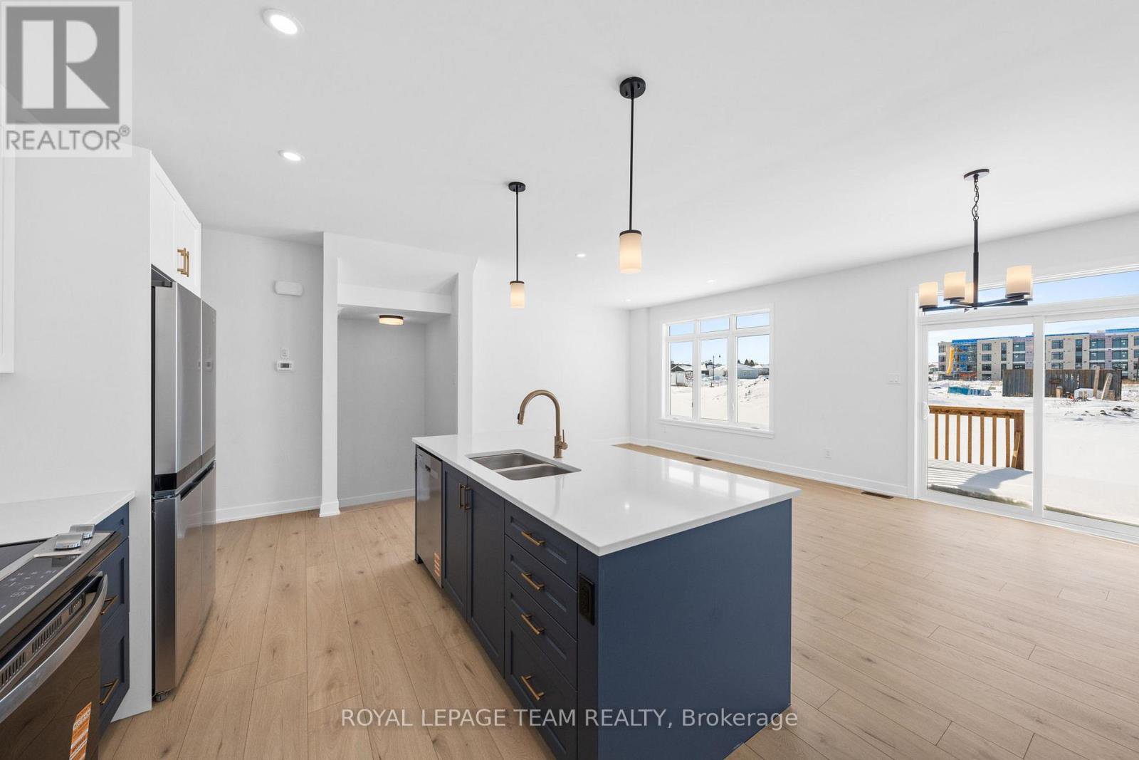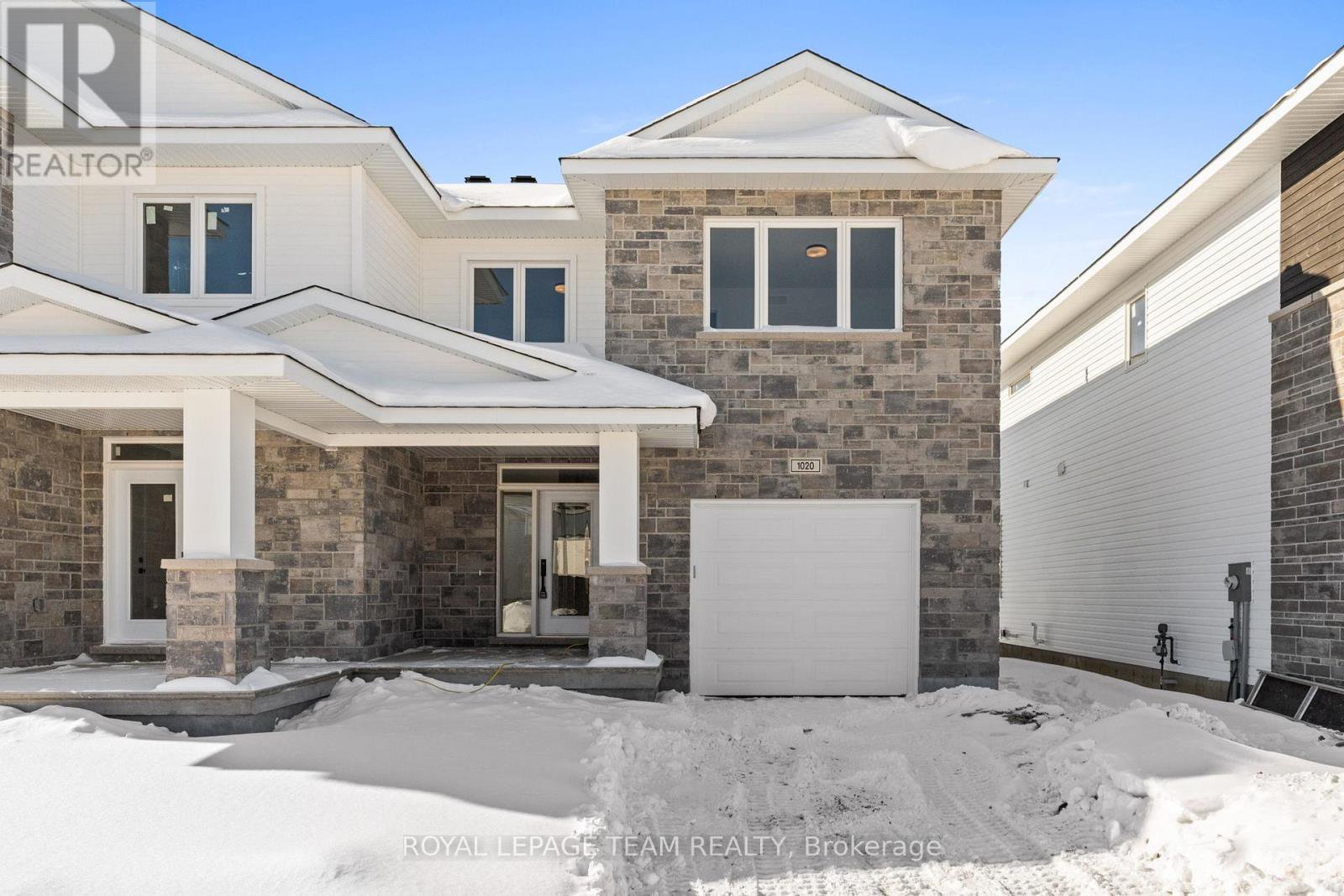 Welcome to 1020 Moore Street. This newly built semi-detached home is ideally located in Stirling Meadows, Brockville, offering convenient access to Highway 401 as well as nearby shopping and everyday amenities. The Thornbury 4 Bedroom Model by Mackie Homes provides approximately 1,868 square feet of thoughtfully designed living space, highlighted by quality craftsmanship and contemporary finishes throughout. The main level is bright and filled with natural light, with clear sightlines that create a comfortable and connected layout. From the living and dining area, step outside to the deck and backyard, offering an inviting setting for relaxing or entertaining. The kitchen combines style and practicality with quartz countertops, a convenient pantry, and a centre island well suited for gathering. A powder room and interior access to the oversized single garage complete the main level. Upstairs, the primary bedroom features dual closets and a private ensuite bathroom. Three additional bedrooms, a full bathroom, and a dedicated laundry room complete the second level.