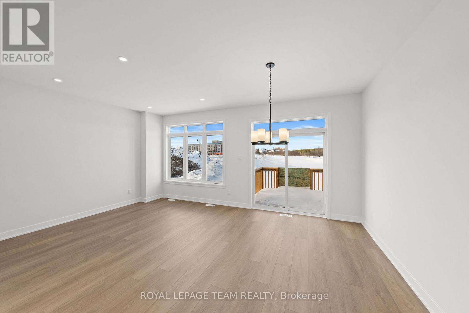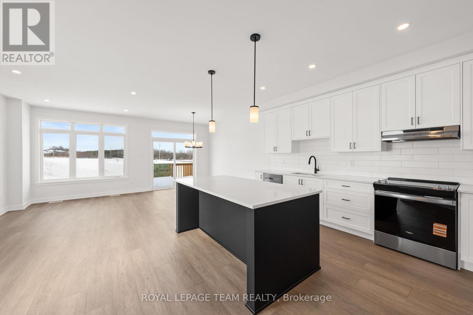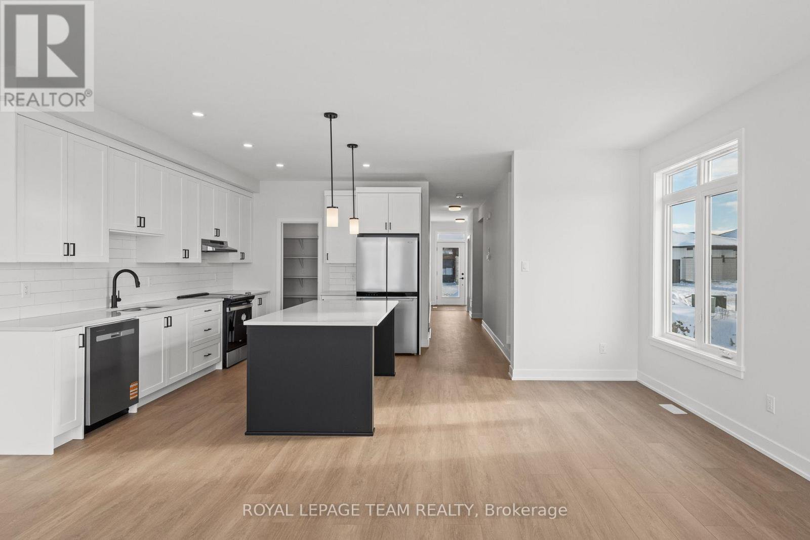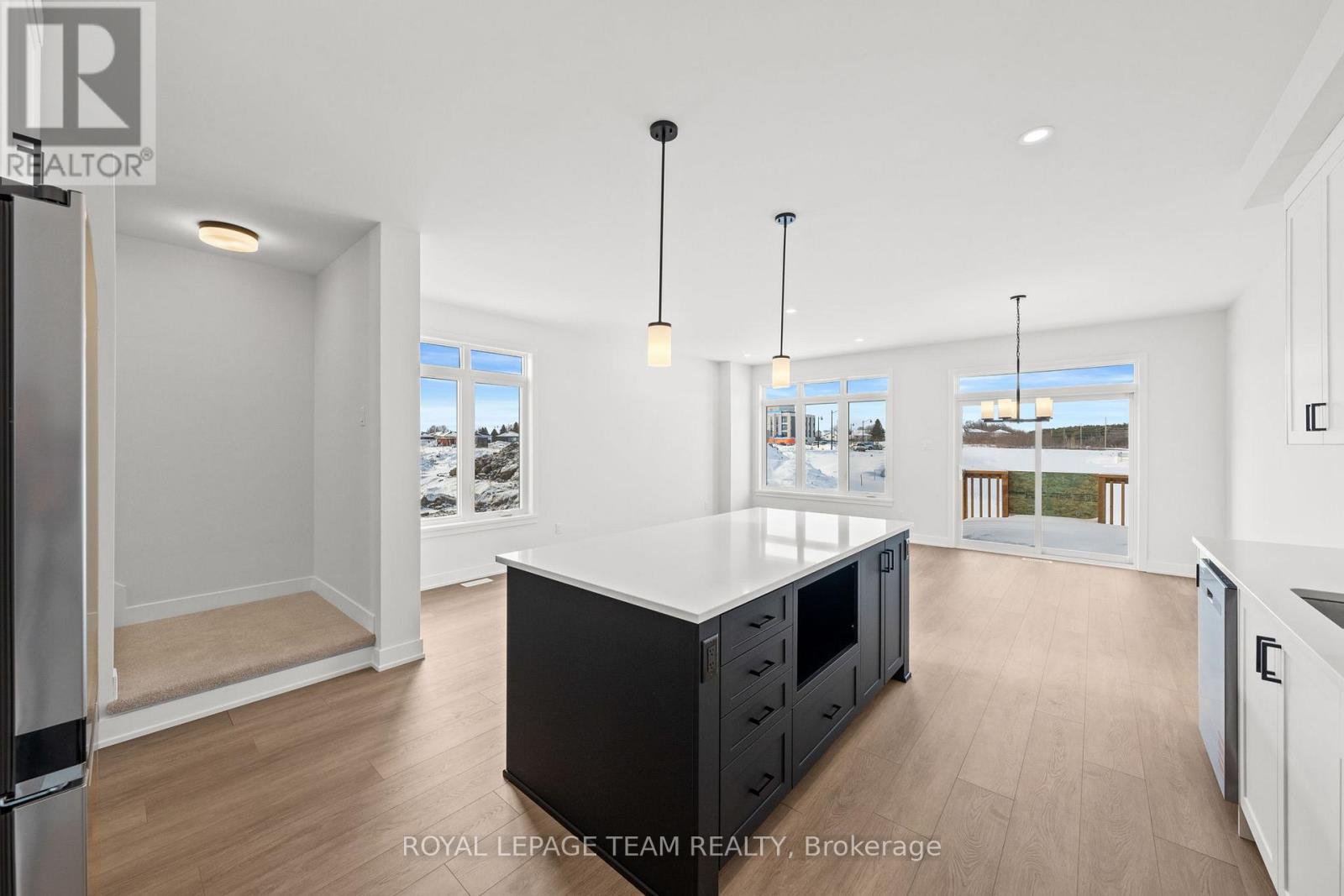 Welcome to Stirling Meadows in Brockville. This newly built semi-detached, two-storey Rockport Model by Mackie Homes offers approximately 1,879 square feet of thoughtfully designed living space, featuring four bedrooms, three bathrooms, and quality finishes throughout. The main level is bright and inviting, with an open floor plan that seamlessly connects the living areas. The modern kitchen includes ample storage and workspace, with a pantry for extra storage, quartz countertops, and a centre island that serves as a natural gathering spot. It opens to the conversation area, dining room, and great room, which provides direct access to the exterior sundeck and backyard. Upstairs, the primary bedroom boasts a walk-in closet and a 4-piece ensuite with dual sinks. Three additional bedrooms, a full bathroom, a linen closet, and a convenient laundry room complete the second level. Ideally located near shopping, dining, and recreation, with quick access to Highway 401, this home offers comfort, convenience, and modern living in a move-in-ready package.