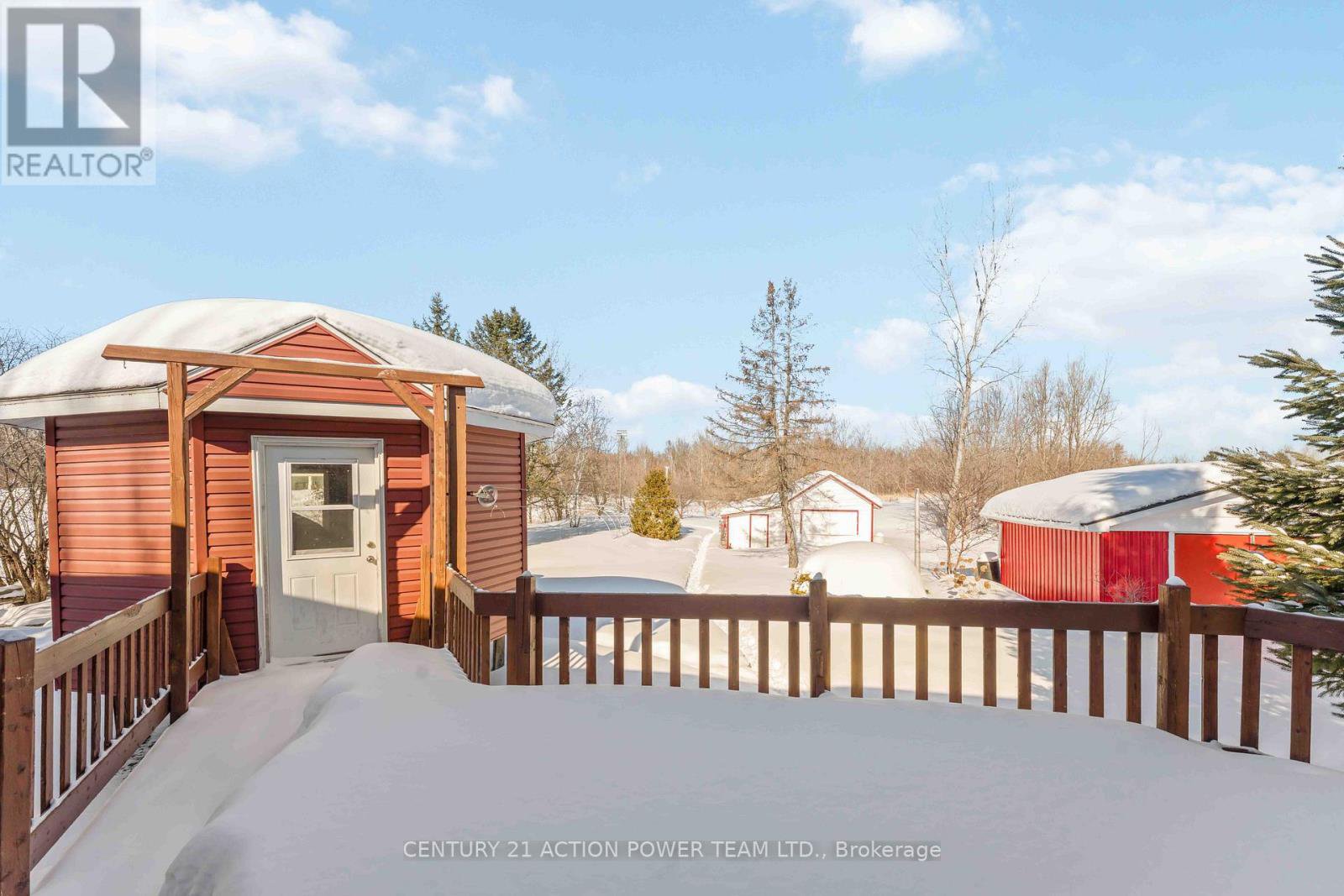 Welcome to 1705 Old Montreal Road! This solid brick bungalow is perfectly situated just minutes from Orléans and nestled on a picturesque 2.5-acre lot, offering the ideal blend of convenience and country living. Step inside to a bright and inviting main level featuring a spacious eat-in kitchen and a sun-filled living room with oversized windows that capture beautiful southern exposure. A charming gas fireplace with a brick façade creates a warm and welcoming focal point. Three generously sized bedrooms and a full main bathroom complete the main floor. The fully finished basement expands your living space with a 4th bedroom and a spacious recreation room featuring a wet bar, pool table, and a cozy wood-burning fireplace-perfect for entertaining or relaxing evenings at home. An additional bathroom adds extra convenience. Outside, the property is beautifully landscaped front and back, with a large deck overlooking the expansive yard. Bonus outbuildings provide incredible flexibility, while the oversized single-car attached garage and impressive commercial-style double bay garage make this property ideal for car enthusiasts, hobbyists, or home-based businesses. A rare opportunity to enjoy space,(garage is 40 x 40ft with 16 ft ceilings) functionality, and location all in one exceptional property.
