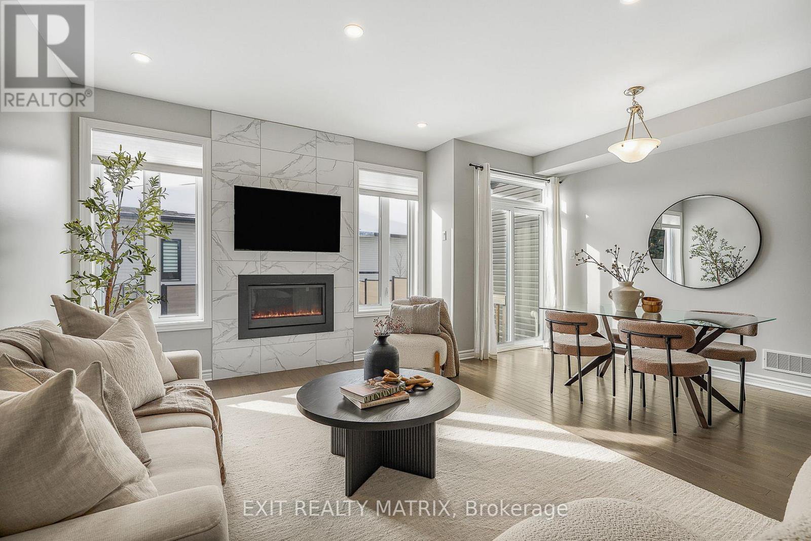 OPEN HOUSE Sat Feb 21, 2-4pm & Sun Feb 22, 2-4pm. Built in 2022 by award-winning Valecraft Homes, this stunning 3-bedroom, 4-bathroom townhome offers 2,185 sq. ft. of beautifully finished living space in an exceptional location. As a middle unit with a larger backyard, you'll enjoy added privacy with no neighbours passing through your yard for access. Step inside to a bright, modern interior featuring hardwood flooring and a stylish open-concept design perfect for everyday living and entertaining. The living room showcases an upgraded floor-to-ceiling tiled fireplace with a Smart TV included, creating a sleek and inviting focal point. The kitchen is thoughtfully designed with an oversized deep sink in the island, a spacious walk-in pantry, and four stainless steel appliances. Upstairs, every bedroom offers its own walk-in closet, including a spacious primary suite complete with a private 4-piece ensuite. The fully finished basement extends your living space with endless possibilities - ideal for a recreation room, home gym, or guest retreat - and includes a professionally added bathroom for extra convenience. Exterior upgrades include front and back interlock, a hybrid fence with gate, natural gas BBQ hookup, eavestroughs, central air, and a garage door opener with remotes. Modern, move-in ready, and loaded with upgrades, this home delivers comfort, privacy, and outstanding value all in one.