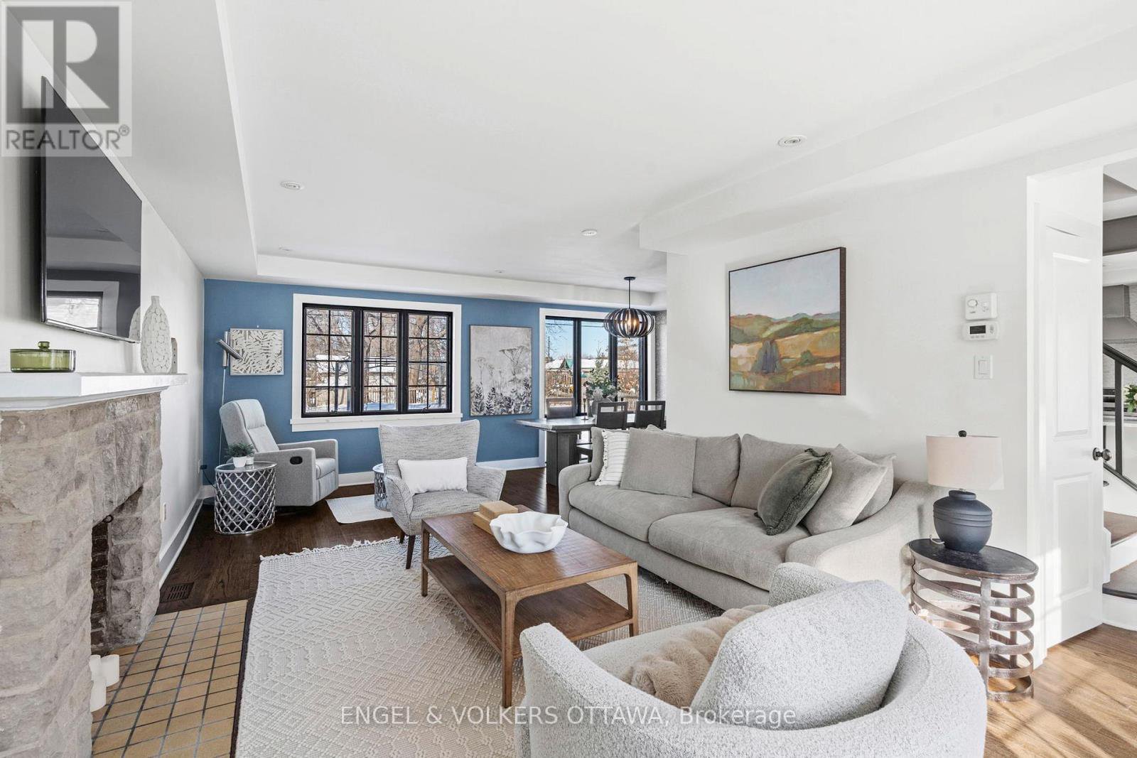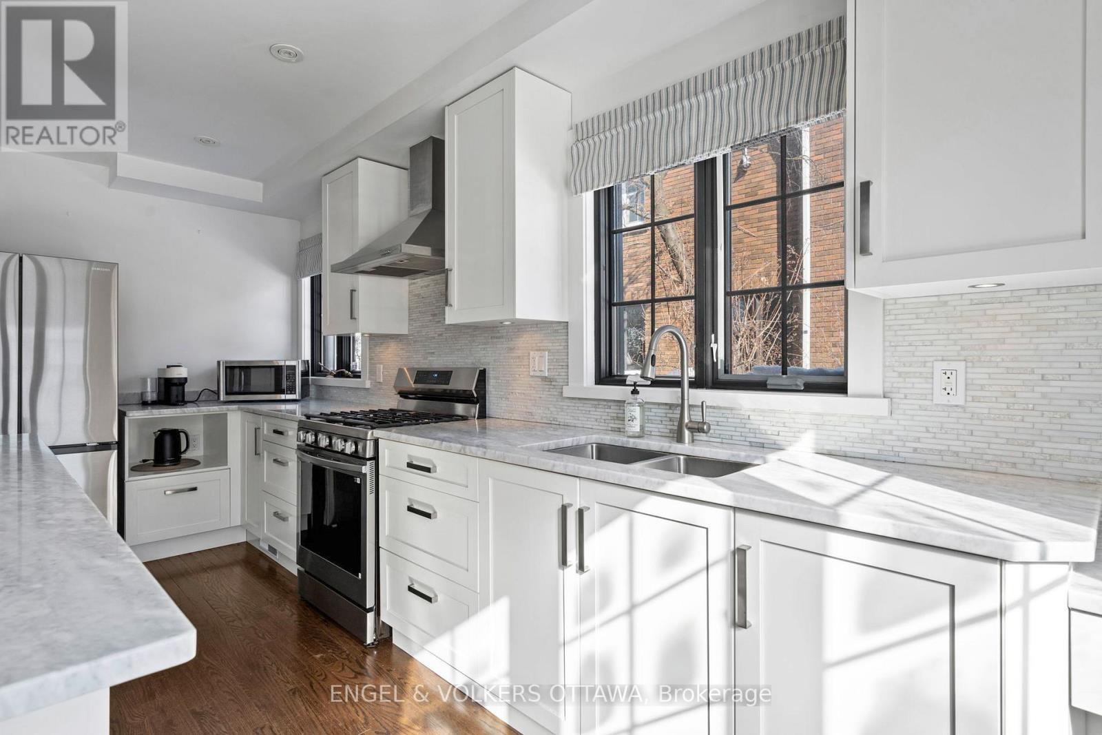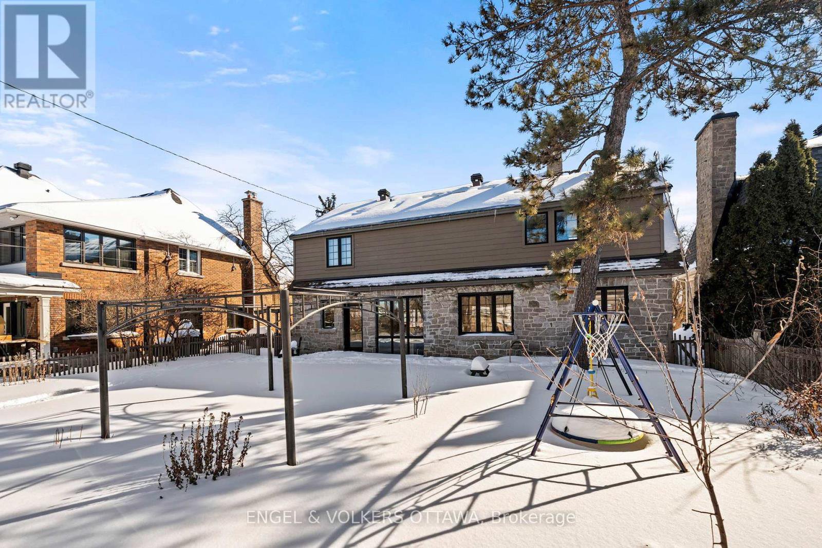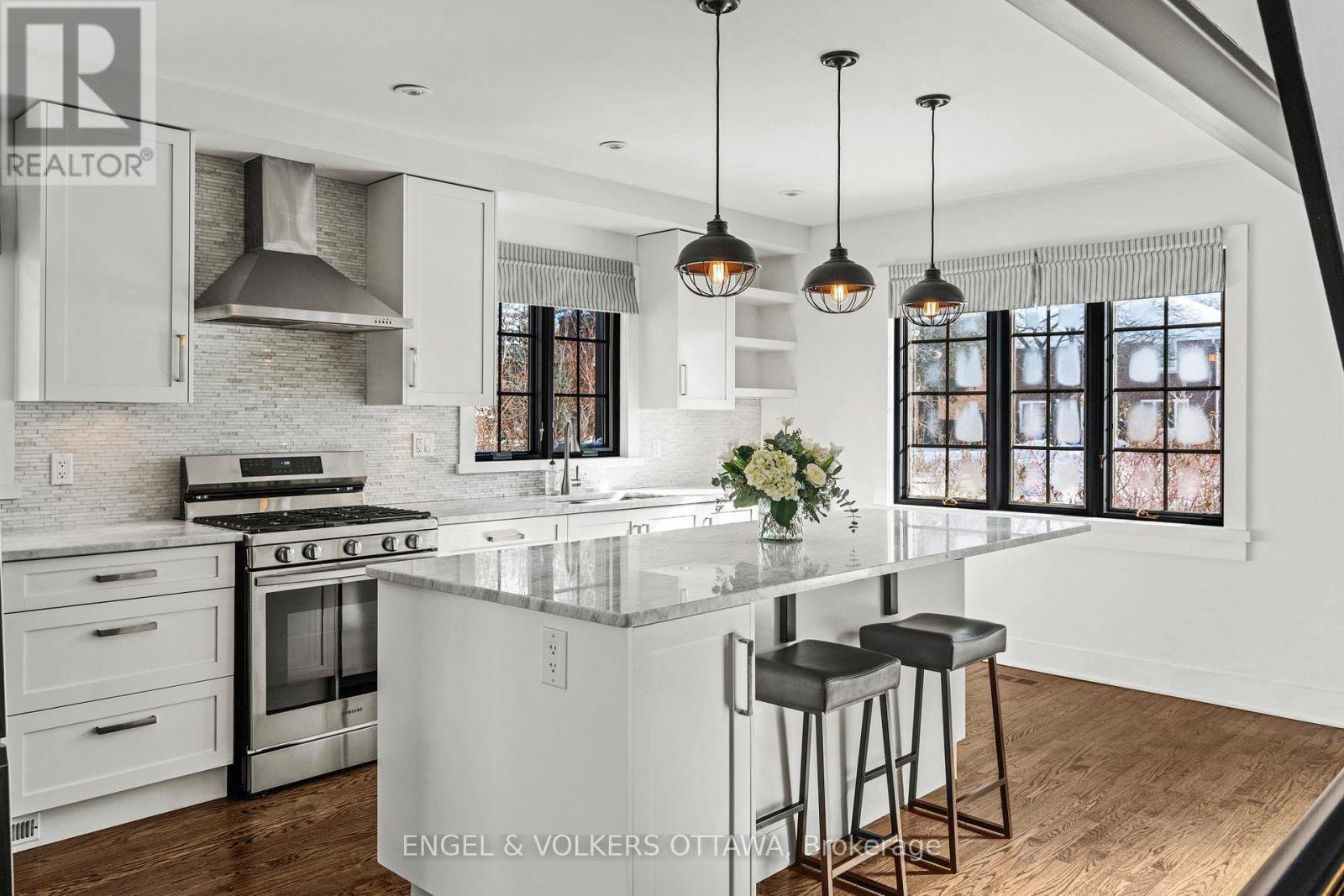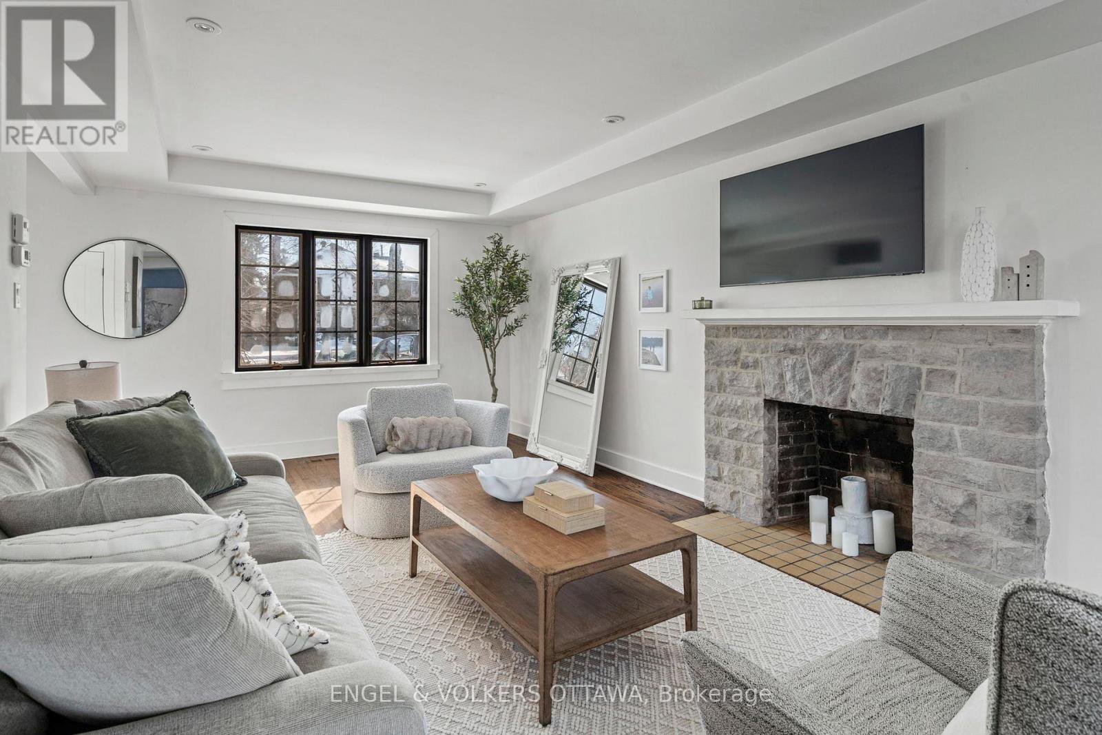 Welcome to 293 Sherwood Drive, a beautifully renovated Cape Cod home with a timeless stone façade and storybook curb appeal. This residence stands out as one of the most charming homes on the Civic Hospital's most desirable streets. Built in the early 1940s and renovated from the studs out in 2013, including every major component of the home, including the roof, furnace, windows, kitchen, and bathrooms. Facing south, the home is filled with natural sunlight throughout the day. Rich, dark-stained hardwood floors add warmth and quality, including a beautiful stone fireplace and generous windows. The stunning farmhouse-inspired kitchen features a granite island, S/S appliances, and windows overlooking the backyard. Along the rear of the home, the dining room showcases views of the expansive backyard, a rarity in Central Ottawa. The second level offers three bedrooms and two full bathrooms, with a spacious primary suite that features two bright windows, a large walk-in closet, and an ensuite with double sinks, quartz countertops, and a walk-in shower. The high, open ceilings in the upstairs hall also add unique details. The lower level offers a large recreation room with ample natural light-perfect as a family room. This level also includes a fourth bedroom, a two-piece bath, a laundry room, and a utility space. The backyard offers abundant green space, a children's play structure, and endless room to entertain, garden, or relax. Located just a short walk to the Ottawa Civic Hospital and the Royal Ottawa Hospital, this area has long been home to professional families. Enjoy easy access to Dow's Lake, Wellington Village, Hintonburg, Parkdale Market, Lansdowne, and the shops along Wellington Street. With quick access to the Queensway and downtown Ottawa in under 10 minutes, the location truly earns a five-star rating. This is a rare opportunity to own a fully renovated character home in one of Ottawa's most established and sought-after communities.