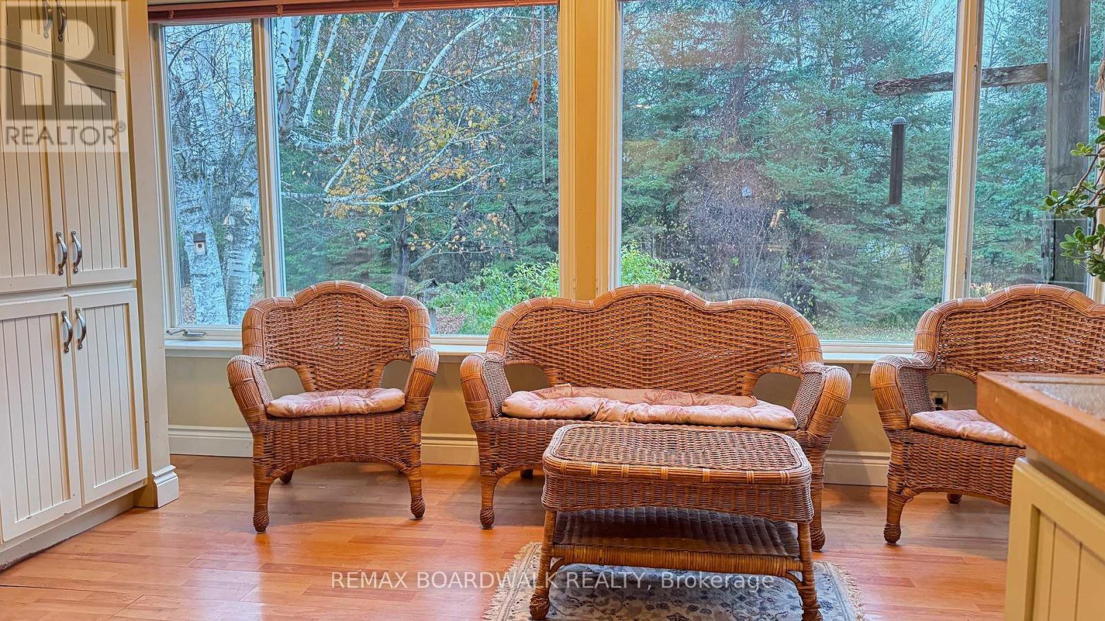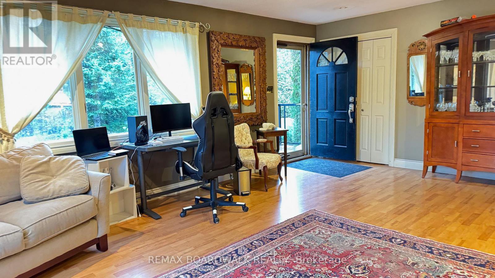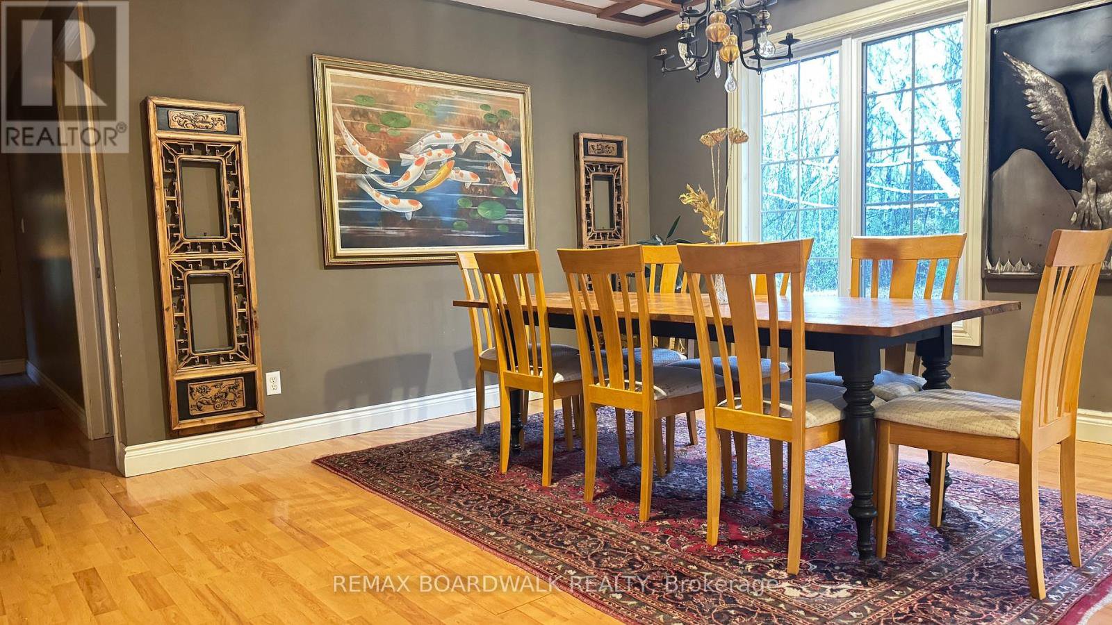 Spacious bungalow on 2.3 acres with a detached two car garage. Inside entry from the driveway into the home makes for a convenient way to enter. Landscaped and park like you will love discovering all the different species of perennial plants and enjoy adding your own flair. The main floor features a spacious living room open to the dining room, kitchen and sunroom. The pot lighting adds an element of warmth to the evenings. Enjoy having French doors off the living room leading to a large deck with an above ground, swimming pool and plenty of room for entertaining and barbecuing. This home is carpet.