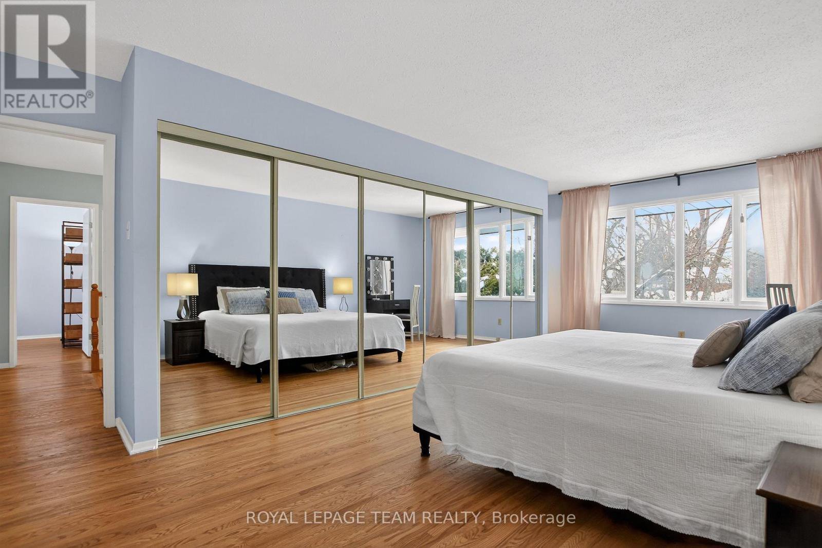 Lovely four bedroom, plus main level den, family home located on one of the original streets in the Beaverbrook community. This all brick home is situated on a wonderful large treed lot, approximately 70' wide by 149' deep & is a short walk to top schools. Updated walkway, Interlock patio, gardens & an array of trees, including an apple tree to enjoy. Tiled foyer with double closet & spacious reception area. Entertaining size living room with stone fireplace, hardwood floors, tall windows & recessed lighting. French pocket doors to the dining room with hardwood floors, updated light fixture & views of the wonderful backyard. Kitchen has many cabinets, additional pantry & counter space. Updated tile backsplash, counters, sink & faucet plus stainless steel appliances. Large eating area, with modern light fixture & pretty views of backyard, opens onto the family room & back hall with mudroom area. Den is perfect home office with French doors & view of front yard. Handy mudroom & laundry area with 3 piece bath with double shower. Hardwood staircase leads you to the 2nd level with 4 big bedrooms with hardwood floors & 2 full baths. The primary bedroom has room for a king size bed & dressers and the 3 double closets with mirrors provide ample clothes storage. Updated ensuite bath has a white vanity, updated mirror & light fixture and tiled double shower with sliding glass door.The basement has new epoxy finished floors and awaits the new owners' plans. There is plenty of room for a home theatre, play & hobby area, plus storage. The deep backyard is private with cedar hedging & has an array of trees to offer shade. Deck has been recently painted & provides a great space to enjoy barbecues with family and friends! Many parks, shops and amenities, all close by. In school district for W.Erskine Johnston, Stephen Leacock, St. Gabriel, All Saints & Earl of March. Minutes to hi-tech, bus service & the 417. 24 hours irrevocable on all offers.