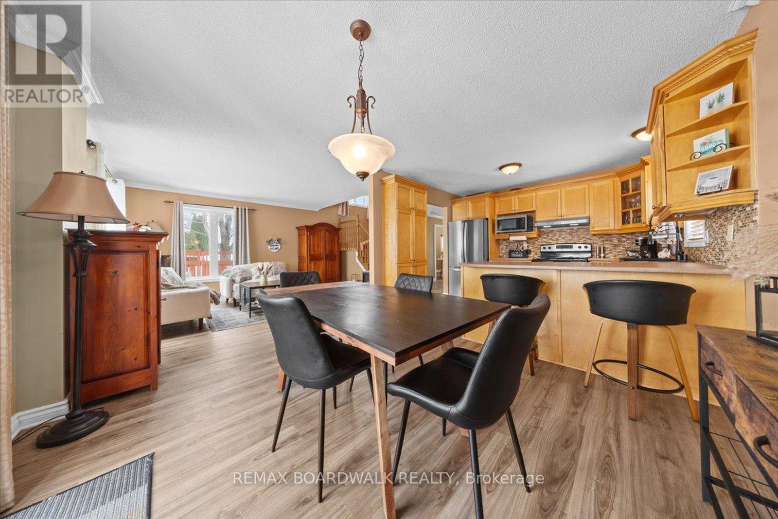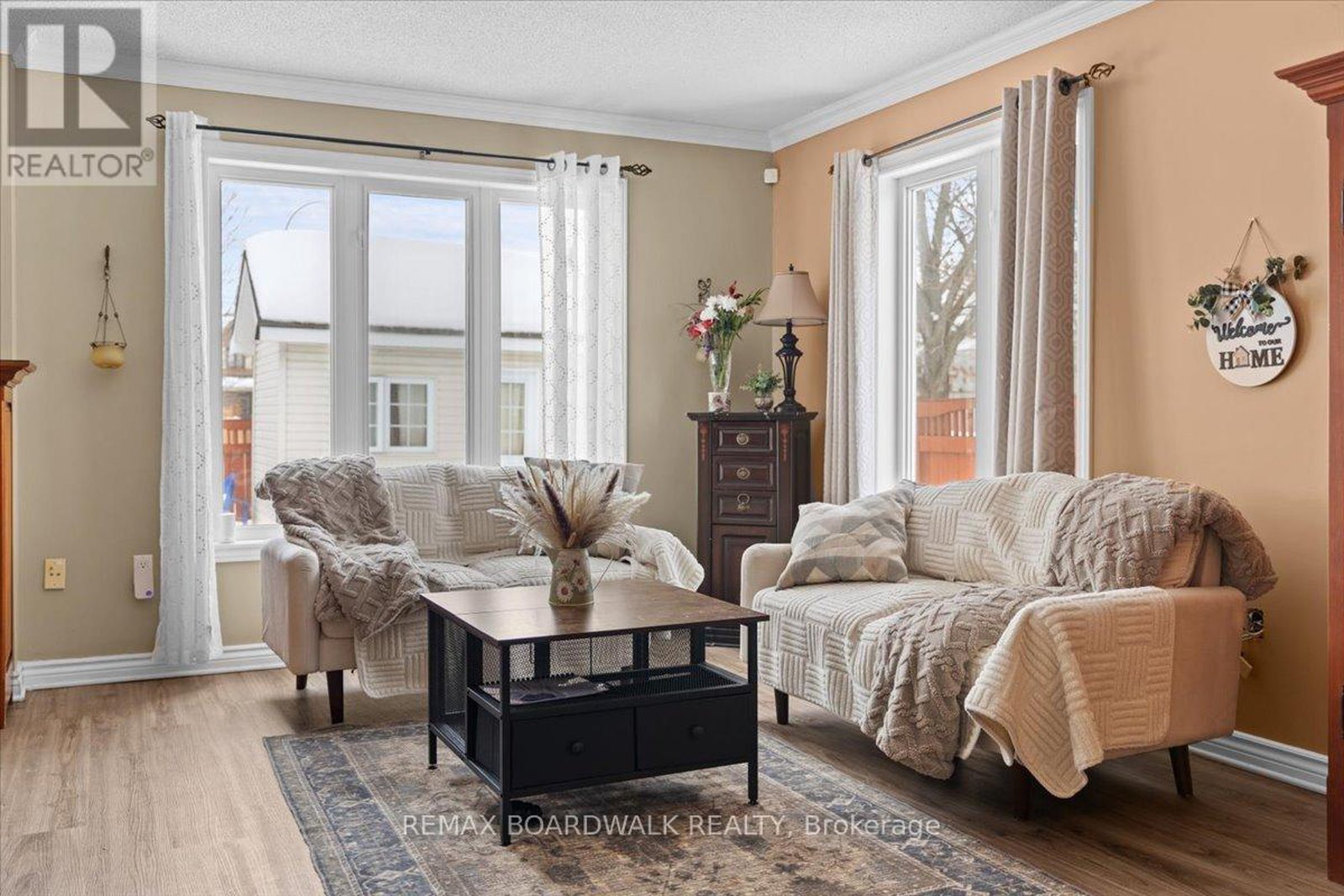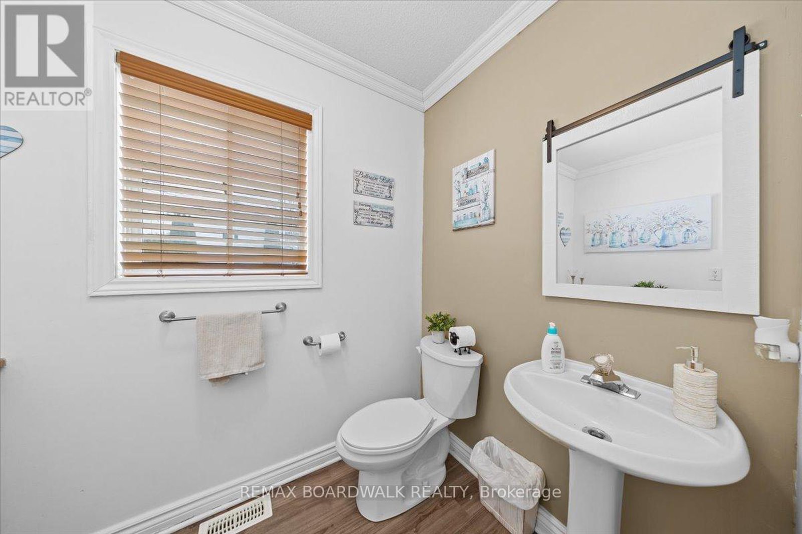 Welcome to this charming 3-bedroom single-family home ideally located on a premium corner lot in one of Rockland's quiet, family-friendly neighbourhoods. Surrounded by parks, schools, recreation, and convenient shopping, this home offers the perfect blend of comfort, lifestyle, and opportunity. The interlock driveway leads to an oversized single-car garage with convenient inside access. The welcoming foyer features a front-entry closet and a practical powder room with a pocket door, as well as optional main-floor laundry. The bright main level showcases a sun-filled living room with large windows and elegant crown moulding throughout. The spacious kitchen is designed for both functionality and entertaining, featuring newer stainless steel appliances, a stylish tile backsplash, a black double sink, and an impressive floor-to-ceiling pantry. The dining area opens to a covered deck through patio doors, perfect for relaxing or hosting family and friends. The fully fenced backyard offers incredible outdoor living potential, complete with a covered deck and storage shed or playhouse. Ideal for families, entertaining, or creating your own private retreat. Upstairs, a hardwood staircase leads to three generously sized bedrooms, including a spacious primary bedroom with a walk-in closet and convenient cheater access to a 4-piece bathroom featuring a large soaker tub and separate shower. The finished basement offers versatile living space with multiple windows, pot lights, elegant wainscotting, and dedicated laundry and utility areas. Ideal for a recreation room, home office, or gym. This home offers solid value, a fantastic layout, and an excellent location, and is ready for your personal touch. A great opportunity to create your dream home and build equity in a desirable Rockland neighbourhood. 24 Hour Irrevocable. Offers are being presented on Thursday, February 19th at 7:30 pm.