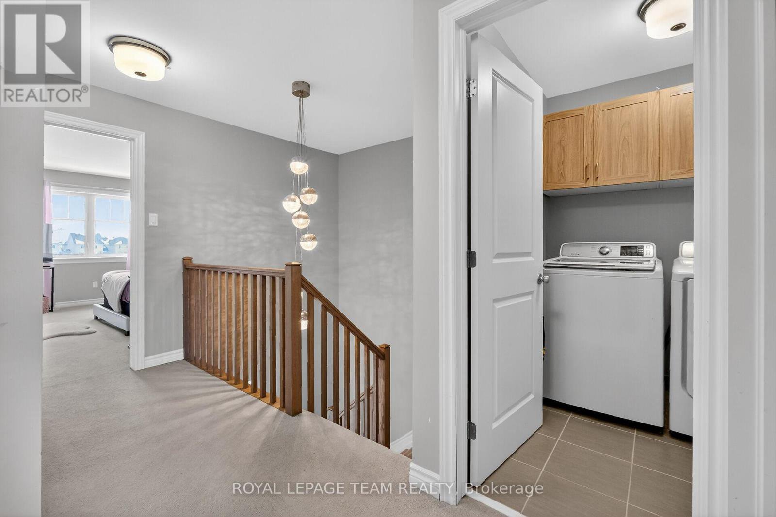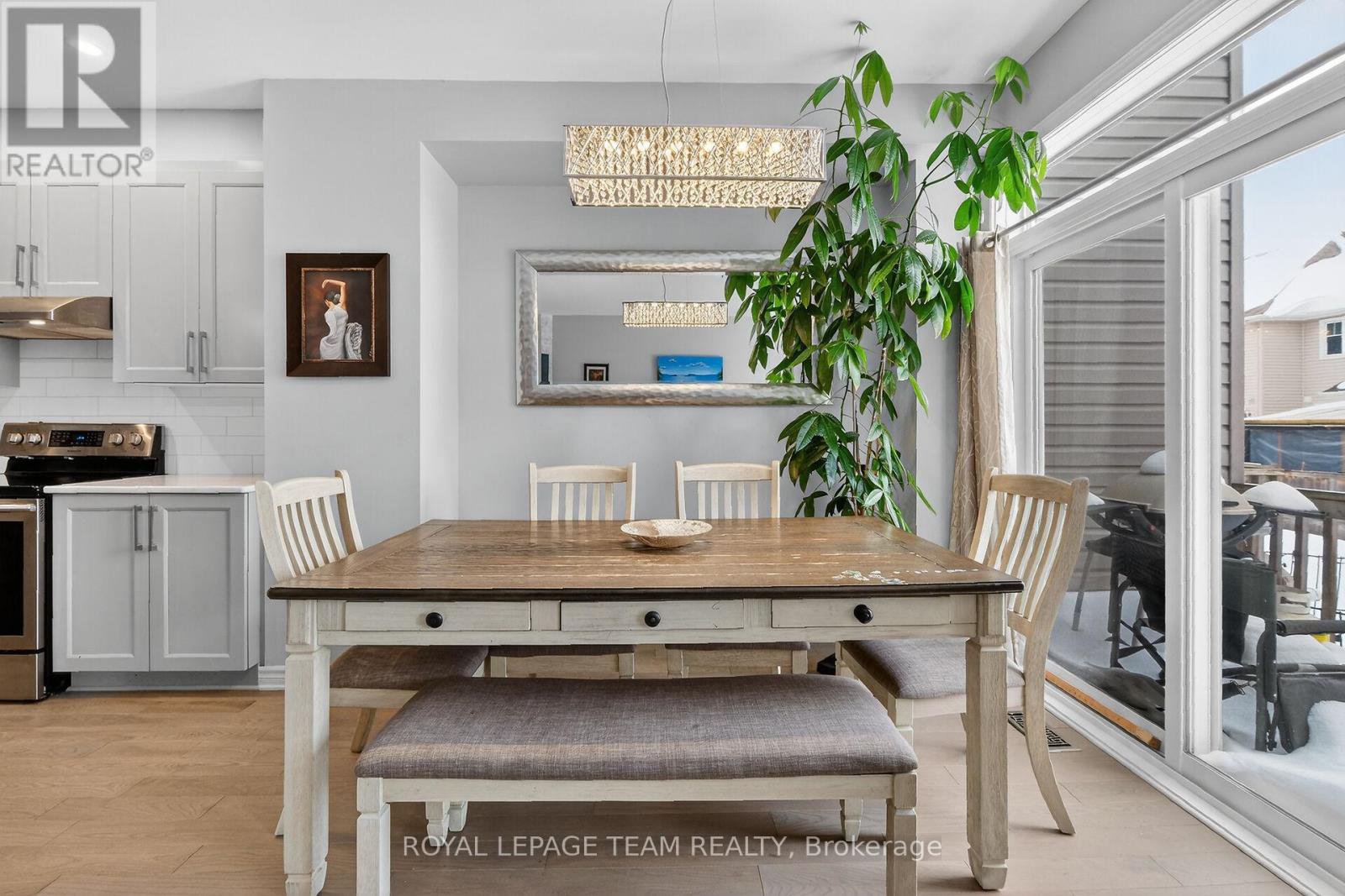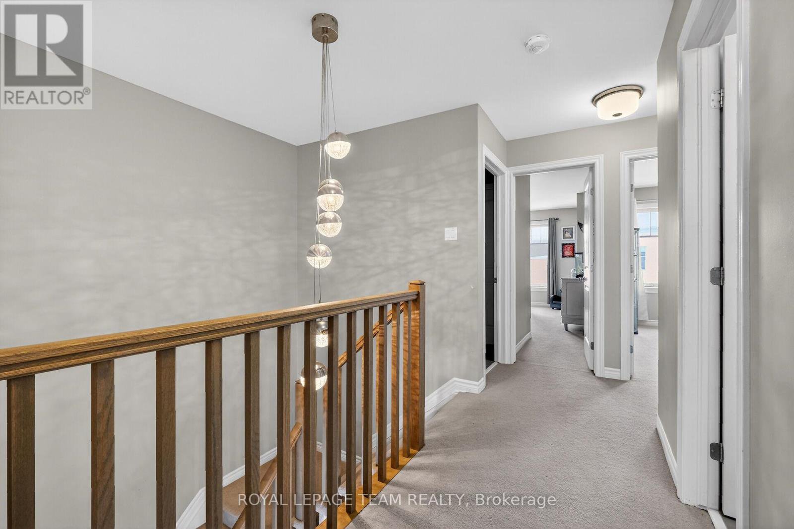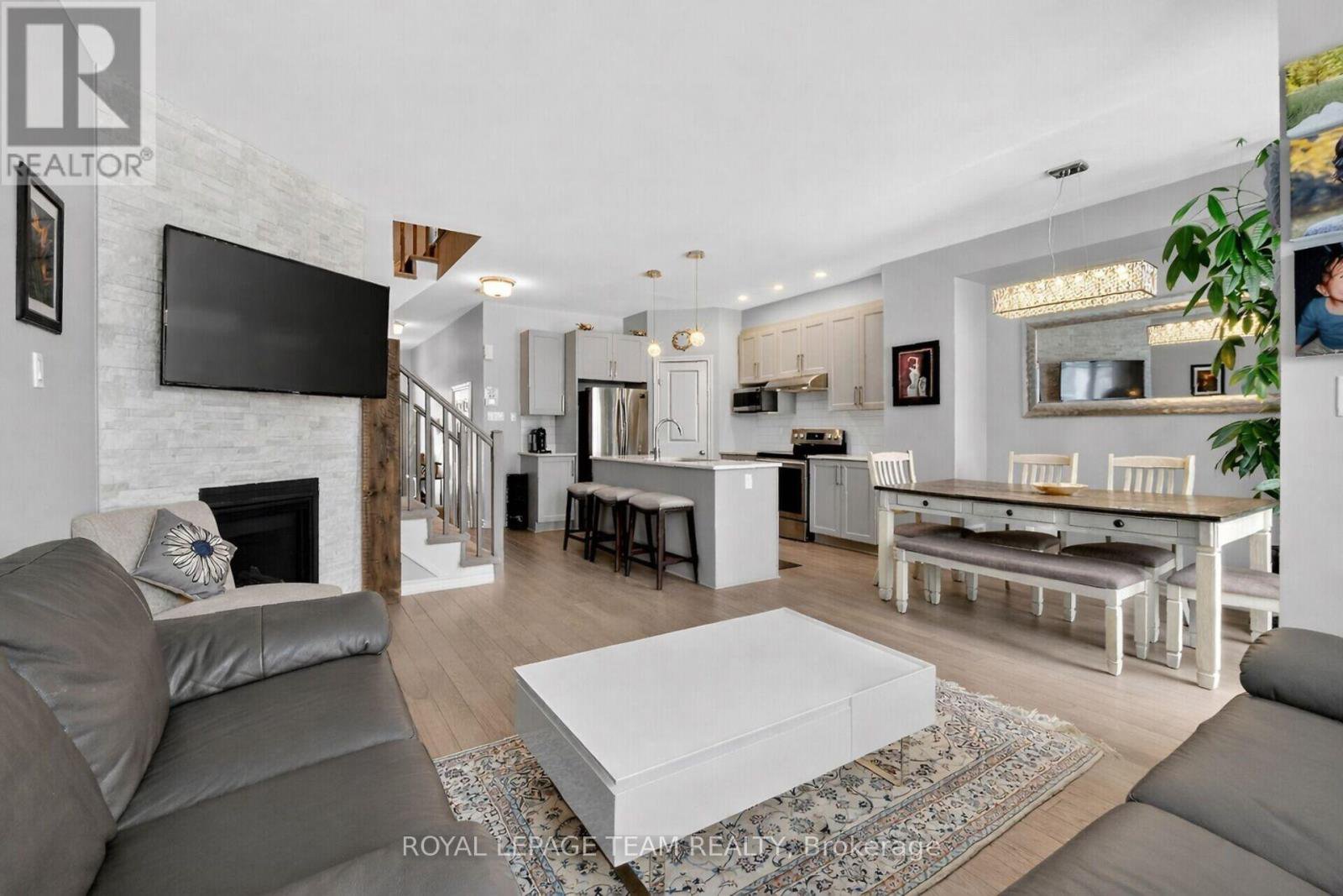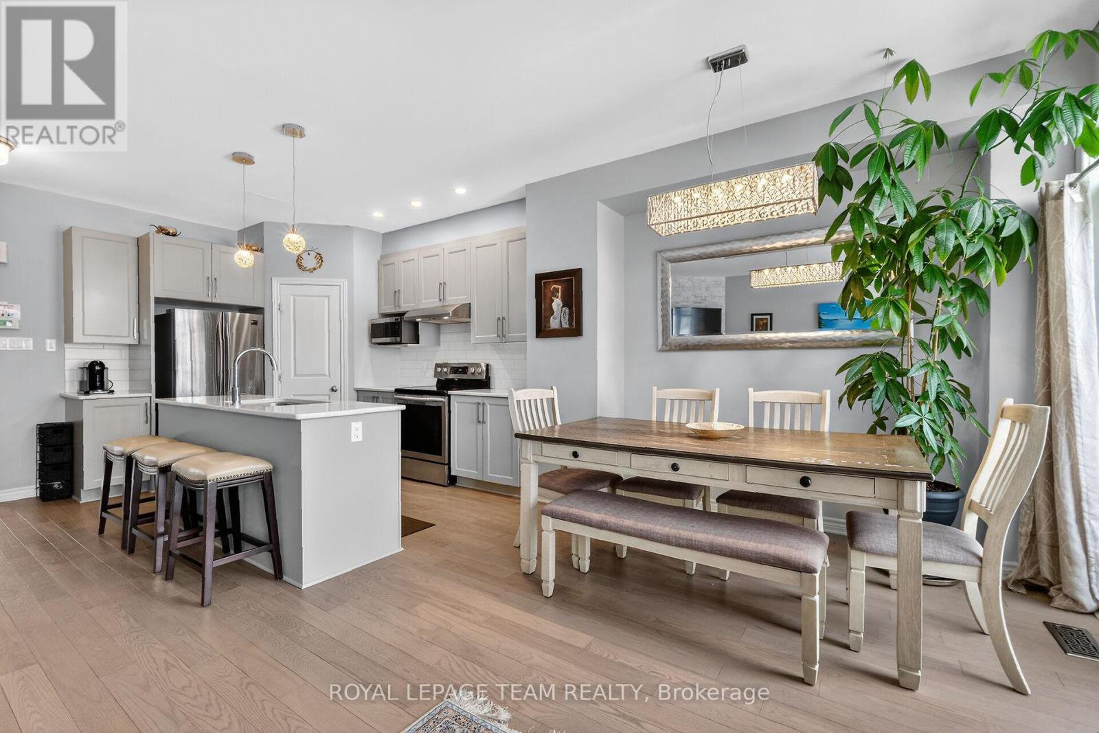 Welcome to the beautifully maintained 3 bedroom, 2.5 bath townhome located in the vibrant and family friendly community of Findlay Creek! The chef-inspired kitchen features quartz countertops, ample cabinetry, and generous prep space-ideal for hosting family and friends. Hardwood flooring flows throughout the main level, complimented by a cozy fireplace that creates a warm and inviting atmosphere. Spacious eating area can accommodate a large table and chairs. On the second level, you will find 3 spacious bedrooms, including a well-appointed primary retreat with ensuite bath with separate tub and shower. Two other well sized bedrooms, 4 pc main bath and 2nd floor laundry room. The lower level is spacious with a family room and also an area for your work-out equipment. Step outside to the meticulously maintained yard-hours spent on creating the perfect lawn, offering a beautiful outdoor space to relax and enjoy. Located just steps to parks, schools, shopping, restaurants and transit, this home truly offers the best of community living. An exceptional opportunity in one of Ottawa's most desirable neighbourhoods-perfect for families, empty nesters, and first time buyers. Upgrades include: hardwood floors, fireplace and quartz counters.
