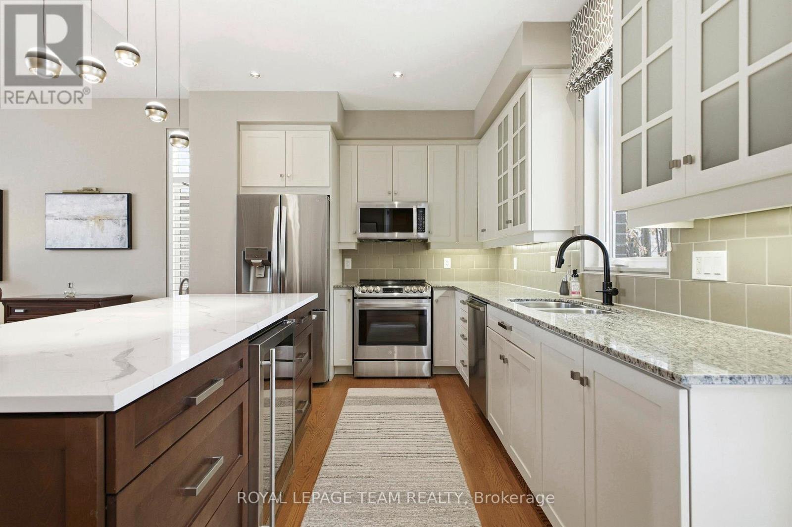 Welcome to St. George's Yard, an exclusive and award-winning development by Barry Hobin Architecture and Uniform Urban Developments, nestled in the heart of Wellington Village. Built in 2010, this meticulously designed 2-bedroom plus den, 3-bathroom home is perfectly tailored for the discerning homeowner. It is situated next to the serene Byron Linear Park, just a short stroll from Wellington Village and steps to your favourite shops and restaurants. This elegant residence offers a premium living environment across multiple levels, featuring: a rare double car garage, providing convenience and coveted storage space. Main level versatility includes a functional den/office that can easily be utilized as a third bedroom. Second level grandeur showcases an open-concept living, dining, and kitchen area with soaring high ceilings. The gourmet kitchen boasts newer appliances and loads of cupboard and counter space, a generous butler's pantry, and is conveniently located near the laundry area and a powder room. Third level luxury, features a tranquil primary suite with a walk-in closet and a spa-like ensuite. A second bedroom with its own ensuite provides ideal guest or family accommodation. Outdoor living, enjoy multiple balconies and a stunning rooftop deck, ideal for watching sunsets and entertaining guests. Do not miss out on living in this desirable community. Common element fee: $3,200/year for snow removal of walkway & driveway, and lawn & garden maintenance.