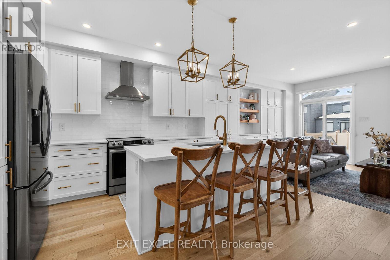 Stunning Claridge Oliver model (built 2021) in sought-after Riverside South! This bright, modern townhome offers 4 bedrooms, 2.5 bathrooms, and a finished basement with a rough-in for an additional bath. The main floor features 9' ceilings and engineered hardwood, with a beautifully upgraded chef's kitchen boasting over $30K in upgrades-an expanded layout with cabinetry extended across the entire back wall for exceptional storage, plus ceiling-height cabinets, a long oversized island, quartz countertops, and stainless steel appliances. Upstairs, enjoy a spacious primary retreat with a walk-in closet and spa-inspired ensuite featuring double sinks, a glass shower, and a deep soaker tub. Quartz countertops continue through all bathrooms. Step outside to a fully fenced backyard with PVC fencing (2022), a patio (2022), and gazebo-perfect for summer entertaining. 2-car driveway with interlock (2022) for the second parking space. Move-in ready with exceptional upgrades throughout! Still under Tarion warranty until Oct 2028!