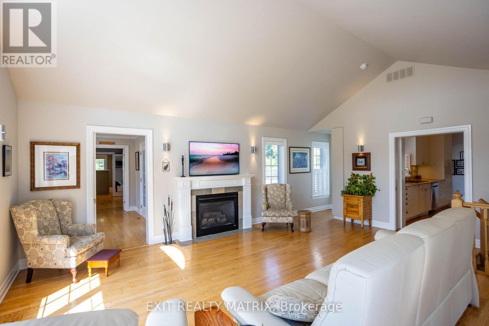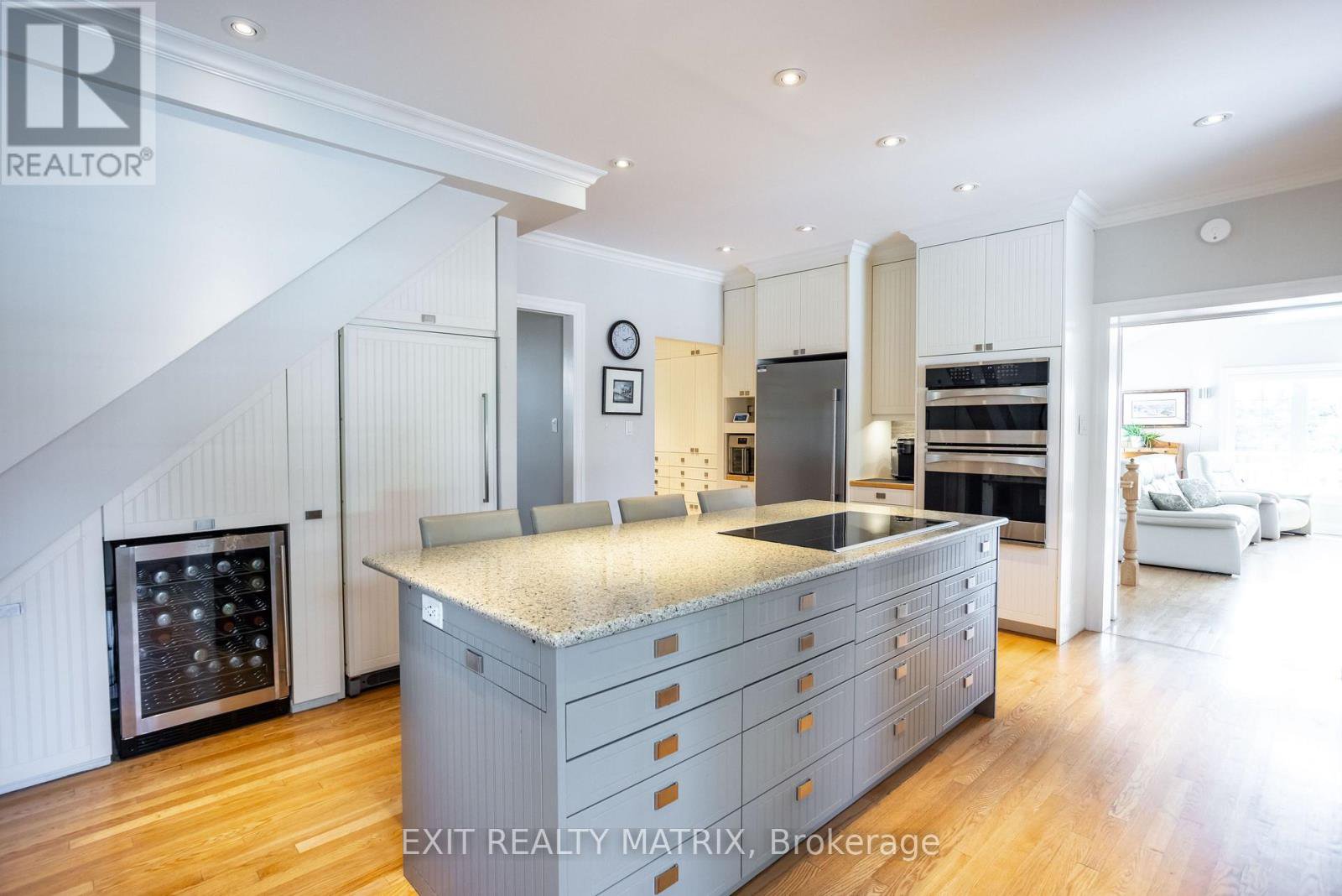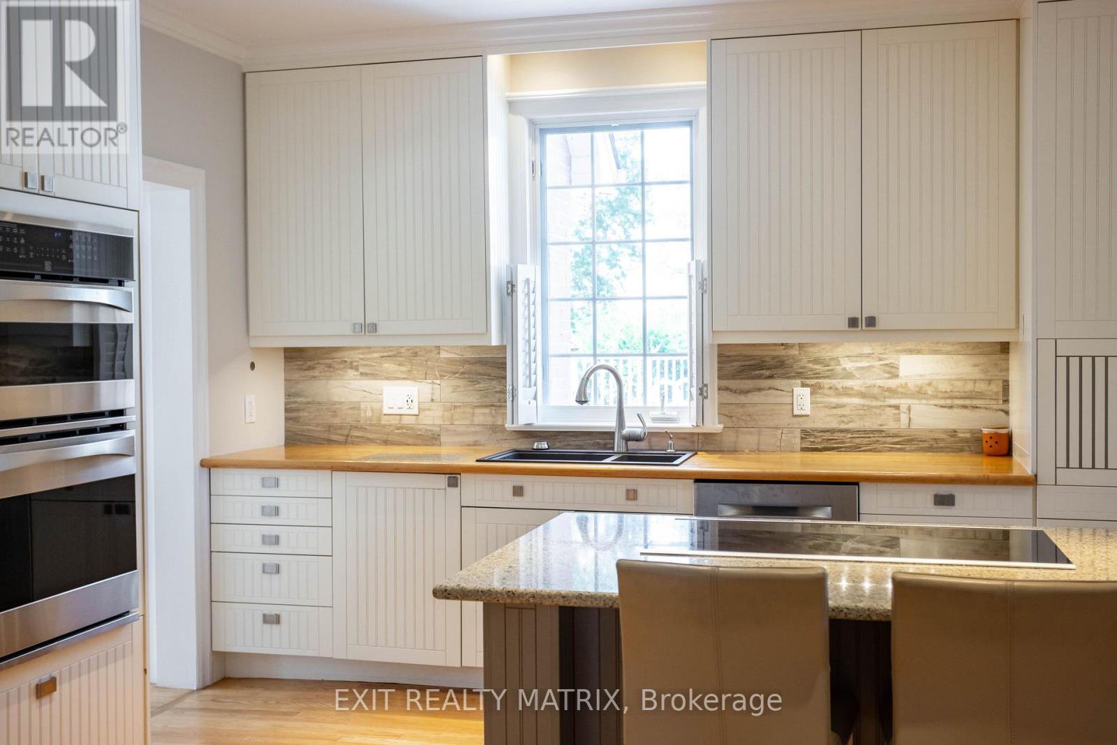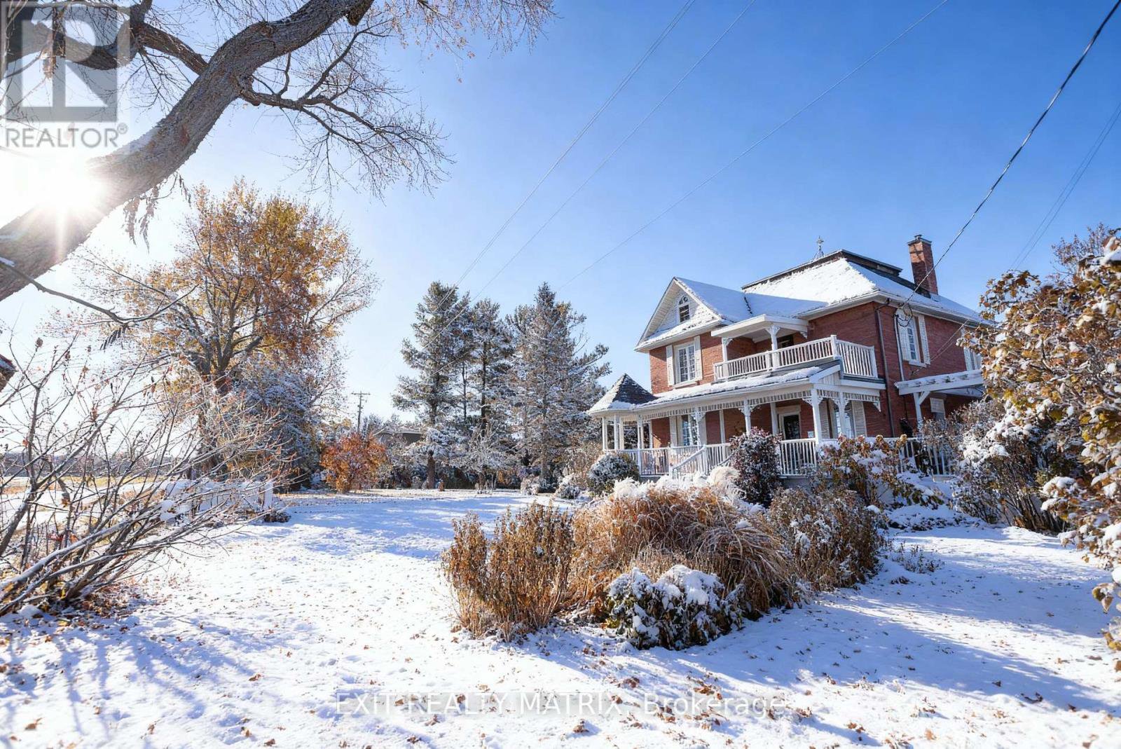 A rare estate in the heart of Metcalfe, just 30 min from downtown Ottawa. This beautiful century home offers the perfect blend of timeless character, modern updates, & incredible space-ideal for multigenerational living, working from home, or creating rental income. With 3 floors of above-ground living space plus a fully finished basement, this versatile property features 8 bedrooms & 4 full bathrooms, including a 7-bedroom main residence & a detached 2-bedroom apartment above the garage-ideal for in-laws, guests, or tenants. The 100-year-old original home blends seamlessly with a thoughtfully designed addition. Step into a spacious foyer that opens into elegant formal living & dining rooms. At the heart of the home is a chef-inspired kitchen with ceiling-height cabinetry, built-in ovens, bar fridge, clever appliance storage, & a centre island with seating & induction cooktop. A cozy family room with a fireplace leads to a bright sunroom with access to the backyard. The main-floor primary suite offers barrier-free living, a walk-in closet with custom built-ins, & a private 3-piece ensuite. An office and full bath with laundry complete the main level. Upstairs, you'll find 6 more bedrooms over 2 floors, plus office/hobby space. The finished basement offers 2 more bedrooms, a large rec area, & space for a home gym. Outside, enjoy your private backyard oasis with a professionally landscaped yard featuring perennials, mature shrubs and trees, a vegetable garden, a tranquil water feature, and an above-ground pool. Entertain or relax on large decks wrapping three sides of the home, surrounded by nature and privacy. The oversized detached garage includes a workshop and a self-contained 2-bedroom apartment above. A new roof and extensive updates make this home truly move-in ready. Located minutes from shops, parks, and schools in Metcalfe, with easy access to Greely, Russell, and Ottawa. This is more than a home-it's a lifestyle.