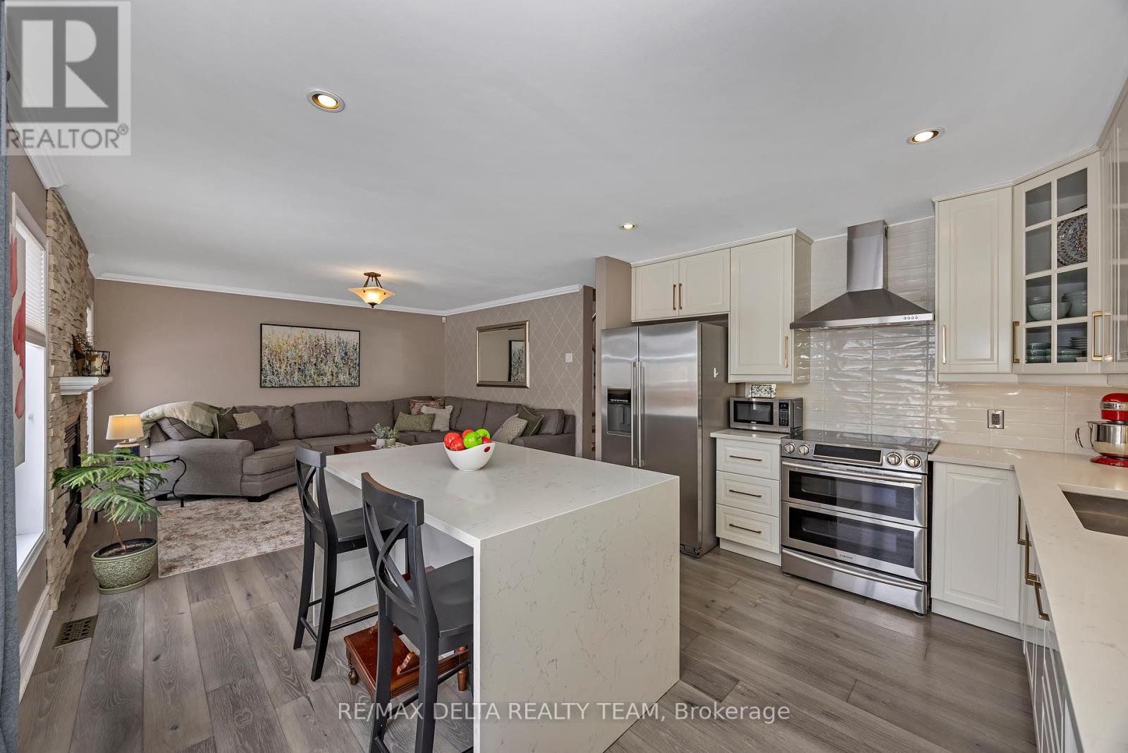 Welcome to this beautifully upgraded 3-bedroom, 4-bathroom home, perfectly situated in the highly desirable Chapman Mills community of Barrhaven-just steps from Drumlins Park. Thoughtfully designed and meticulously maintained, this residence offers luxury finishes, modern comfort, and exceptional outdoor living. The main level impresses with wide-plank luxury hardwood flooring, elegant wainscoting (continuing along the stairs and one secondary bedroom) crown molding, and a striking cultured-stone feature wall. The contemporary kitchen blends style and function with its oversized deep sink, Quartz counters, integrated dishwasher, soft-close cabinetry, and a generous island with seating-ideal for both entertaining and everyday living. Upstairs, the spacious primary suite features a custom walk-in closet, custom feature wall and a refreshed ensuite with an updated vanity. Two additional bedrooms include custom closet organizers, and four beautifully appointed bathrooms throughout the home, family and guests will always feel comfortable. The fully finished lower level offers a warm and inviting family room complete with a cozy electric fireplace, plus a large laundry room with extensive cabinetry and storage. Step outside to your private backyard oasis (2019), fully fenced and professionally landscaped for maximum enjoyment and privacy. Unwind under the gazebo, host gatherings on the interlock patio, or cool off in the stunning 13' x 26' in-ground pool. Equipped with a heater, clear blue system, waterfall feature, and a safety cover with anchors, this outdoor retreat is designed for effortless summer living. Ideally situated near beautiful parks and steps from the scenic Rideau River, this exceptional property is also a short 10-minute walk from the Chapman Mills Conservation Area-featuring a boardwalk trail, picnic spots, and a canoe/kayak launch. Located within top-rated school catchments, it offers an outstanding blend of luxury, comfort, and convenience.