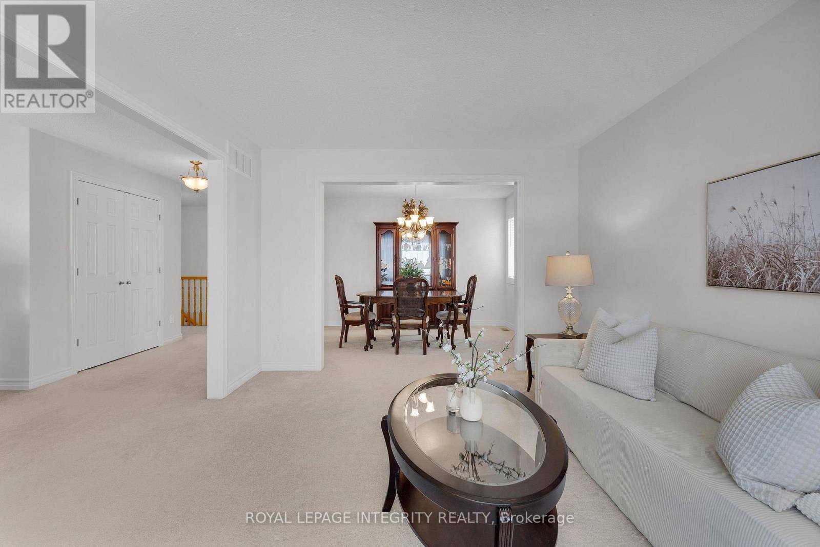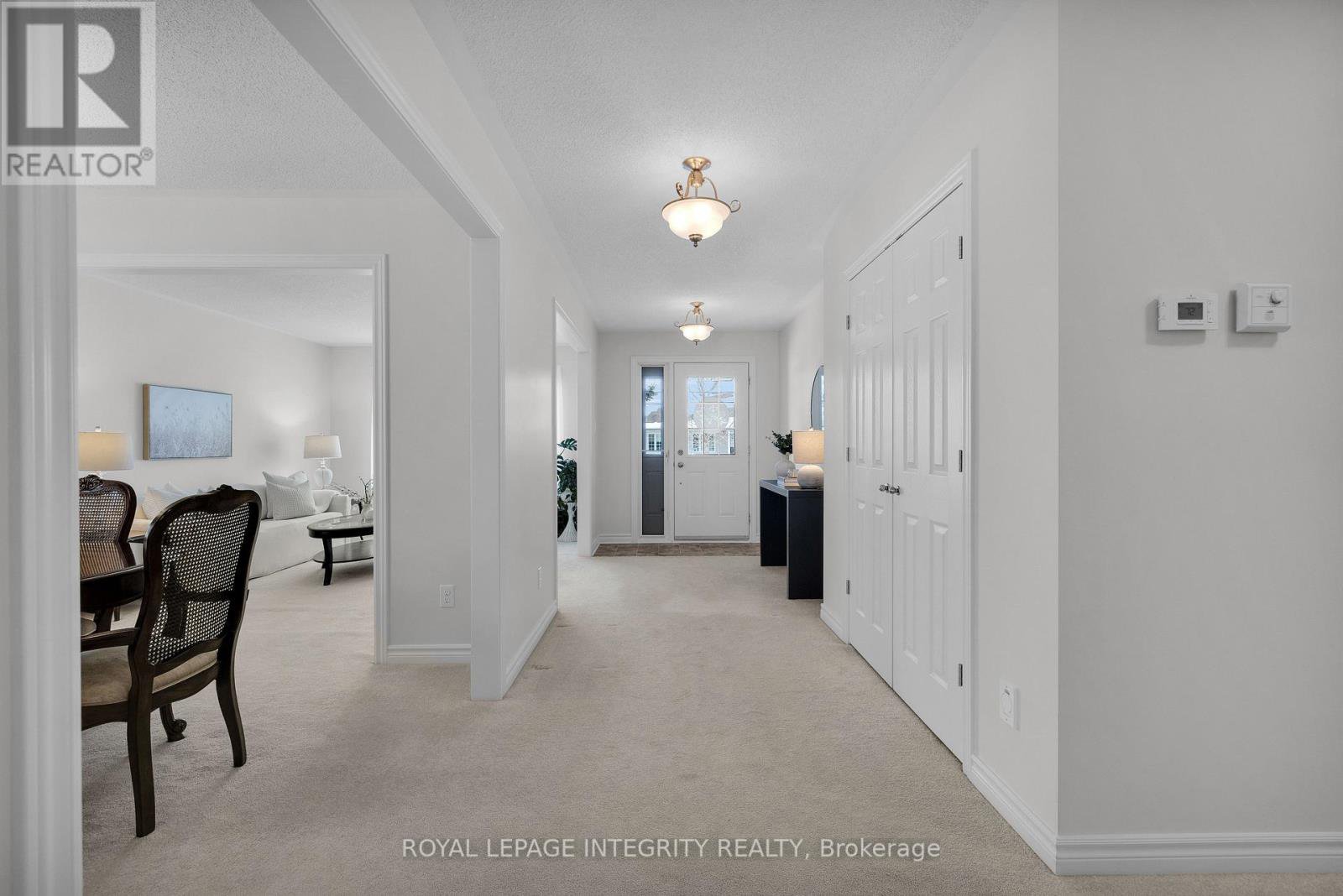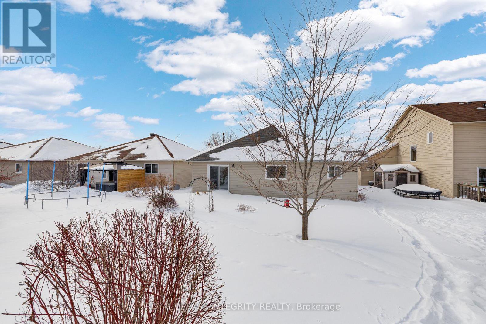 Welcome to Riverfront Estates, one of Almonte's most sought-after neighbourhoods, just steps to the Mississippi River & the heart of this charming historic town. This custom detached bungalow offers timeless design, thoughtful craftsmanship & exceptional potential. From the moment you arrive, the spacious entryway sets the tone. To the right a generous formal living room is filled w/ natural light. Adjacent is a well-proportioned dining room, ideal for hosting family gatherings. The heart of the home is the custom kitchen, designed w/ intention & functionality in mind. Solid, well crafted cabinetry maximizes storage & usability, complemented by SS appliances, granite countertops, crown moulding above the cabinets & a charming window over the sink. An eat-in area offers space for casual meals, flowing seamlessly into the adjacent family room, a bright & comfortable space w/ patio doors leading to the backyard, perfect for indoor-outdoor living in warmer months. This main level features 3 bdrms, including a primary suite w/ full ensuite, plus a second full bath. A practical mudroom off the attached 2-car garage includes laundry & closet space, adding everyday convenience. The unfinished lower level is expansive, a true blank canvas w/ endless potential. Offering ample room for additional living space, a home gym, rec room or guest suite, plus a bath rough-in already in place. Outside, the backyard offers a peaceful setting w/ no direct rear neighbours & mature gardens. The front of the home is enhanced by professionally landscaped interlock stone walkway & driveway perimeter (2023), adding excellent curb appeal. Located in the heart of Almonte, this home is within walking distance to a highly regarded hospital, R. Tait McKenzie PS, Holy Name of Mary CS, scenic river pathways & the town's vibrant shops, cafés & amenities. Enjoy the ease of small-town living w/ convenient access to major routes, all within a neighbourhood known for pride of ownership & community spirit
