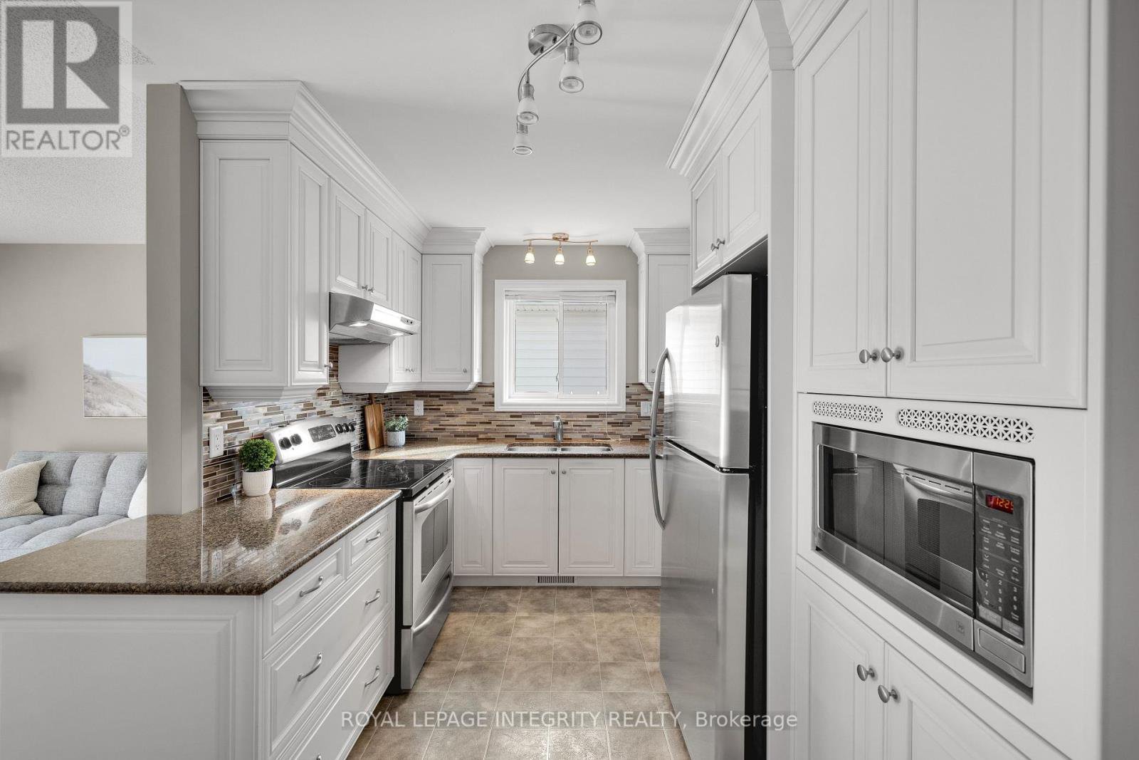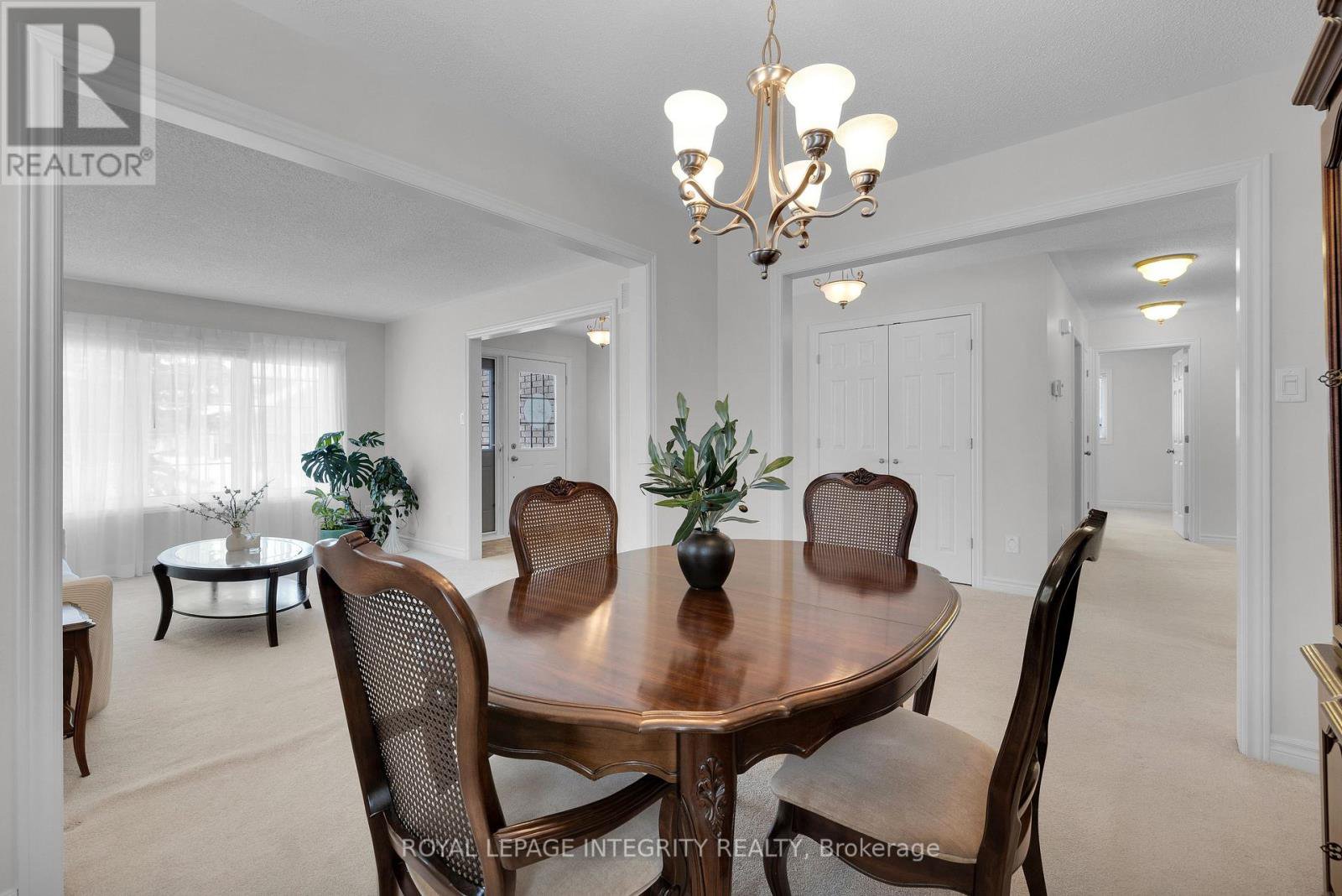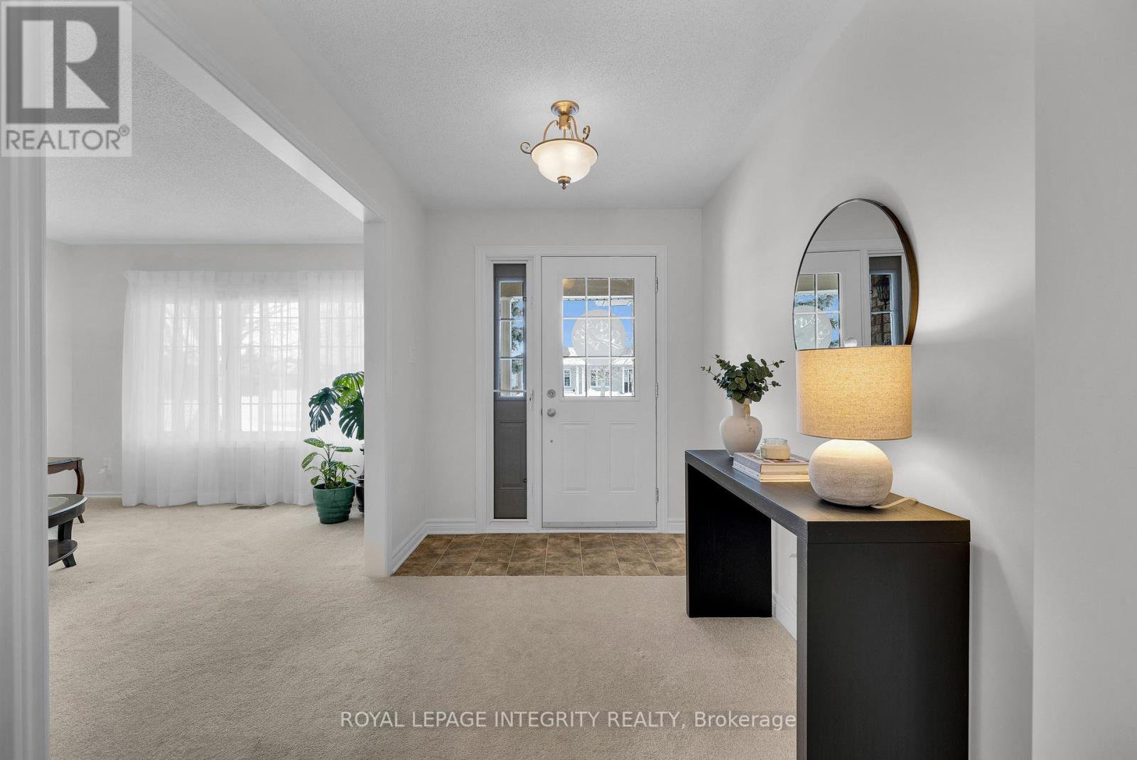 Welcome to Riverfront Estates, one of Almonte's most sought-after neighbourhoods, just steps to the Mississippi River & the heart of this charming historic town. This custom detached bungalow offers timeless design, thoughtful craftsmanship & exceptional potential. From the moment you arrive, the spacious entryway sets the tone. To the right a generous formal living room is filled w/ natural light. Adjacent is a well-proportioned dining room, ideal for hosting family gatherings. The heart of the home is the custom kitchen, designed w/ intention & functionality in mind. Solid, well crafted cabinetry maximizes storage & usability, complemented by SS appliances, granite countertops, crown moulding above the cabinets & a charming window over the sink. An eat-in area offers space for casual meals, flowing seamlessly into the adjacent family room, a bright & comfortable space w/ patio doors leading to the backyard, perfect for indoor-outdoor living in warmer months. This main level features 3 bdrms, including a primary suite w/ full ensuite, plus a second full bath. A practical mudroom off the attached 2-car garage includes laundry & closet space, adding everyday convenience. The unfinished lower level is expansive, a true blank canvas w/ endless potential. Offering ample room for additional living space, a home gym, rec room or guest suite, plus a bath rough-in already in place. Outside, the backyard offers a peaceful setting w/ no direct rear neighbours & mature gardens. The front of the home is enhanced by professionally landscaped interlock stone walkway & driveway perimeter (2023), adding excellent curb appeal. Located in the heart of Almonte, this home is within walking distance to a highly regarded hospital, R. Tait McKenzie PS, Holy Name of Mary CS, scenic river pathways & the town's vibrant shops, cafés & amenities. Enjoy the ease of small-town living w/ convenient access to major routes, all within a neighbourhood known for pride of ownership & community spirit
