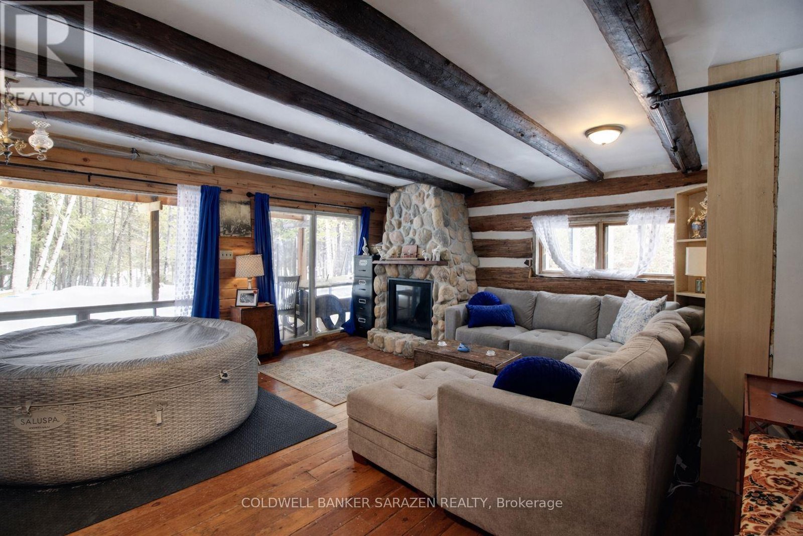 Hidden from the road on 2.4 private acres in White Lake, this charming log home offers the perfect retreat only minutes away from the boat launch, rink, park, and general store, and only 10 minutes from Arnprior. Surrounded by nature, it blends rustic warmth with thoughtful comfort, featuring beautiful vaulted ceilings, a cozy electric fireplace, a classic wood stove, propane/wood combination furnace, abundant storage, and a loft bedroom with its own 3 piece ensuite, with potential to develop a large room above the living room. Three sheds (two large and one smaller shed with additional storage and a convenient walk in access to the basement provides excellent space, including ideal wood storage. Complete with a private sauna, this peaceful sanctuary is the perfect place to unwind, gather by the fire and truly get away.