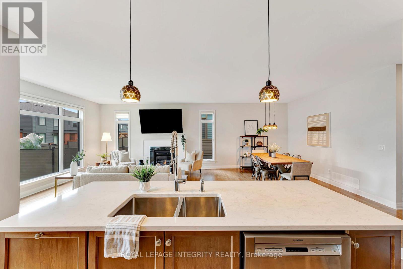 Experience refined luxury in this Barry Hobin-designed Mariposa model by Uniform, offering over 2,761 sq. ft. of impeccably finished living space directly across from the community park. Located in sought-after Wateridge Village and thoughtfully curated with a sleek, modern aesthetic, this home blends elevated design with everyday functionality.The chef-inspired kitchen is anchored by quartz countertops, premium appliances, a walk-in pantry, and seamless flow into the elegant dining area - perfect for hosting and gathering. The sun-drenched living room features a contemporary fireplace and tranquil backyard views. A private main-floor office creates an ideal work-from-home retreat, while the full bath off the mudroom adds convenience for guests, busy families, or pet owners. Upstairs, the spacious primary suite offers a true retreat, complete with a spa-inspired ensuite featuring a dedicated flex space designed for a future sauna installation or a custom makeup vanity, plus a generous walk-in closet. Three additional bedrooms, a full bathroom, and a well-appointed laundry room complete the upper level. The unfinished basement, with oversized windows and rough-ins for a full bath and kitchen, presents exceptional in-law suite or multi-generational potential. Custom blinds, designer fixtures, and thoughtfully selected finishes elevate every corner of this home. Enjoy unbeatable central access to Blair LRT, Montfort Hospital, NRC, museums, highways, and downtown. Luxury. Location. Versatility. All in one exceptional home.