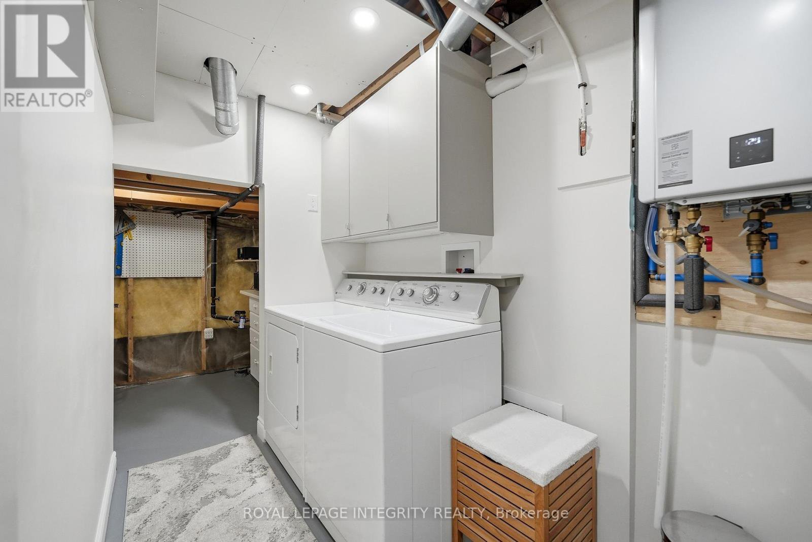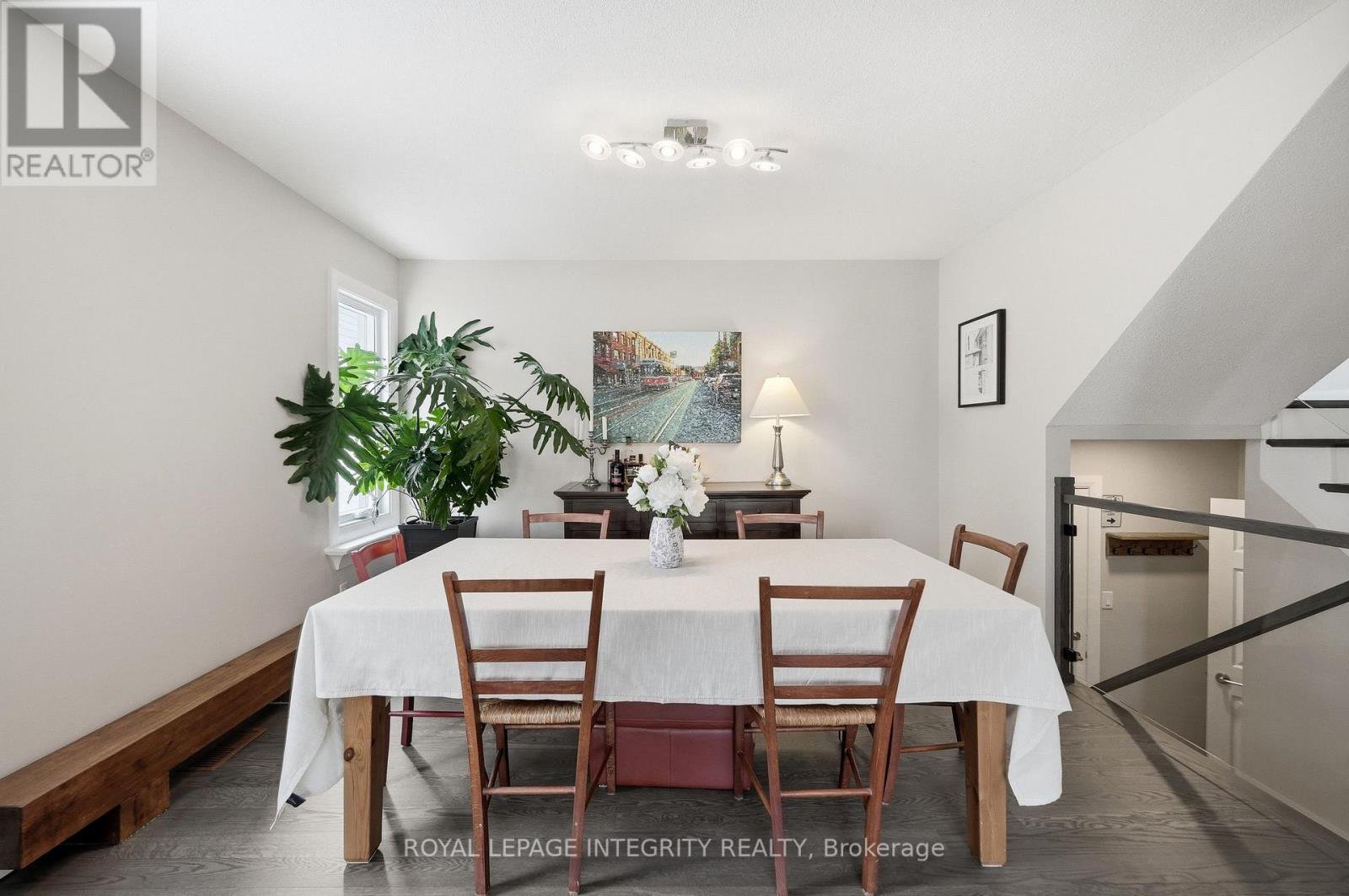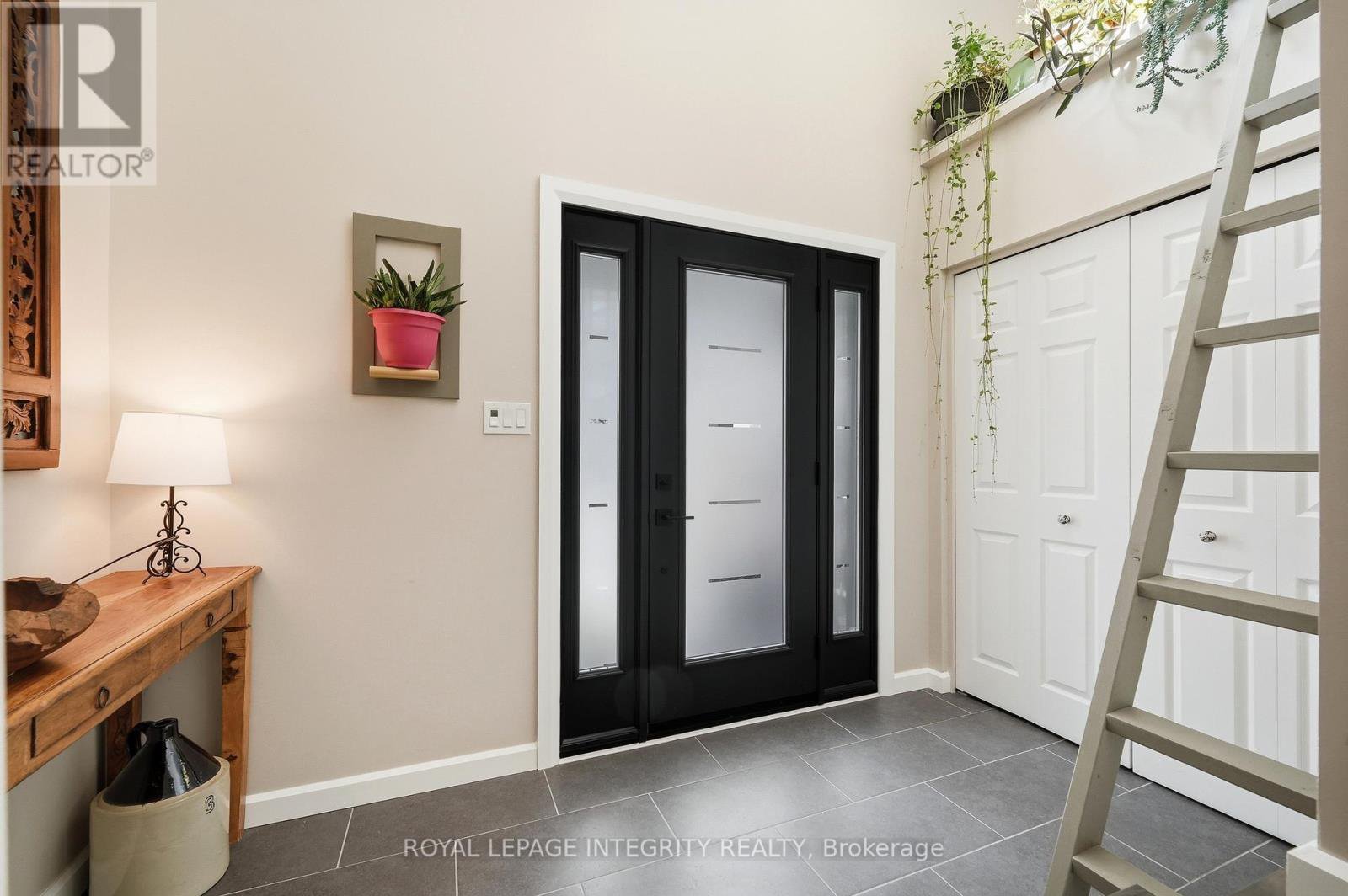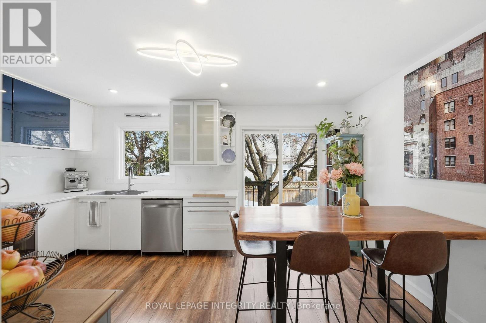 Stunning 4-bedroom, 4-bathroom home on a quiet street showcasing true pride of ownership! From the moment you arrive, you'll notice the beautiful curb appeal with a double-wide driveway, interlock walkway, and covered front porch. Step inside to a welcoming, impressive foyer with high ceilings and a large closet. A few steps up, the main floor offers a functional layout featuring an updated kitchen with glossy white and striking dark blue cabinetry, quartz counters, stainless steel appliances including a refrigerator with ice and water dispenser, glass backsplash, LED pot lights, and a spacious eating area for casual dining. A walk-in pantry with counters and cabinets provides excellent food prep space and additional storage. From the eating area, patio doors lead to the private backyard with a large deck, mature trees and greenery, and a storage shed - perfect for entertaining or relaxing after work. The sun-filled living room with a large window overlooks the backyard and offers a wood fireplace to cozy up on cooler evenings, and flows seamlessly into the dedicated dining area, both finished with gleaming hardwood floors. Beautiful woods stairs and glass railings lead you upstairs, where the flooring continues into the cozy loft style family room perfectly centered with a gas fireplace. Upstairs, you'll find the primary bedroom with two closets and a 3-piece ensuite featuring a walk-in glass shower, along with two additional generously sized bedrooms and a full bathroom. The fully finished basement offers a versatile recreation room, fourth bedroom, full bathroom, laundry area, and ample storage. Ideally located just steps to many amenities and with easy highway access for daily commuting - this home is a must see!