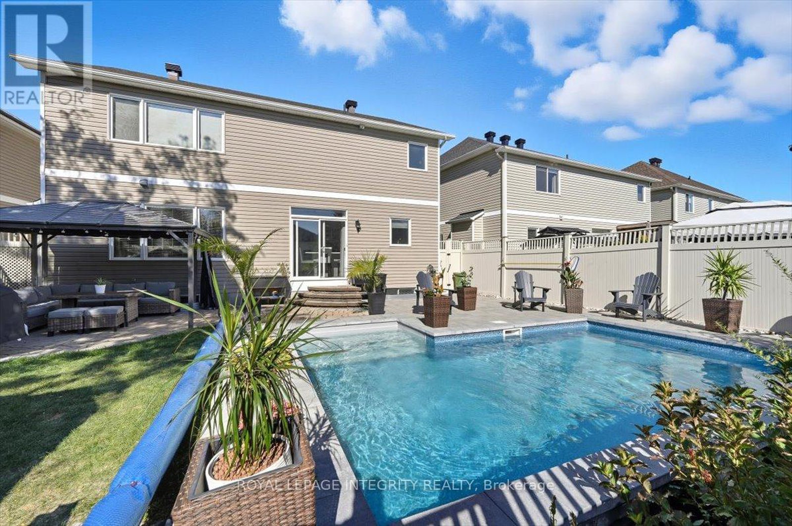 Welcome to 1110 Luesby Crescent - a stunning 6 bedroom, 4 bathroom home with backyard oasis located on quiet street in the heart of Fallingbrook, one of Orleans most established and family-friendly neighbourhoods! Pull up the driveway that can easily accommodate 4 cars, providing access to the double car garage and interlock walkway leading you to the welcoming foyer where you'll get the first glimpse of your beautiful main floor with functional layout. Gleaming hardwood floors guide you through the living room and dining room with serving bar and wine fridge, before making your way to the true heart of the home, the entertainer's dream kitchen, offering tons of cabinets and counter space, stainless steel appliance, walk-in pantry, beautiful backsplash and granite counters and large center island with tons of seating overlooking the family room with cozy fireplace, and patio doors giving access to the fully fenced south-facing backyard with in-ground heated salt water pool (2021), interlock sitting area with gazebo and landscaping - the perfect place to entertain or unwind after work! Completing the main floor is a great size office, partial bathroom and access to the double car garage. Upstairs, the hardwood continues into the sizeable primary bedroom with views of the backyard, great size walk-in closet and 4 piece ensuite with glass shower and corner soaker tub. An additional 4 great size bedroom, a full bathroom with heated floors and dedicated laundry room complete the second level. The fully finished basement offers a massive versatile family room, a sixth bedroom, full bathroom and tons of storage. Located close to excellent schools, parks, transit, and shopping, this home delivers the perfect blend of comfort, space, and location.
