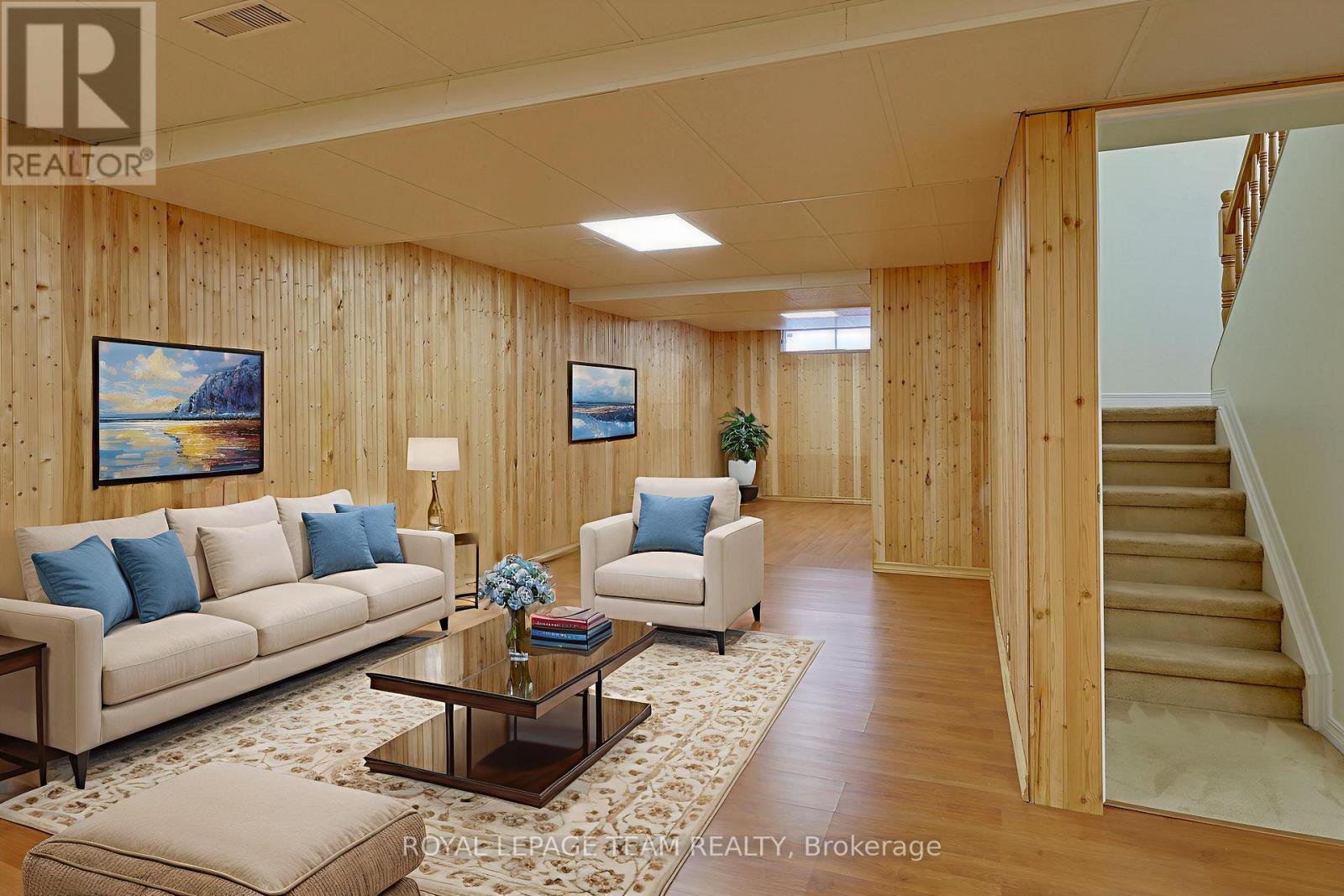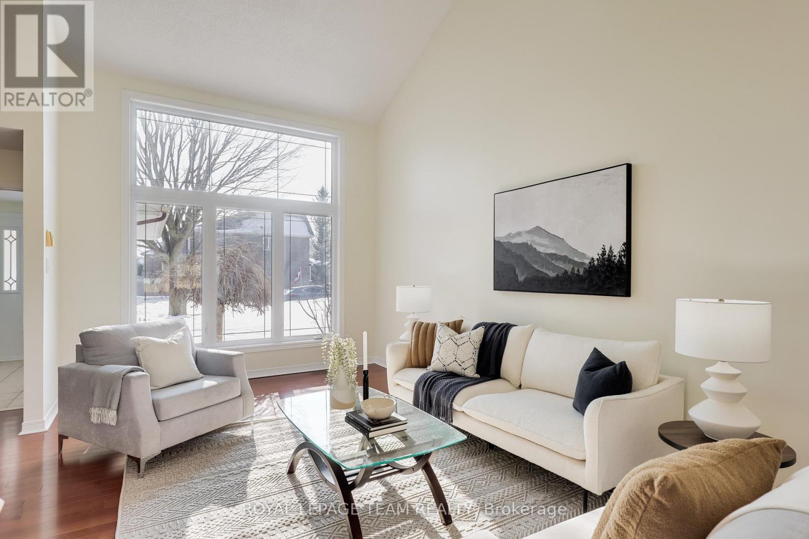 Welcome to this beautifully maintained Minto Pearl model in the heart of Centrepointe, offering 4 bedrooms, 3 full bathrooms, a double attached garage, and a fully finished basement. One of its standout features is the main-floor den paired with a full 3-piece bathroom - ideal for multi-generational living, guests, or a private home office. With thoughtful updates throughout and generous living space, this home combines functionality, comfort, and long-term value in one of Ottawa's most desirable family neighbourhoods. The front exterior sits on a quiet, mature street with excellent curb appeal and a welcoming entry. Step inside to a bright foyer that opens to a south-facing vaulted living room filled with natural light, creating an immediate sense of openness. The formal dining area flows seamlessly for easy entertaining. The kitchen features quartz countertops, oak cabinetry, and a sunny breakfast area overlooking the backyard, while the adjacent family room with a wood-burning fireplace offers a warm, inviting space to relax. A wood staircase leads to the second level, where all bathrooms have been upgraded with quartz counters, new sinks, and modern light fixtures. The spacious primary suite includes a walk-in closet and a luxurious 5-piece ensuite with a jacuzzi tub and separate shower for true comfort and privacy. The additional bedrooms are well-sized and versatile. Downstairs, the fully finished basement provides two large recreation areas perfect for a home theatre, gym, or playroom, plus an oversized furnace room offering exceptional storage space. The private backyard is ideal for summer gatherings and family enjoyment. Major updates include a 2024 roof with transferable warranty, updated furnace (2015), and newer windows (approx. 2012), along with a Tesla charging outlet for added convenience. Located within walking distance to schools and close to Centrepointe Park, the water park, Nepean Library, City Service Centre, and Baseline LRT station.