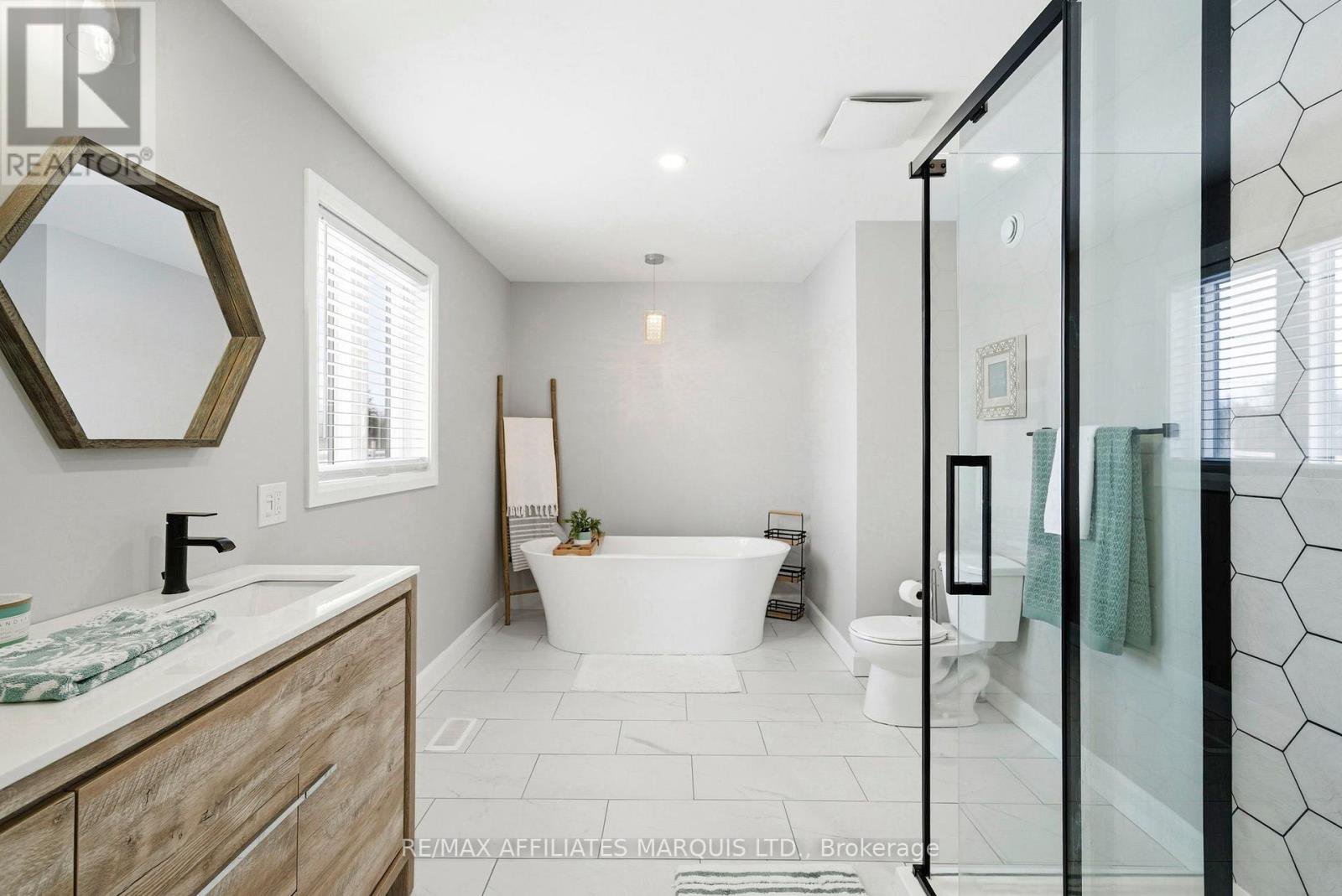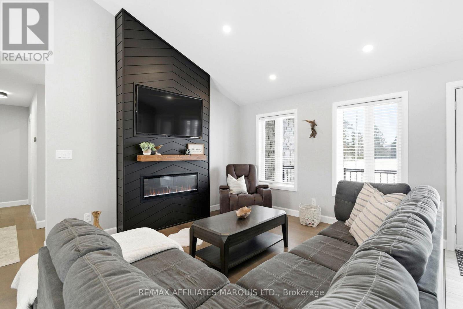 This custom-built Emberlee home stands out with its exceptional, striking stone exterior, vaulted interior spaces, and thoughtful design throughout. Located in a highly sought-after neighbourhood in Summerstown, this beautifully crafted home offers 3+2 bedrooms and 3 full bathrooms, delivering exceptional flexibility for growing families, guests, or work-from-home needs. The bright, open-concept main living area is enhanced by vaulted ceilings and engineered hardwood flooring, creating a warm and inviting atmosphere. The beautifully appointed kitchen features a large island with quartz countertops, ideal for both entertaining and daily living, and flows seamlessly into the dining area and open living room. A striking feature wall with a fireplace serves as a stunning focal point, adding both character and comfort to the space, while patio doors from the dining area lead to the back deck, complete with a gas hookup for convenient outdoor cooking. The spacious primary suite offers a private retreat, complete with a walk-in closet and a luxurious 4-piece ensuite featuring a relaxing soaker tub. Two additional bedrooms and a full bathroom complete the main level. The partially finished lower level offers excellent potential to customize to your needs, already featuring two additional bedrooms, a full bathroom, and a utility area with modern mechanical systems, including HRV and efficient heating. Additional highlights include an attached two-car garage, quality stone exterior, and the peace of mind that comes with owning a nearly new home. This is an exceptional opportunity to enjoy modern living in a desirable and growing community.
