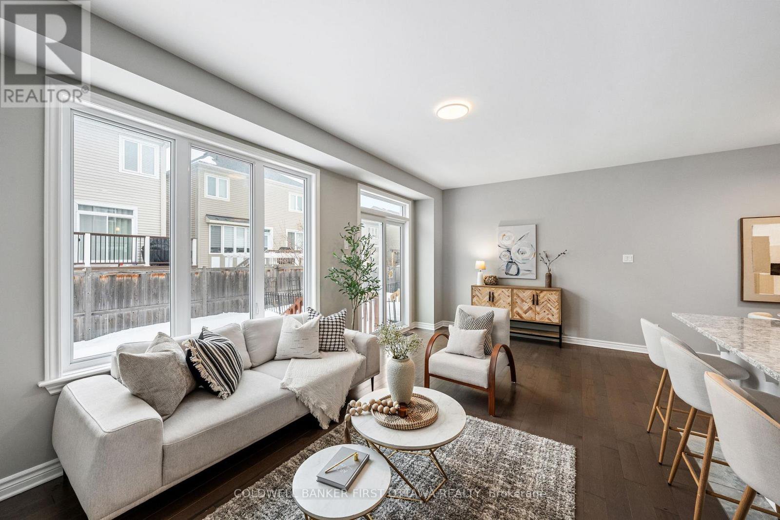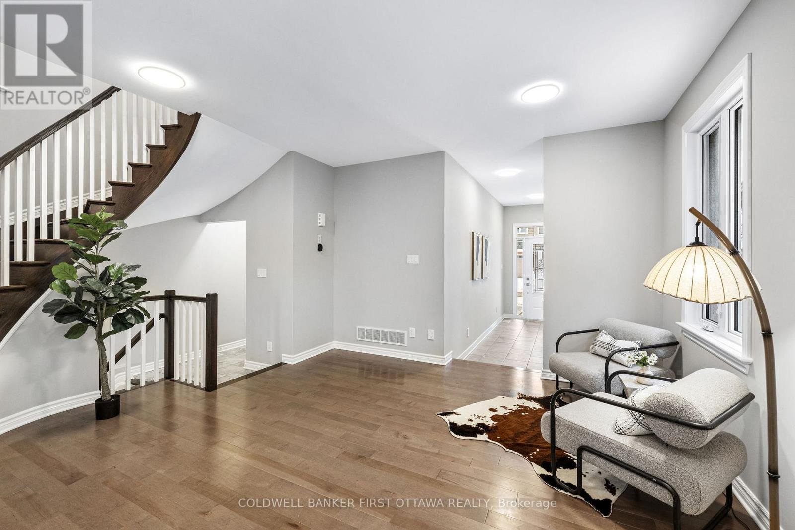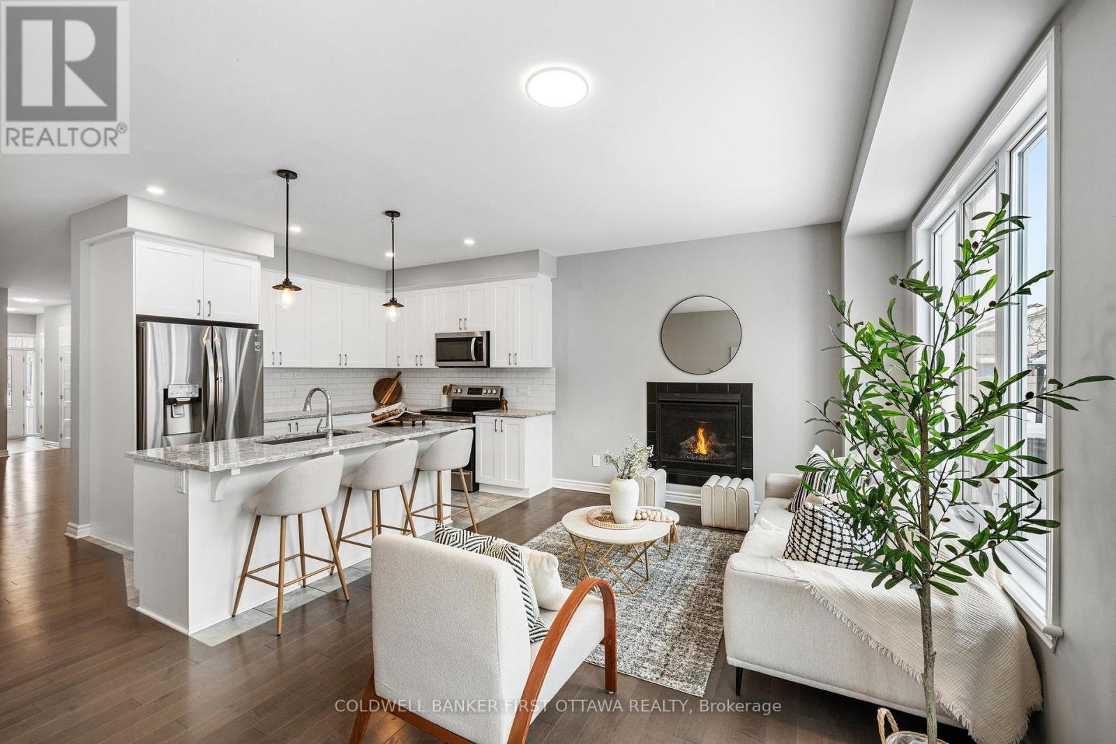 Impeccably maintained and beautifully presented, this four-bedroom, three-bath semi-detached home offers a generous and thoughtfully designed layout ideal for modern family living. The main level features an inviting formal living and dining area, complemented by an expansive kitchen appointed with stone countertops, a breakfast bar, and abundant cabinetry. The adjoining family room, complete with a cozy fireplace, provides a warm and comfortable vantage point over the private rear yard.A graceful, curved staircase leads to the second level, where you'll find four well-proportioned bedrooms. The primary suite serves as a true retreat, showcasing a spacious walk-in closet and a luxurious four-piece ensuite.The finished lower level extends the home's versatility, offering an excellent space for a home office, recreation room, or additional family living.Situated in one of Stittsville's most desirable neighbourhoods, this property enjoys close proximity to schools, numerous parks, vibrant local shops and eateries, and convenient access to Kanata's retail and entertainment districts. A superb blend of comfort, style, and location.