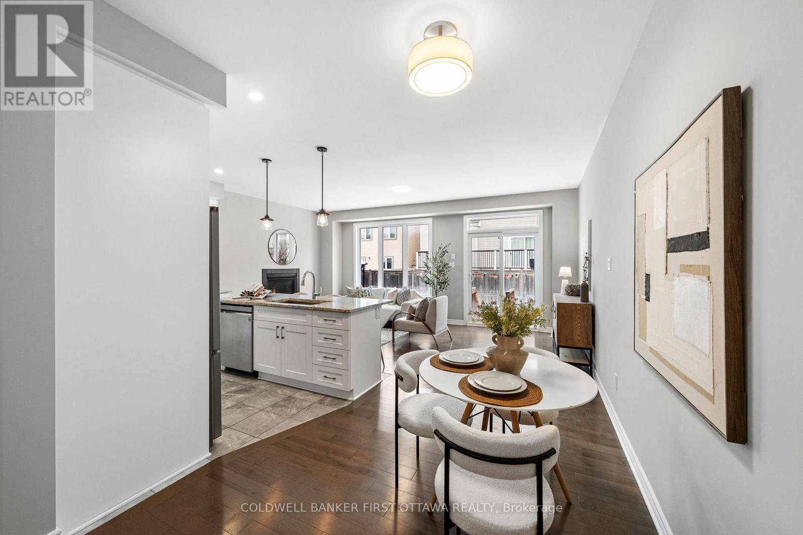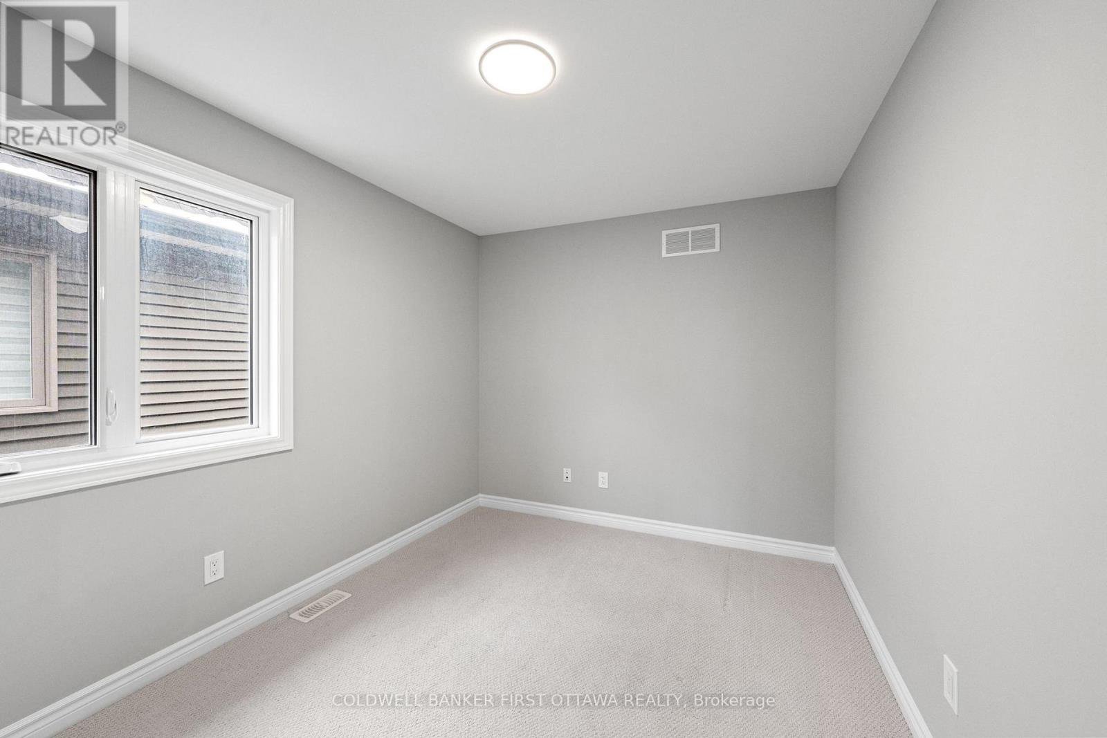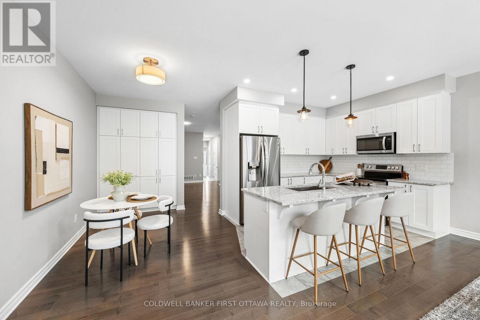 Impeccably maintained and beautifully presented, this four-bedroom, three-bath semi-detached home offers a generous and thoughtfully designed layout ideal for modern family living. The main level features an inviting formal living and dining area, complemented by an expansive kitchen appointed with stone countertops, a breakfast bar, and abundant cabinetry. The adjoining family room, complete with a cozy fireplace, provides a warm and comfortable vantage point over the private rear yard.A graceful, curved staircase leads to the second level, where you'll find four well-proportioned bedrooms. The primary suite serves as a true retreat, showcasing a spacious walk-in closet and a luxurious four-piece ensuite.The finished lower level extends the home's versatility, offering an excellent space for a home office, recreation room, or additional family living.Situated in one of Stittsville's most desirable neighbourhoods, this property enjoys close proximity to schools, numerous parks, vibrant local shops and eateries, and convenient access to Kanata's retail and entertainment districts. A superb blend of comfort, style, and location.