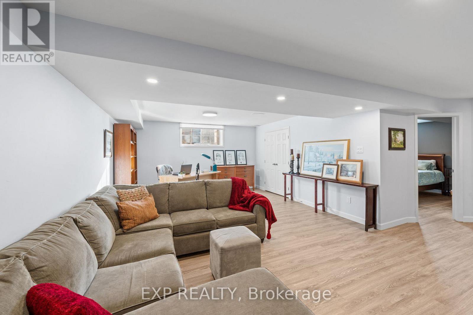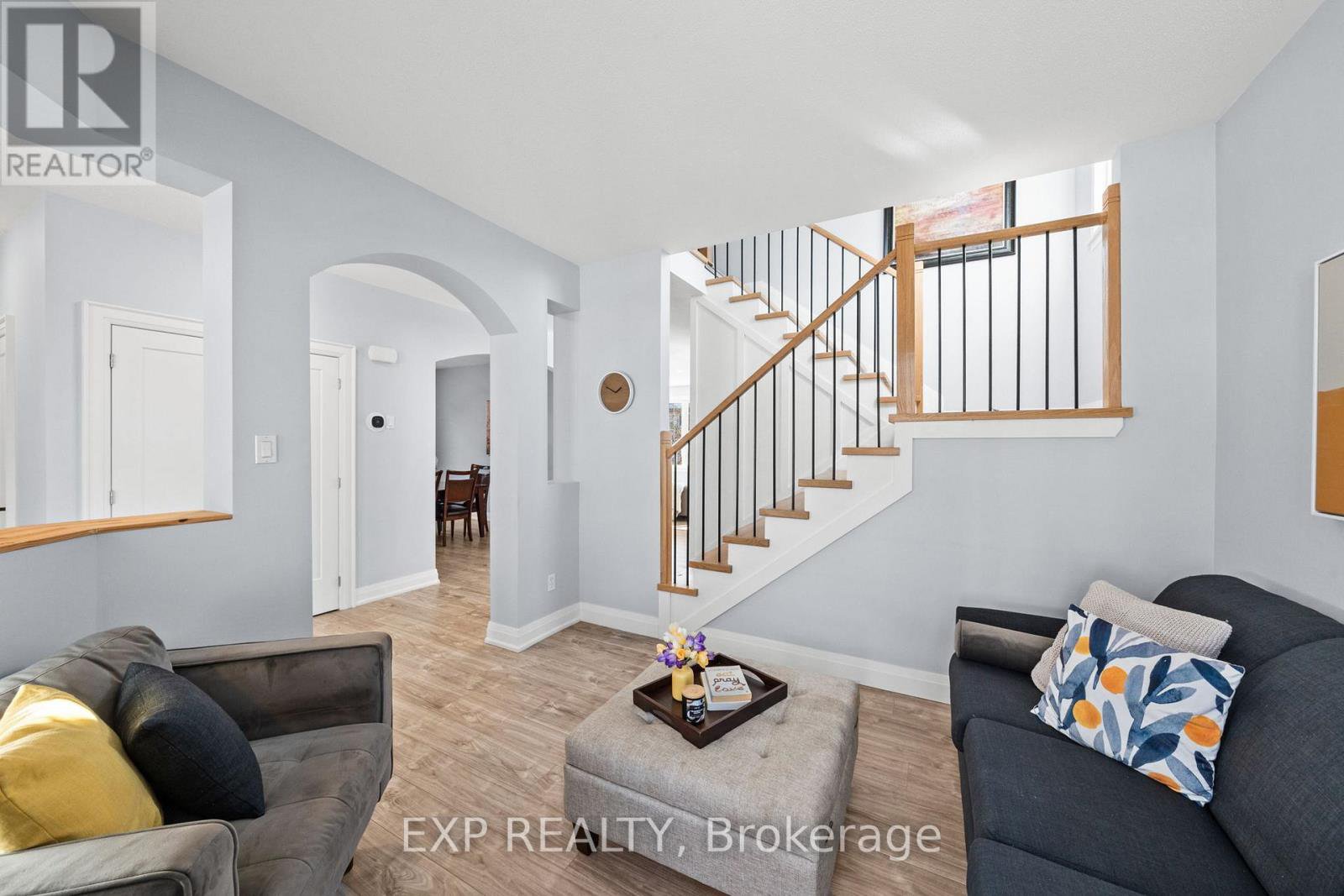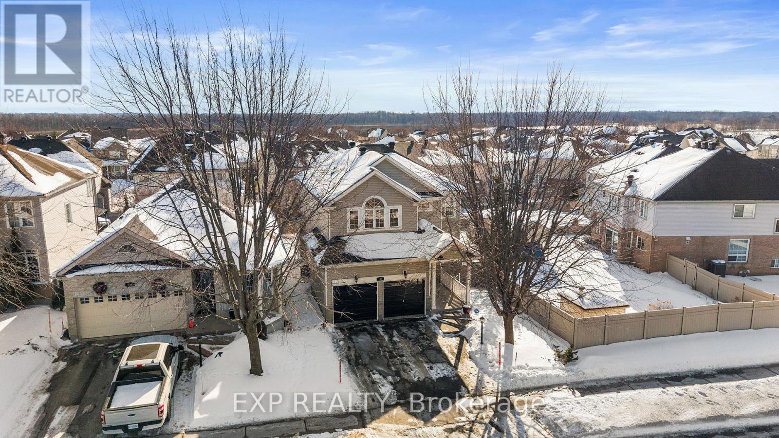 Welcome to this Monarch-built 4+1 bedroom, 4 bathroom home in a sought-after Orleans neighbourhood close to parks, schools, restaurants, and a quick drive to downtown Ottawa. From the moment you arrive, the updated garage doors and covered front porch create a warm and inviting first impression. Step inside to a bright foyer that leads to the front living room filled with natural light, with beautiful laminate flooring throughout the main level. The formal dining room is framed by an arched doorway, creating a defined space perfect for entertaining. At the rear of the home, the layout opens into the kitchen and family room. The updated kitchen features quartz countertops, a waterfall island with seating, stainless steel appliances, tiled backsplash, and two fridges. The island overlooks the family room, making it ideal for everyday living and gatherings. The family room is anchored by a fireplace feature wall and large windows overlooking the backyard. The main floor living room provides a space "away", while the mudroom/laundry area provides convenient access to the double garage. Upstairs, the spacious primary bedroom includes a walk-in closet and renovated 4-piece ensuite with quartz counters, corner soaker tub, and separate glass shower. A secondary bedroom features a cathedral ceiling with large windows, while the remaining bedrooms are very spacious. A 4-piece main bathroom completes this level. The bright finished basement adds valuable living space with a large rec room, fifth bedroom, 3-piece bathroom, exercise area, and storage. The oversized backyard includes a deck and pergola area for outdoor dining and relaxing. Book your private showing today.
