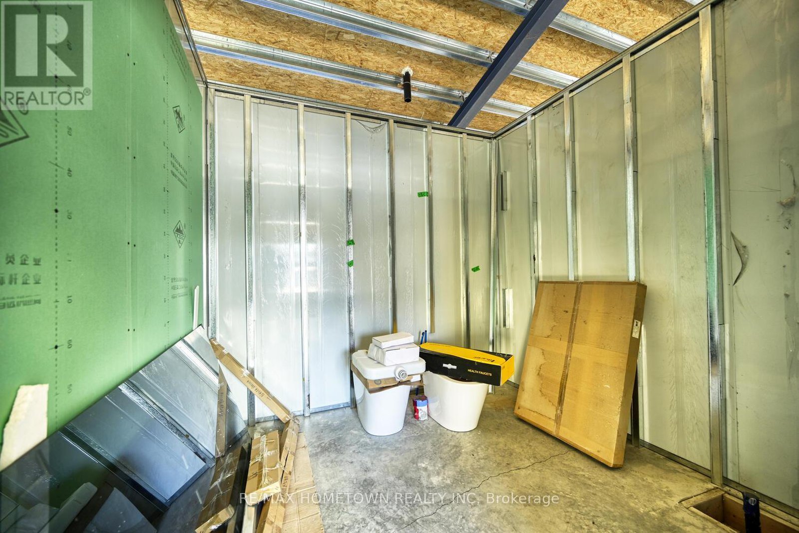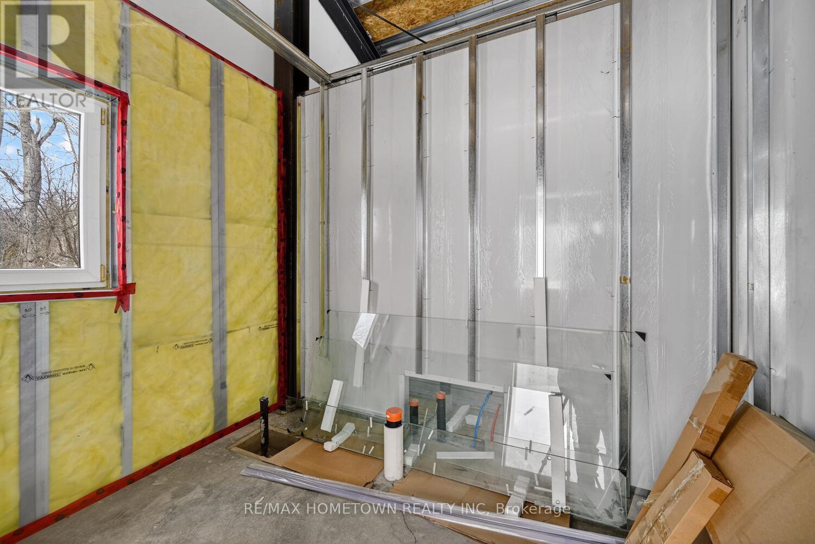 Take a look at this unfinished 1500+ sq ft bungalow, all on one level. This home gives you the opportunity to decide how you want to finish it. It offers three bedrooms, three plumbed-in bathrooms, an attached double garage, and a private setting set back from the road. It's only a short drive to the 401, Brockville, or Prescott. This bungalow sits on a slab with in-floor hot water heating planned throughout. There's still work to be done to complete it: the septic system has been dug and is ready to install, a well is needed, and the hydro needs to be connected. Inside, the space is yours to finish however you like. The front veranda is designed to be heated, which is a nice bonus for Canadian winters. The layout is open concept as you walk through the front door. You're greeted by the living room, kitchen, and dining area, which could also work as an office or sitting room. Just off this space is the laundry and mechanical room/mudroom with access to the garage. The primary bedroom, with its own five-piece bath, is on this side of the house. Two more bedrooms, each with their own three-piece ensuite, make hosting guests easy. One of the best features is that the interior walls can be moved if you want to adjust room sizes or reconfigure the layout. All room entrances have been designed and fitted to support stylish barn doors, adding both character and space-saving functionality. The possibilities are wide open. This can be finished with a construction loan or a loan with quotes for major renovations; check with your lender. The taxes are based on the vacant land, and the buyer will have to do their own due diligence for quotes to finish the inside of the house, septic, well, and hooking up the hydro. Property being sold 'as is.' The following permits have been closed. Footings: Foundation column rebar, the foundation prior to backfill, rough plumbing in 2023, framing, partial insulation, Partial insulation and VB in 2025