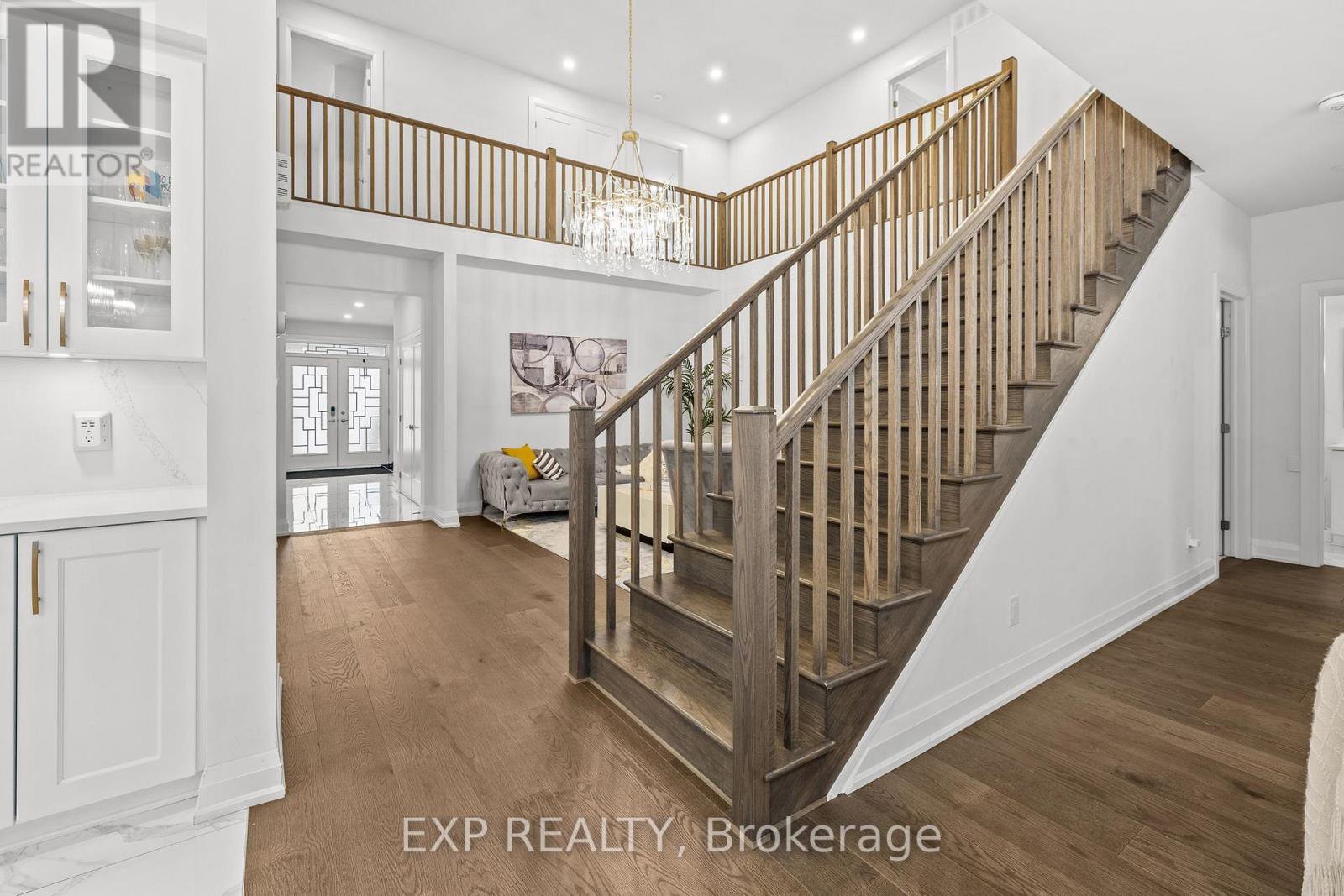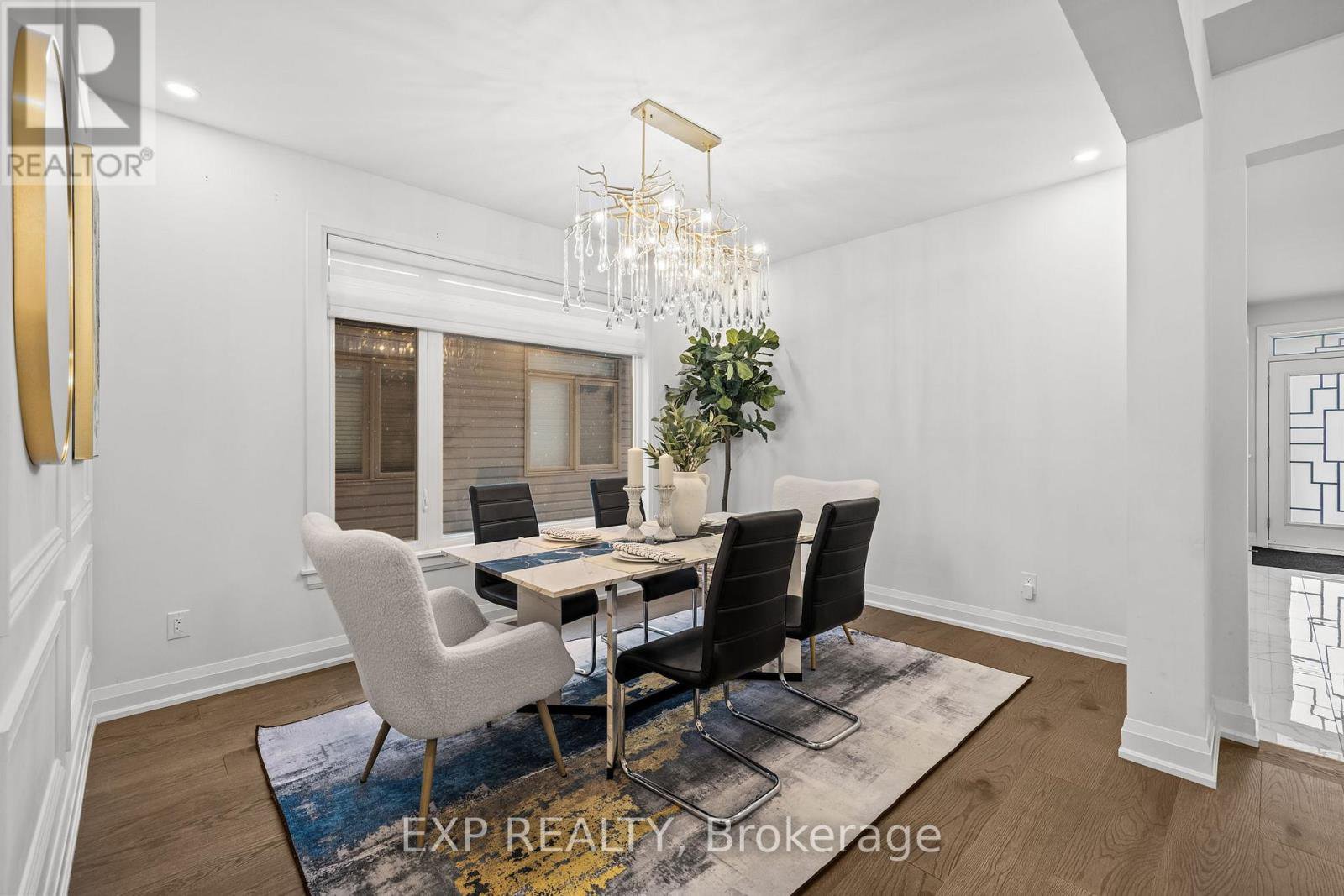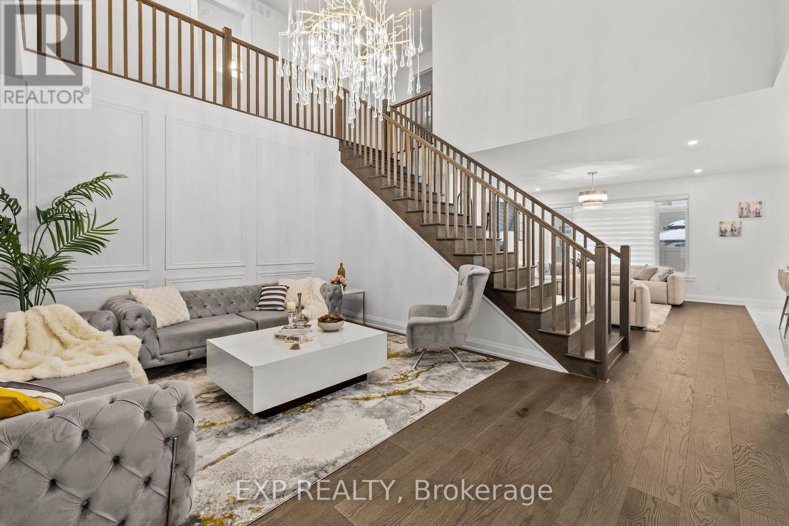 ARCHITECTURAL FLOW AND EVERYDAY LUXURY meet in this masterfully designed residence where every floor tells a story of scale and connectivity. The centerpiece is a stunning OPEN-TO-ABOVE LIVING ROOM anchored by a beautiful GOLDEN CHANDELIER that highlights the home's incredible height, while MAPLE WRAP-AROUND RAILINGS from the second level ensure every room feels connected to the heart of the home. The kitchen is a true showstopper, featuring a MASSIVE ISLAND WITH WATERFALL EDGES ON BOTH SIDES, seamlessly BUILT-IN APPLIANCES, and an endless array of custom drawers and pull-outs. Designed for the modern professional, the main floor offers TWO DENS PLUS A FULL BATHROOM, providing total flexibility for DUAL HOME OFFICES or MULTIGENERATIONAL LIVING. Upstairs, the layout is impressively spacious with FIVE BEDROOMS AND THREE FULL BATHS, including a luxurious 5-PIECE ENSUITE, a SECOND ENSUITE, and a JACK-AND-JILL BATH, while the primary suite features a WALK-IN CLOSET THE SIZE OF A BEDROOM. The FINISHED BASEMENT is built for entertainment with a MOVIE SECTION, PLAY AREA, AND LOUNGE, plus a massive unfinished wing for a HOME GYM OR STORAGE. Step outside to a LARGE DECK AND FULLY FENCED YARD in prime RIVERSIDE SOUTH, located minutes from the RIDEAU RIVER trails and boating, the LRT, and the future TOWN CENTRE. YOUR SEARCH ENDS HERE.