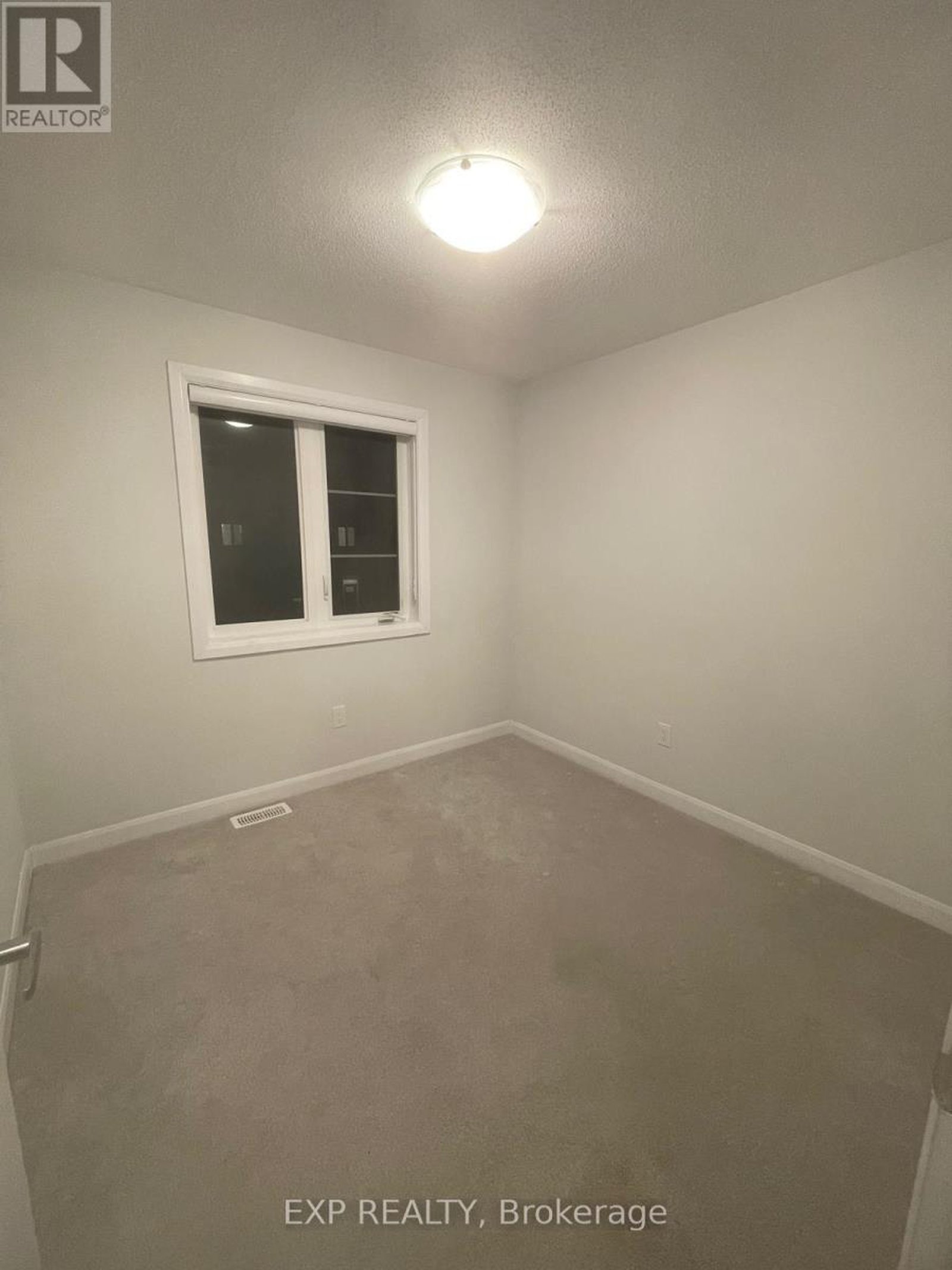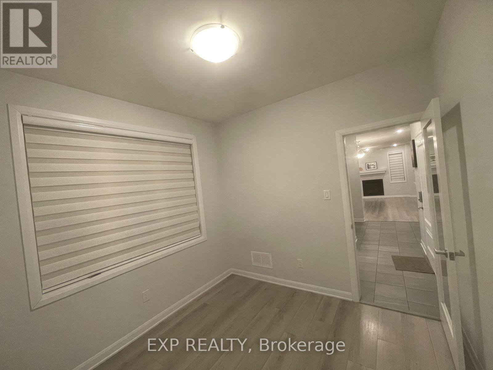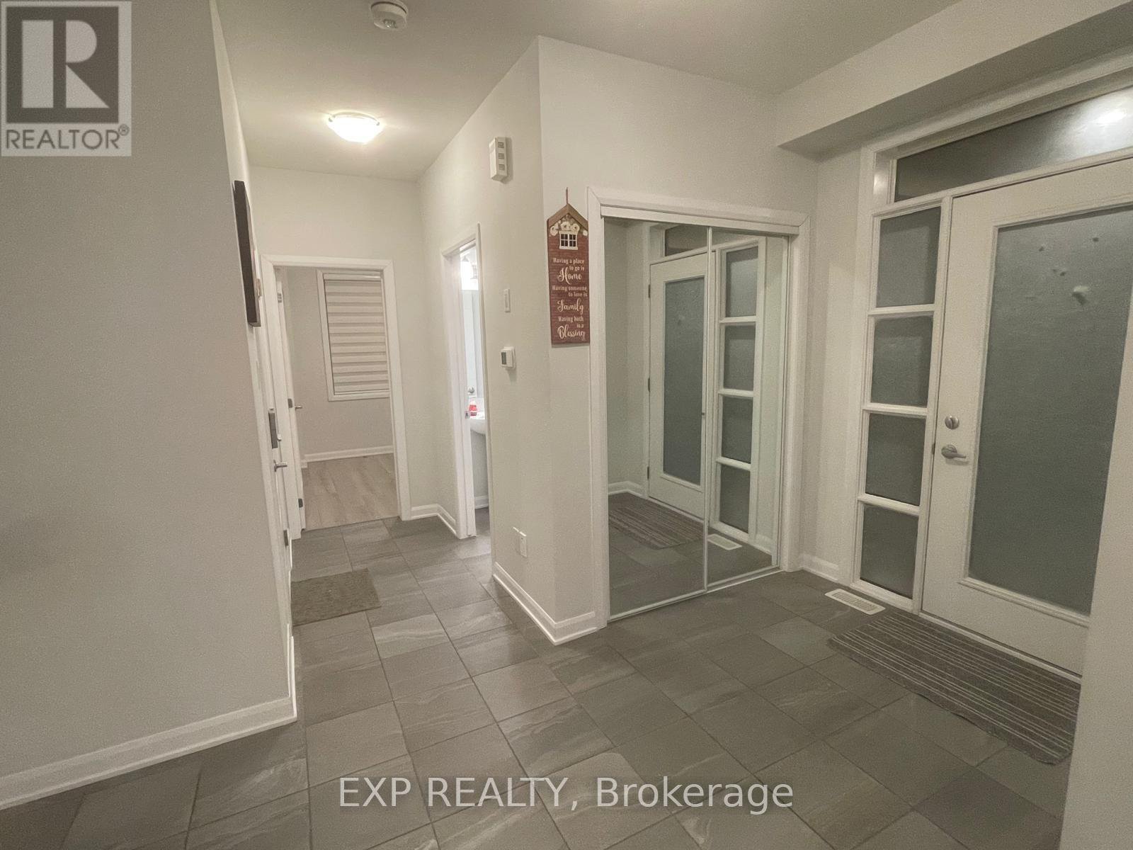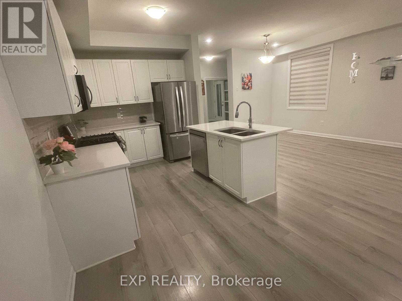 Immediate possession available! END UNIT offering 4 bedrooms and 4 bathrooms in the highly desirable Quinn's Pointe community. The main level welcomes you with a spacious foyer and features an open-concept living and dining area with hardwood flooring throughout. The modern kitchen is equipped with quartz countertops, tiled backsplash, gas stove, stainless steel appliances, a large island with breakfast bar, and ample cabinetry. A main-floor den provides the perfect space for a home office or study.Hardwood stairs lead to the second level, where the hallway continues in hardwood. The primary suite includes a generous walk-in closet and a 4-piece ensuite with quartz vanity, soaker tub, and glass shower. Three additional well-sized bedrooms, a full bathroom, and a convenient laundry room complete the upper floor.The fully finished basement offers a spacious recreation room, a 2-piece bathroom, and abundant storage. Additional features include central A/C, inside access from the single garage, and an extended driveway accommodating up to two extra vehicles. Ideally located close to parks, schools, nature trails, and the Minto Recreation Complex. Access to future greenbank road leading to the highway 416