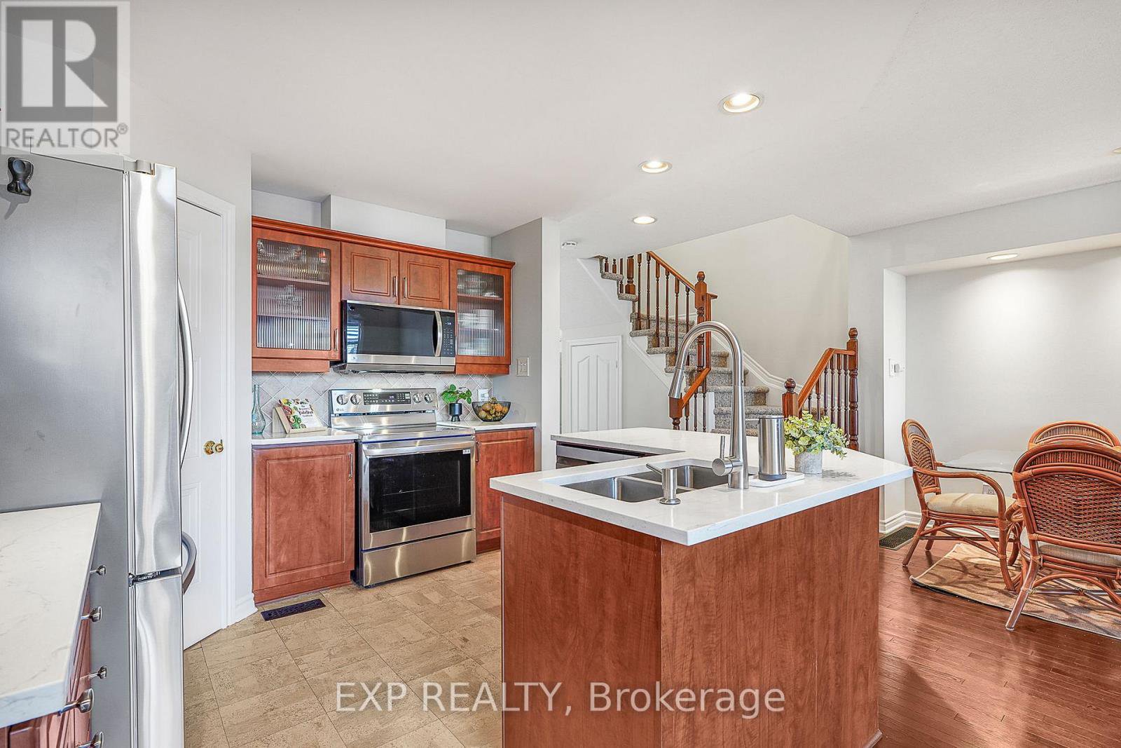 Welcome to this beautifully maintained townhome, ideally located just steps from shopping, restaurants, schools, parks, medical services, and pharmacies. Truly, everything you need is right at your doorstep! Proudly owned by its original owner, this home has been lovingly cared for and freshly repainted from top to bottom. Stunning landscaping enhances both the front and backyard, creating inviting outdoor spaces perfect for relaxing or entertaining. Inside, the main level offers a convenient powder room and a bright kitchen featuring quartz countertops, a walk-in pantry, stainless steel appliances, and a charming breakfast nook, the perfect spot for your morning coffee. Upstairs, you'll find two spacious bedrooms, a versatile den overlooking the living room below, and an impressive cathedral ceiling that fills the space with natural light and an airy feel. The full bathroom includes a soaker tub and a separate shower for added comfort. The finished basement adds valuable living space, complete with a full bathroom and a large recreation area, ideal for guests, a home office, or your own private retreat. A rare opportunity to own a thoughtfully designed, well-loved home in a prime Orléans location.