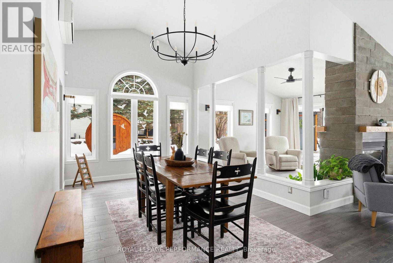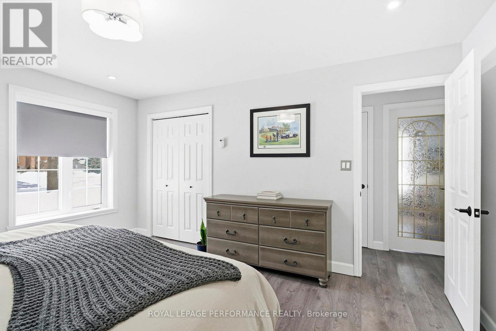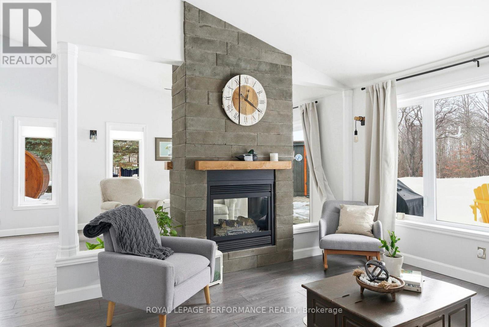 This uniquely designed and stylish 3-bedroom home with garage sits proudly on a rare double lot and delivers effortless one-level living. Built slab-on-grade, it's ideal for buyers seeking a low-maintenance, mobility-friendly lifestyle without compromising on design or comfort. Step inside to a spacious, light-filled open concept layout where the living and dining areas soar with vaulted ceilings. Radiant heated floors keep things cozy, while a striking two-sided gas fireplace with a modern stone surround adds warmth and flair. The custom eat-in kitchen (2015) is both functional and refined, featuring quartz countertops, centre island, backsplash, and stainless steel appliances. The primary bedroom offers a private retreat with a 3-piece ensuite highlighted by a charming clawfoot soaker tub. Two additional well-sized bedrooms provide flexibility for family, guests, or a home office. A 3-piece guest bathroom with shower completes the interior. Outside, the backyard is designed for entertaining and relaxing, complete with a large interlocking patio, stonewall garden, fire pit, and storage shed. Additional highlights include a dedicated laundry room, central air conditioning, Generac generator, ICF Blue Max construction, tankless hot water heater (2022), washer and dryer (2023), roof shingles (2015), and extensive updates to paint, trim, and flooring. Other notables: Garage door 2025, light fixtures, washroom vanity, garden / storage shed refurbished Gutter guards, landscaped gardens, and an interlocked driveway round out the package. Ideally located close to recreation and everyday amenities, this home blends modern comfort, smart upgrades, and standout design-an exceptional opportunity on a truly impressive lot. Parks of the St. Lawrence, golf, schools, church and other amenities nearby. 10 min to Cornwall. Allow 24 hour irrevocable on offers.