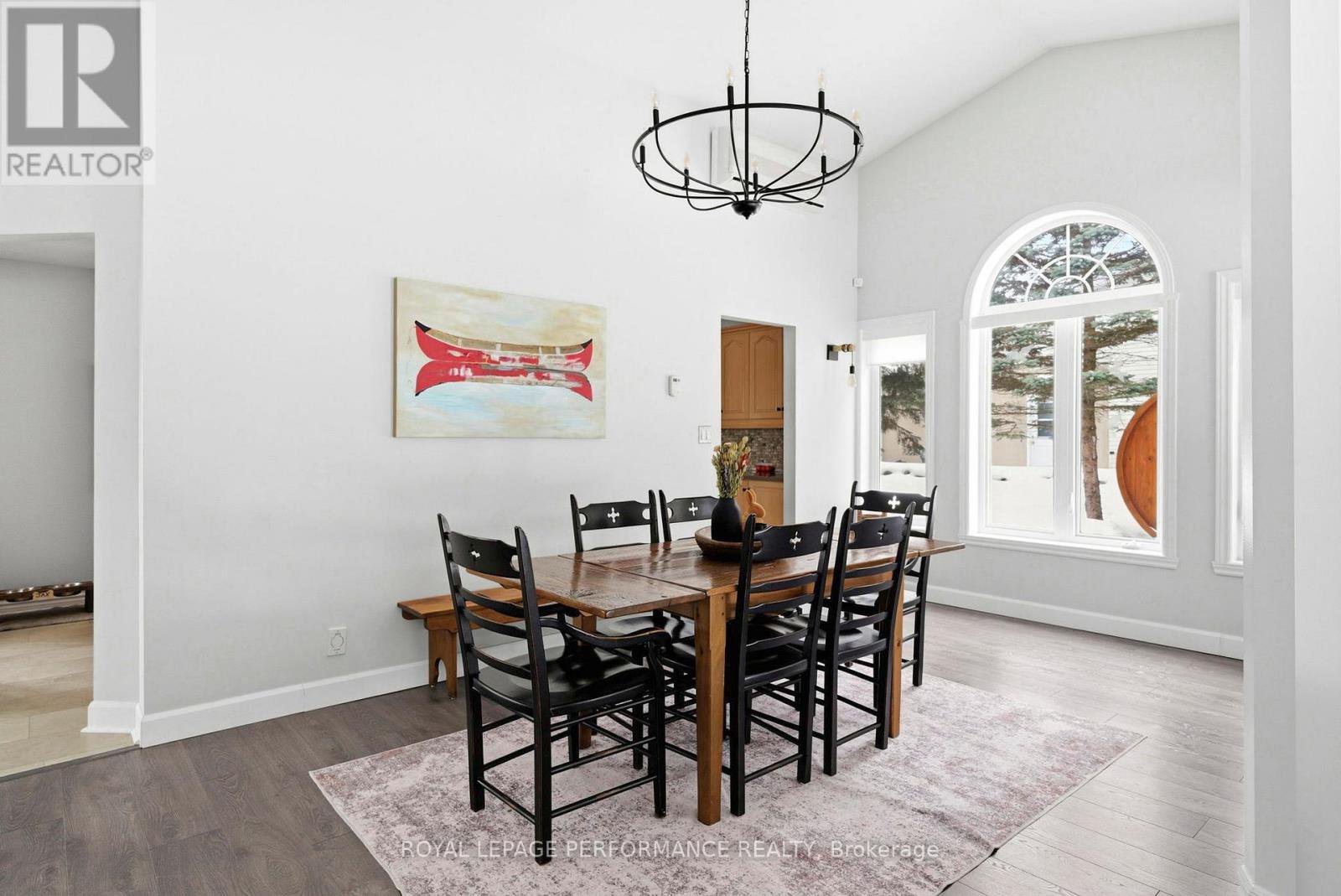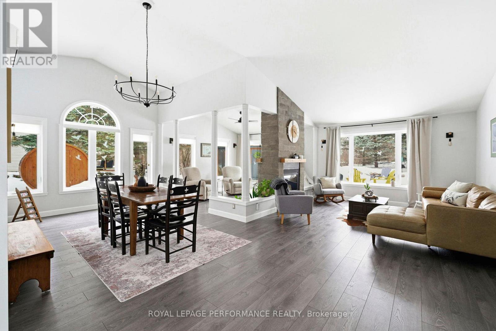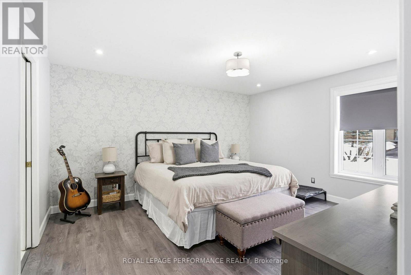 This uniquely designed and stylish 3-bedroom home with garage sits proudly on a rare double lot and delivers effortless one-level living. Built slab-on-grade, it's ideal for buyers seeking a low-maintenance, mobility-friendly lifestyle without compromising on design or comfort. Step inside to a spacious, light-filled open concept layout where the living and dining areas soar with vaulted ceilings. Radiant heated floors keep things cozy, while a striking two-sided gas fireplace with a modern stone surround adds warmth and flair. The custom eat-in kitchen (2015) is both functional and refined, featuring quartz countertops, centre island, backsplash, and stainless steel appliances. The primary bedroom offers a private retreat with a 3-piece ensuite highlighted by a charming clawfoot soaker tub. Two additional well-sized bedrooms provide flexibility for family, guests, or a home office. A 3-piece guest bathroom with shower completes the interior. Outside, the backyard is designed for entertaining and relaxing, complete with a large interlocking patio, stonewall garden, fire pit, and storage shed. Additional highlights include a dedicated laundry room, central air conditioning, Generac generator, ICF Blue Max construction, tankless hot water heater (2022), washer and dryer (2023), roof shingles (2015), and extensive updates to paint, trim, and flooring. Other notables: Garage door 2025, light fixtures, washroom vanity, garden / storage shed refurbished Gutter guards, landscaped gardens, and an interlocked driveway round out the package. Ideally located close to recreation and everyday amenities, this home blends modern comfort, smart upgrades, and standout design-an exceptional opportunity on a truly impressive lot. Parks of the St. Lawrence, golf, schools, church and other amenities nearby. 10 min to Cornwall. Allow 24 hour irrevocable on offers.