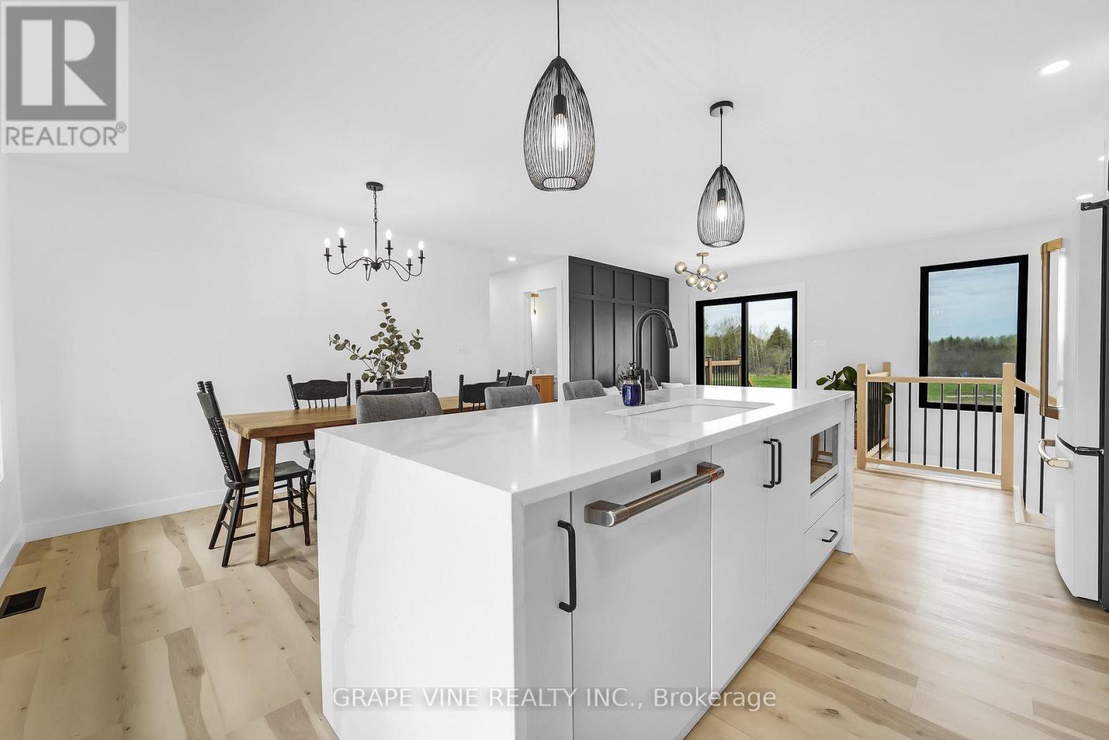 Set on 29 breathtaking acres, this extensively renovated and rebuilt home is a dream come true for hobby farm enthusiasts and families craving space to roam, explore, and play. The newly redesigned 2+1 bedroom home is filled with natural light, highlighted by sleek black-framed windows throughout. The upper level features a thoughtfully designed layout with a beautiful kitchen showcasing an oversized quartz island, Café appliances, and custom finishes. The lower level is a bright and inviting extension of the home, flooded with natural light from oversized above-grade windows. Feature walls and a built-in bar area add warmth and character, creating an inviting space for family gatherings and entertaining. Step outside to a large new back deck overlooking the expansive property, perfect for watching kids play, animals roam, or simply enjoying peaceful country sunsets. A custom-built fire pit sets the scene for cozy evenings after a day spent outdoors. The detached garage-originally the property's log home-offers a versatile space for workshops, equipment, or hobby projects. With sprawling acreage, established trails, and wide-open clearings, this property is ideal for hobby farming, 4-wheeling, snowmobiling, and outdoor adventures year-round. A newly added driveway leads to a private clearing, perfect for future barns, paddocks, or a second dwelling. The large barn provides excellent storage for equipment, toys, and tools, while winding paths lead through the forest to a charming pond at the back of the property-transforming into a picturesque skating rink in the winter. Mature sugar maple trees along the road offer privacy and stunning curb appeal, completing this rare opportunity to own a property where family memories, outdoor fun, and country living come together beautifully.