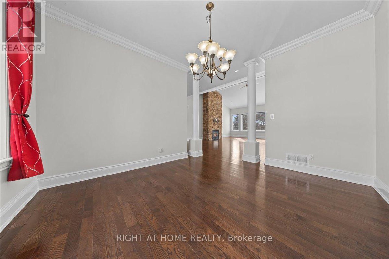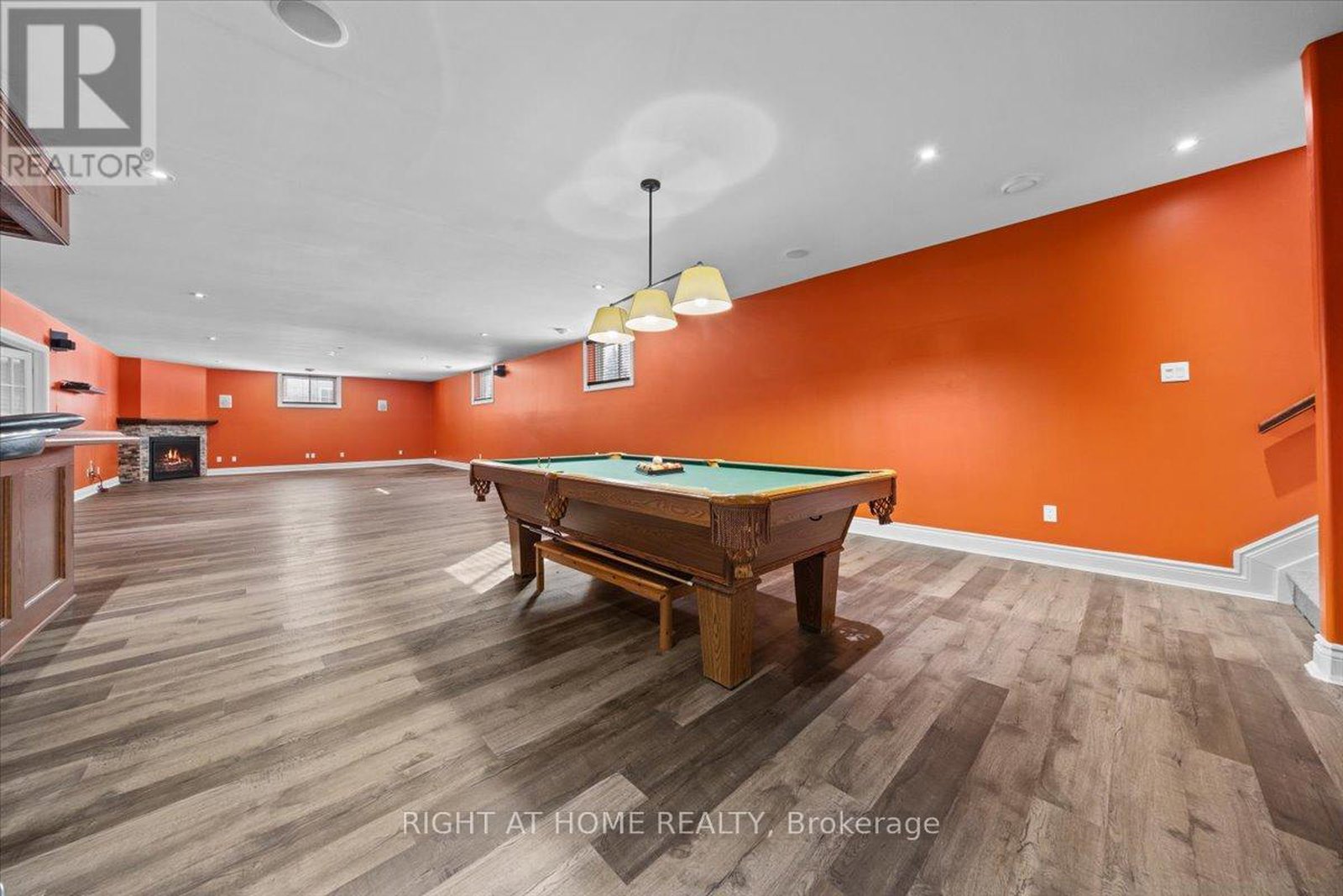 Absolutely gorgeous freshly painted 4-bedroom home on a beautifully landscaped 1/2-acre lot. The main floor offers a bright open concept floor plan with a kitchen featuring a beautiful, oversized island, as well as a living/dining area, perfect for family gatherings. Hardwood floors, vaulted ceiling and floor-to-ceiling stone fireplace. The other side of the main level consists of 3 good sized bedrooms plus an office room. Master Suite includes an en-suite bath with soaker tub, walk-in shower and double sinks. Many windows offer a peaceful view of the backyard. Double patio doors from the eating area leading to the large deck among the trees. The large basement is designed to entertain, included are bar taps, and dishwasher at the bar. You'll love the custom-built 16' bar, playground, fireplace and 9' ceilings, including a practical 4th bedroom with a 3pc bathroom. A 3-car garage is also always a plus.