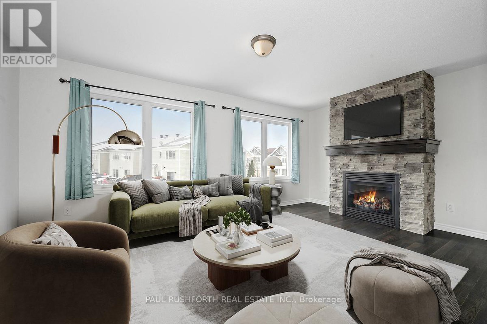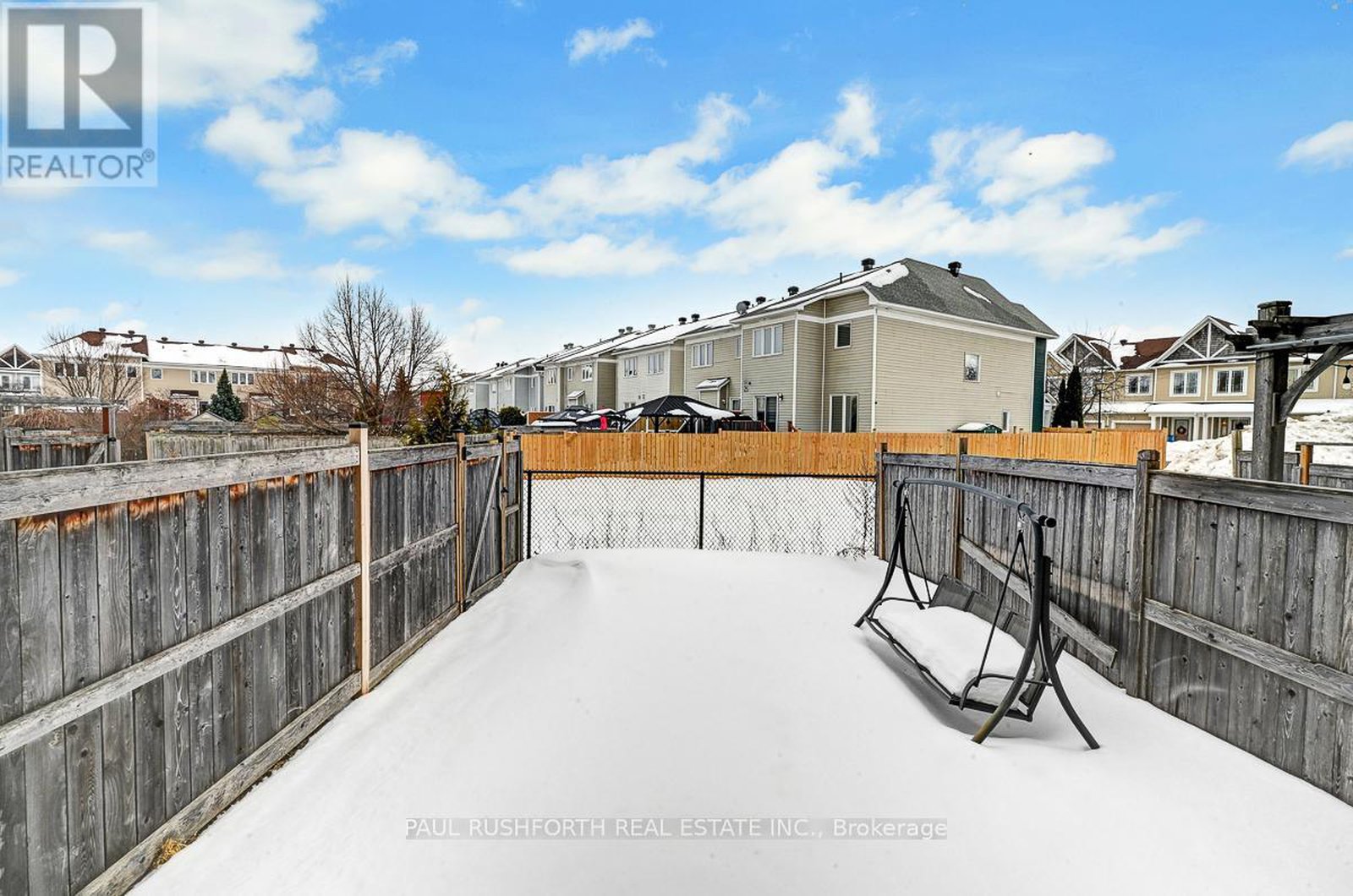 Fantastic three bedroom townhome, with walkout basement, freshly painted and ready to move in, with no rear neighbours backing onto walking trails. This modern layout offers lots of functional space with a gorgeous kitchen that features granite counters, stainless appliances, a handy breakfast bar and loads of cabinet space. The giant living room boasts a gas fireplace and offers enough room for a dining space or an office space as well as a living room. The lower level is fully finished with a walkout recroom, laundry room and garage access. The primary bedroom is large enough for a king sized bed and has a walk-in closet, the second and third bedrooms are a nice size. With hardwood throughout the main living level, freshly painted and ready to move-in, backing onto walking paths that lead to the pond this chic town home offers exceptional value. Some photos have been virtually staged.