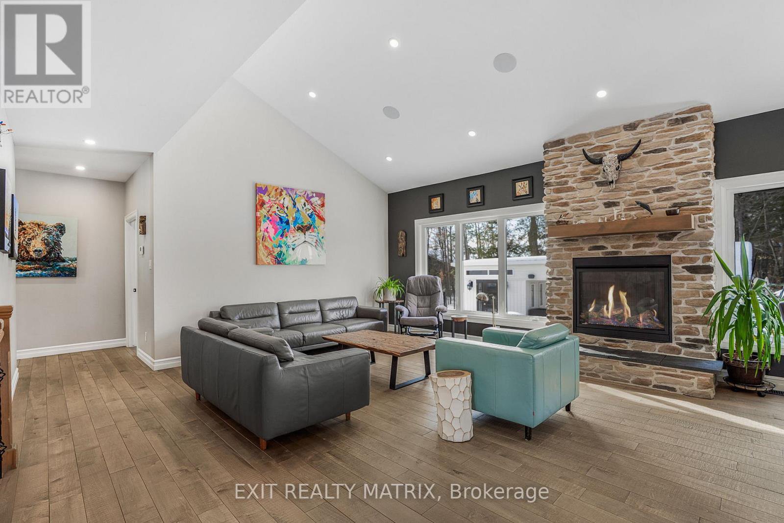****OPEN HOUSE SATURDAY FEB 28 1-3PM. Welcome to this exceptional executive bungalow in the prestigious Seigneurie Estate, located in the charming community of L'Orignal. Offering luxury finishes and outstanding functionality, this home is designed for both elegant entertaining and comfortable family living. The open-concept main floor showcases vaulted ceilings and a striking natural gas fireplace as the focal point of the living area. The gourmet kitchen features granite countertops, copper sinks, a pot filler over the stove, ample counter space, and a butler's kitchen with beverage fridge. A stunning floor-to-ceiling temperature-controlled wine cellar with glass doors adds a dramatic touch. The primary suite offers a spa-inspired ensuite with tile shower, soaker tub, and high-end finishes. Two additional bedrooms and a full bathroom complete the main level. You'll also find a private office, mudroom with built-ins, powder room, and a full laundry room with custom cabinetry and its own fireplace. Heated floors in the bathrooms and laundry area provide added comfort. The fully finished basement includes a spacious family room with bar area, a fourth bedroom, bonus room, full bathroom, and a large mechanical/storage room. The oversized heated garage fits up to three cars and is fully finished, offering extra storage plus rear yard access. Step outside to your backyard oasis with a covered porch with natural gas BBQ hookup, heated saltwater inground pool (with new mechanics & liner), pool house, covered lounge area, and hot tub. A multi-purpose cement slab (25ft x 35ft) serves as a basketball court in summer and an ice rink in winter. Freshly paved driveway with extensive landscaping around the home. An exceptional opportunity in one of the area's most desirable neighborhoods. Additional highlights include a Generac generator with automatic transfer switch and integrated smart home with surround sound system. Updated Natural Gas Central Air with A/C, Municipal Water.