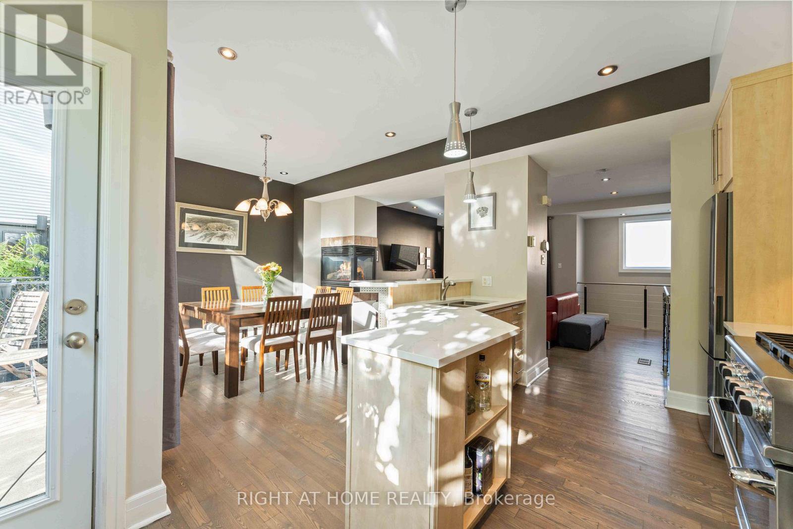 Tucked away on a quiet, private street in the heart of Lowertown, this luxurious end-unit townhome blends modern style, natural light, and exceptional functionality across three spacious levels. Offering 2 bedrooms, 3 bathrooms, and a separate den/home office, this executive freehold residence is ideal for professionals or those seeking refined urban living steps from the ByWard Market. The main level features a bright den or home office, a convenient laundry area, a powder room, and direct access to the private backyard and attached garage. The second level showcases an elegant open-concept layout. The chef-inspired kitchen includes stainless steel appliances, a gas stove, and ample cabinetry, with a walkout balcony for effortless BBQ access. The living and dining areas are defined by rich hardwood floors, large picture windows, and a stunning three-sided gas fireplace, creating warmth and ambiance throughout. On the top floor, you'll find a sun-drenched primary suite featuring dual closets and a spa-like 4-piece en-suite with a glass shower and soaker tub. A spacious second bedroom and another full bath complete this level. This home offers the perfect balance of tranquillity and convenience just steps to the ByWard Market, Rideau Centre, Global Affairs, the U.S. Embassy, Parliament Hill, UOttawa, the Rideau Canal and parks.