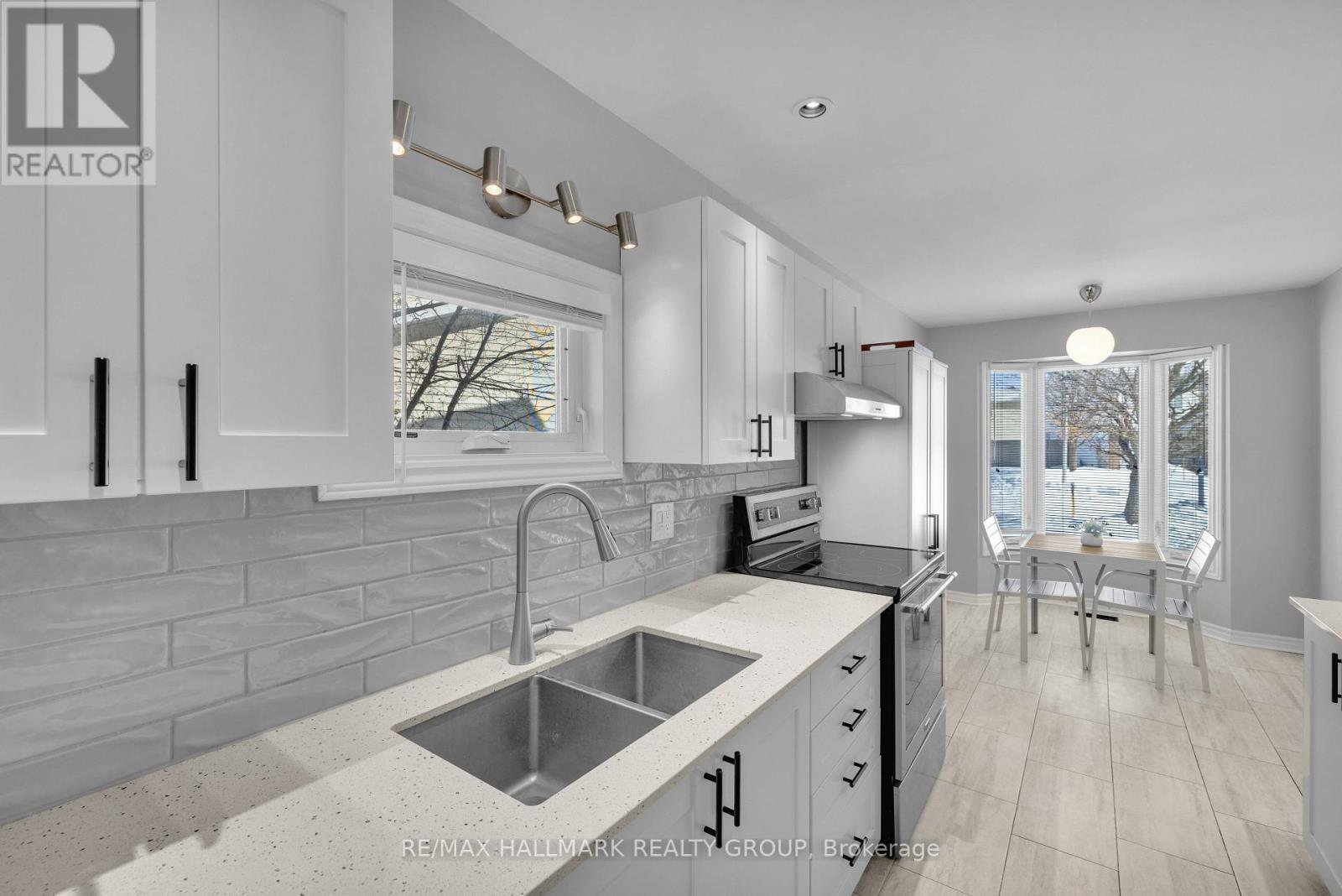 Beautifully renovated and truly move-in ready, this stylish 3-bedroom home is nestled on an oversized pie-shaped lot in the heart of popular Glen Cairn - offering the perfect blend of modern updates, functional space, and everyday comfort. The stunning kitchen is a standout feature, showcasing modern white cabinetry, quartz countertops, stainless steel appliances, contemporary subway tile backsplash, and a bright eat-in area framed by large windows. Entertain with ease in the formal dining room, complete with patio door access to the backyard - creating effortless indoor-outdoor flow. The spacious living room impresses with soaring vaulted ceilings and a cozy gas fireplace, adding warmth and architectural character. Convenient side-door entry, inside entry from garage and a main floor powder room add everyday practicality. Upstairs, the generous primary bedroom offers a walk-through closet and cheater access to the beautifully renovated 4-piece bathroom. Two additional well-sized bedrooms complete the level. The finished lower level expands your living space with a versatile recreation area, additional family room space, dedicated laundry, and abundant storage - ideal for movie nights, a home office, or play space. Step outside to your private, west-facing backyard retreat. This fully fenced, oversized pie-shaped lot, offers mature trees, a large deck, and exceptional outdoor space rarely found at this price point - the space you've been searching for! Ideally located just steps to schools, parks, the Trans Canada Trail, shopping, public transit, and only minutes to the CTC and Tanger Outlets, this home delivers exceptional value in a family-friendly community. A turnkey opportunity with style, space, and a premium lot.