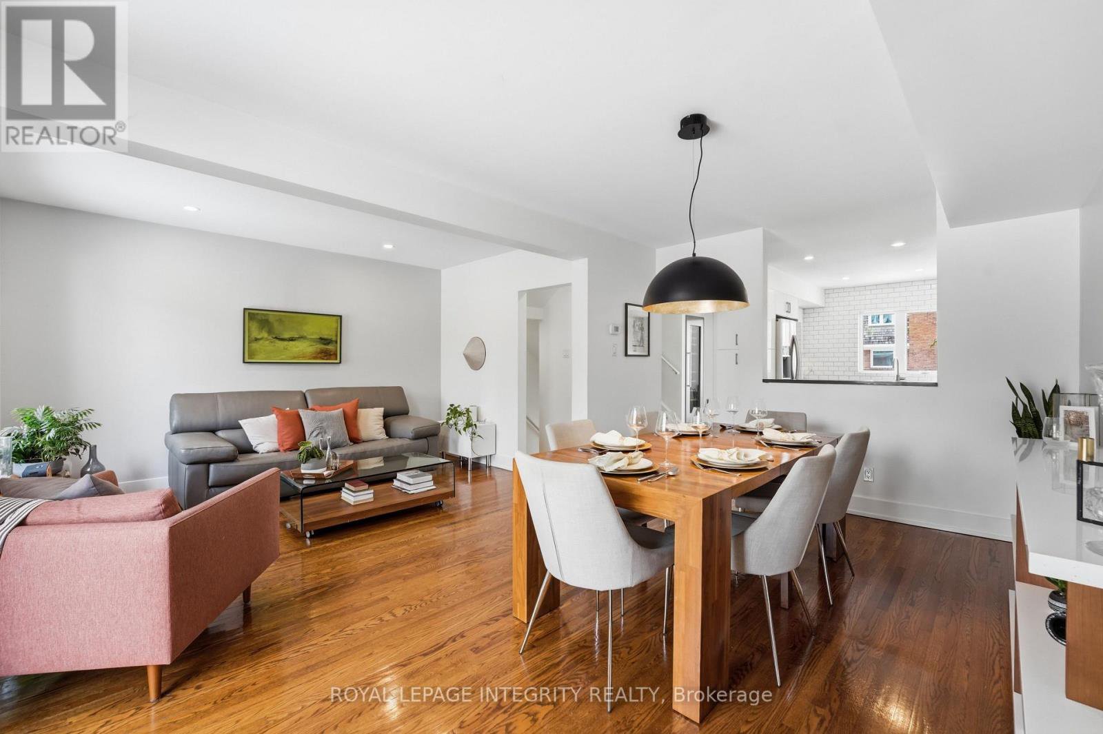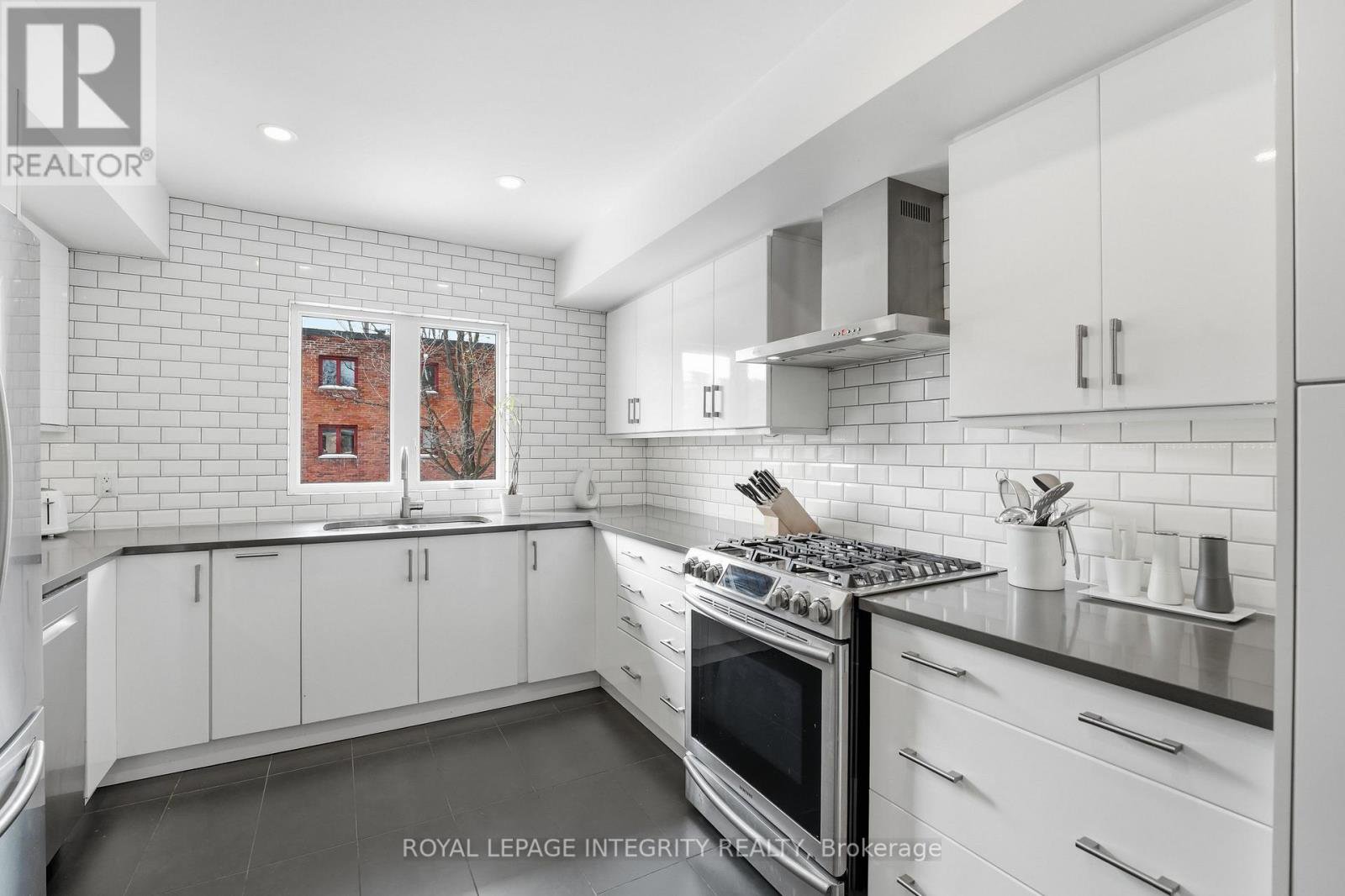 Exclusive cul-de-sac in the heart of Old Ottawa South. This sophisticated, turn-key 3-storey home offers a refined take on modern living just steps from the Rideau River. Thoughtfully updated with a clean, contemporary aesthetic, the home balances style and function throughout. The main living level is bright and inviting, with large windows and ample sunlight throughout the year. Defined spaces for both living and dining create an ideal flow for everyday living and entertaining. At the centre of the home is a chic, updated kitchen featuring stone countertops, stainless steel appliances, gas range, and exceptional built-in wine fridge from Liebherr. The third level offers three large bedrooms along with a stylish, updated main bathroom, creating a private and comfortable retreat away from the main living areas. On the ground level, a finished flex space with adjacent full bathroom provides excellent versatility-ideal as a guest suite, home office, or additional living area. The setting is equally fantastic. Tucked away on a quiet lane, the home offers a sense of privacy while being moments from the Rideau River, parks, pathways, and the vibrant shops and stops that define Old Ottawa South. Common element fee of $421/month includes excellent property management, roof maintenance, water and sewer, snow removal & grass cutting, plus maintenance of common elements. Don't miss this stylish, move-in ready home in an exceptional location.