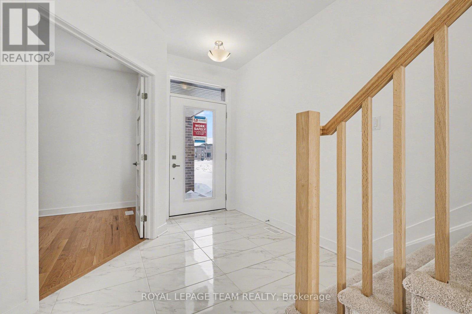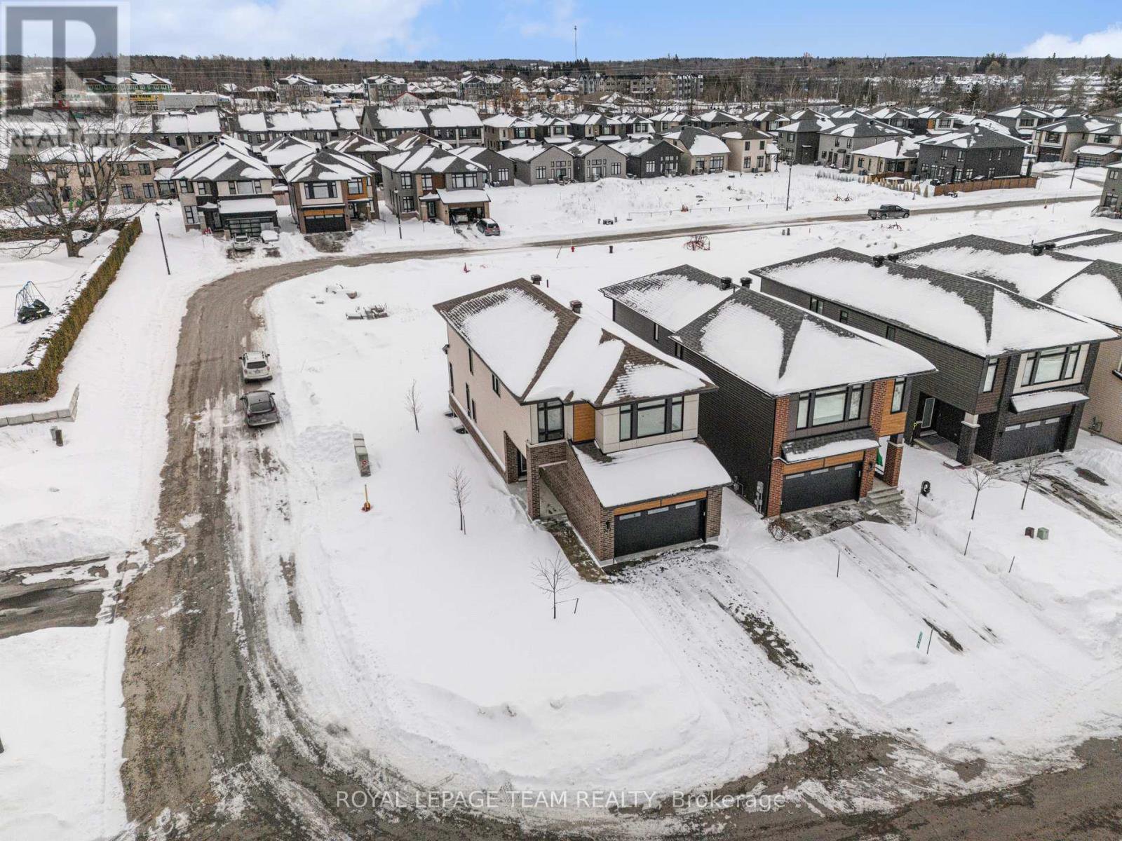 The Ferndale Pacific model, built in 2023 by Urbandale Construction, beautifully combines modern living with the tranquility of nature. Situated in "The Creek" community on a spacious corner lot, you can enjoy walking trails, cross-country skiing, and peaceful paddling along the creek, all just steps from your front door. This home is highlighted by its Energy Star and R-2000 qualified features, promising luxurious living with eco-friendly efficiency. Upon entering, high ceilings and smooth finishes greet you, setting the tone for the open-concept layout. Bright hardwood flooring spans the entire main floor, enhancing the home's modern appeal. The living room is spacious and inviting, adorned with a gas fireplace and sleek black trim, perfect for cozy evenings. It seamlessly flows into the chef-inspired kitchen, featuring quartz countertops and a giant wall pantry, with direct access from the double car garage to a handy mudroom leading into the kitchen for added convenience. The main level includes a den at the front entrance, ideal for a home office, and a convenient powder room. Upstairs, you'll find 4 bedrooms designed for comfort and style. The primary suite offers a restful haven with a double sink in the ensuite, a Roman tub, and a glass shower. The main bathroom upstairs features quartz countertops and a double sink, providing ample space for family use. The finished basement includes a versatile games room with a rough-in for an additional bathroom, offering extra space for entertainment or relaxation. The exterior boasts a maintenance-free vinyl siding finish, and paved driveway, creating an inviting curb appeal. The garage features insulated doors, Wi-Fi-enabled openers, catering to modern-day needs. Embrace the perfect harmony of elegance and efficiency in this extraordinary home just minutes away from shops, schools, and essential amenities.