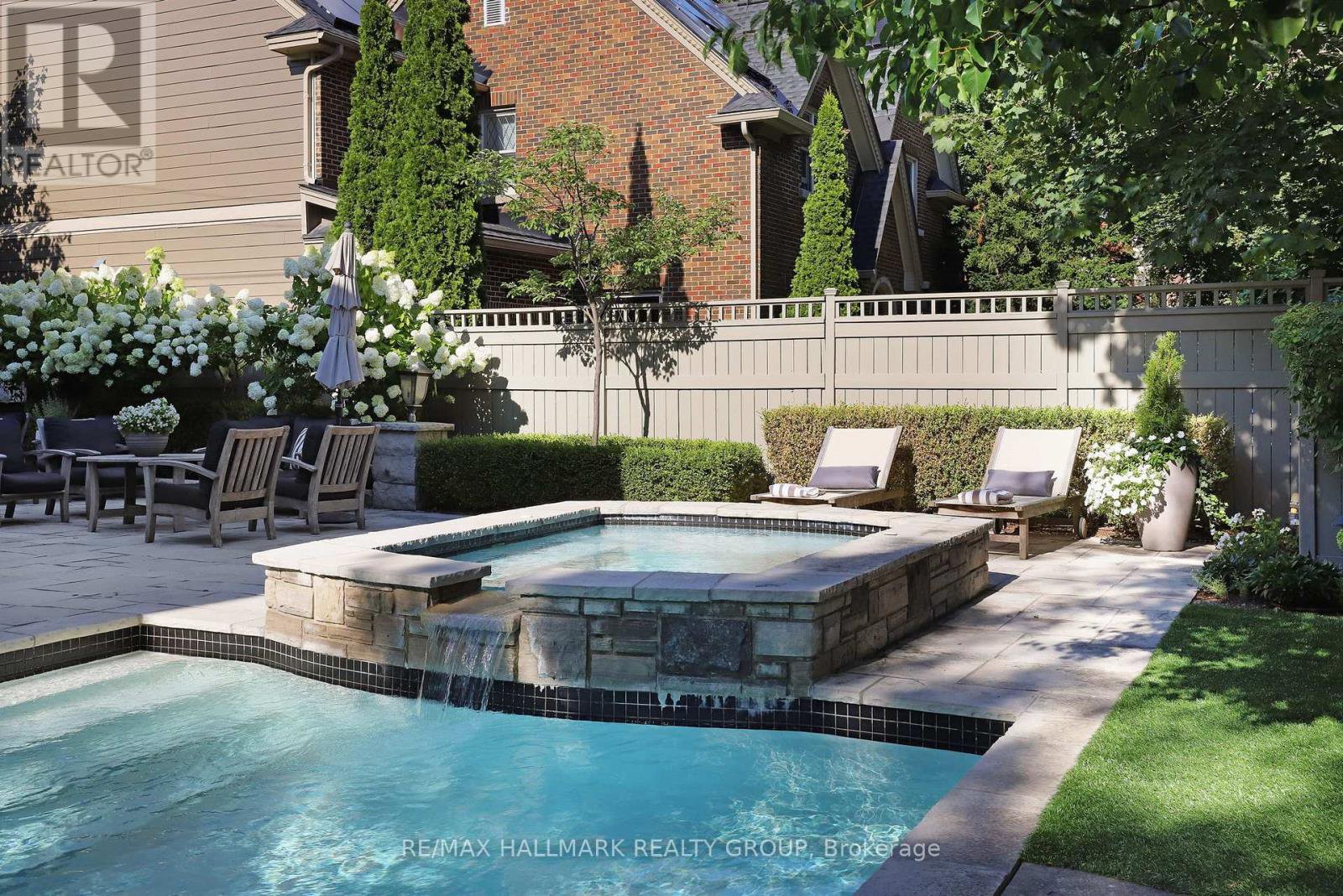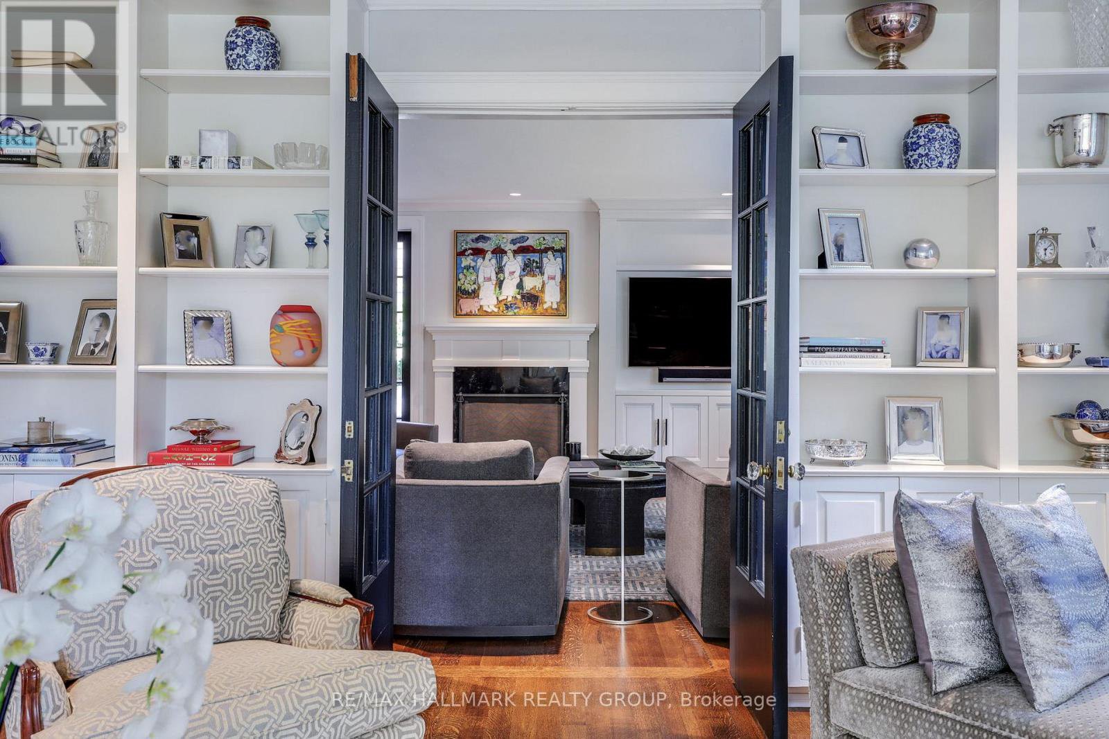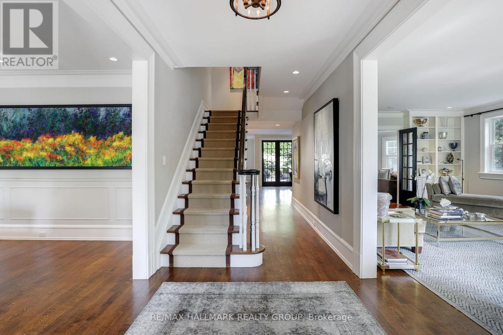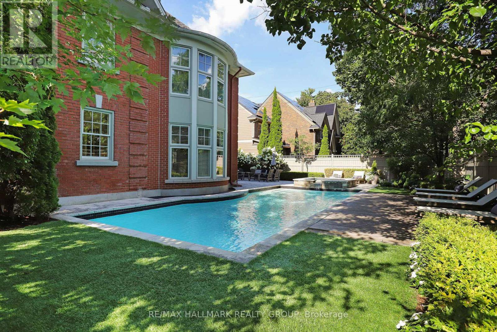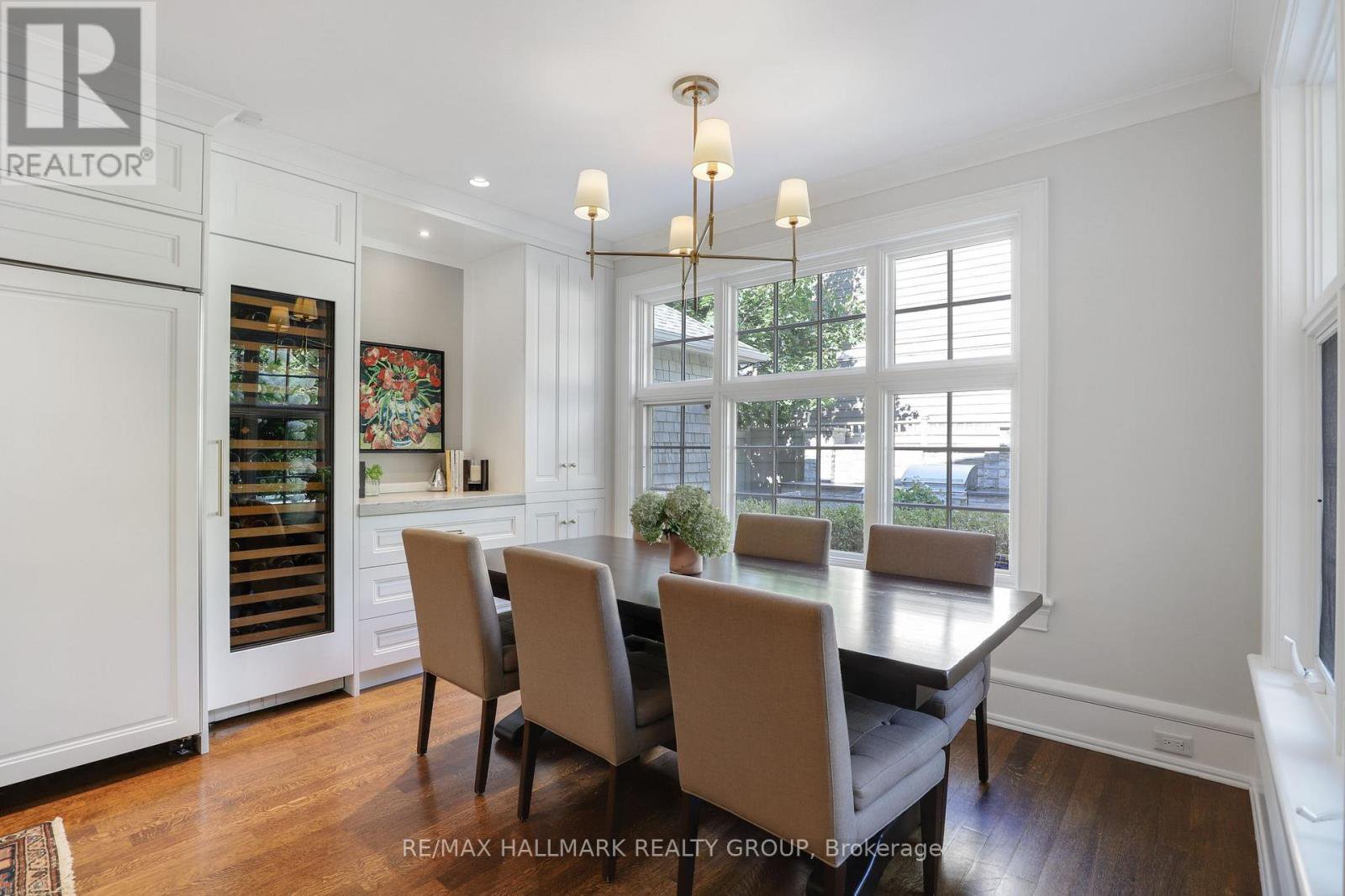 A rare offering in Ottawa's prestigious Island Park neighbourhood - 525 Piccadilly Avenue is a Barry Hobin designed corner estate with interiors by 2H Design, blending heritage character and modern luxury across four levels. The grand foyer sets the tone with soaring ceilings, rich hardwood, and detailed millwork. Formal living and dining rooms feature original hutches, restored shelving, and a marble fireplace. A spacious family room with bay windows, marble gas fireplace, and custom cabinetry opens to the designer kitchen and outdoor living. The kitchen showcases antique mirrored cabinetry, leathered quartz counters, a custom range hood with gas range and steam oven, wine tower, and oversized island paired with a breakfast room complete with serving area and office nook. A herringbone marble tiled mudroom with custom cubbies connects via breezeway from the over-sized garage for discreet family entry. French doors lead to a resort-style backyard with terraced dining, built-in BBQ kitchen, gunite pool with spa and water feature, and multiple lounge decks surrounded by manicured gardens. The second level offers a serene primary suite with bay window views, travertine and limestone ensuite, and dual walk-in closets. Two more bedrooms incl. another with ensuite as well as one currently used as den/office, and four-piece bath complete the floor. The third level is host to spacious bedrooms with full bath between the two. The lower level includes a recreation room, gym with infrared sauna, custom wine cellar, nanny/guest suite with bath, laundry, and ample storage. Timeless architecture, designer finishes, and exceptional outdoor living make this Island Park residence an extraordinary opportunity.