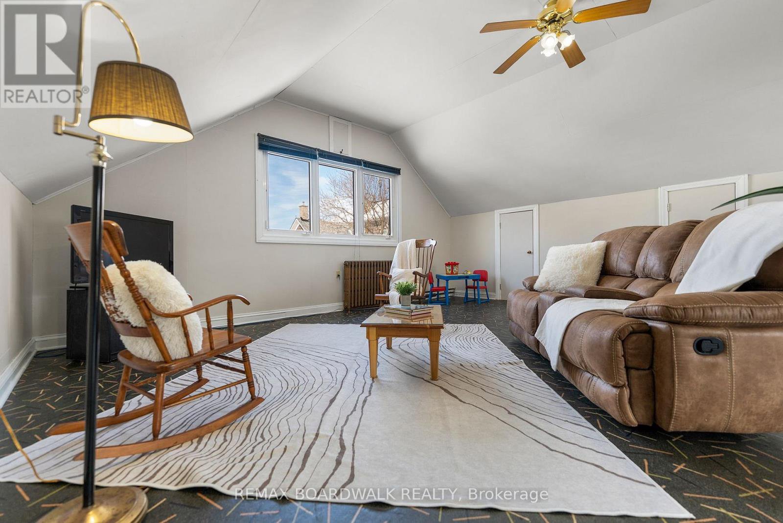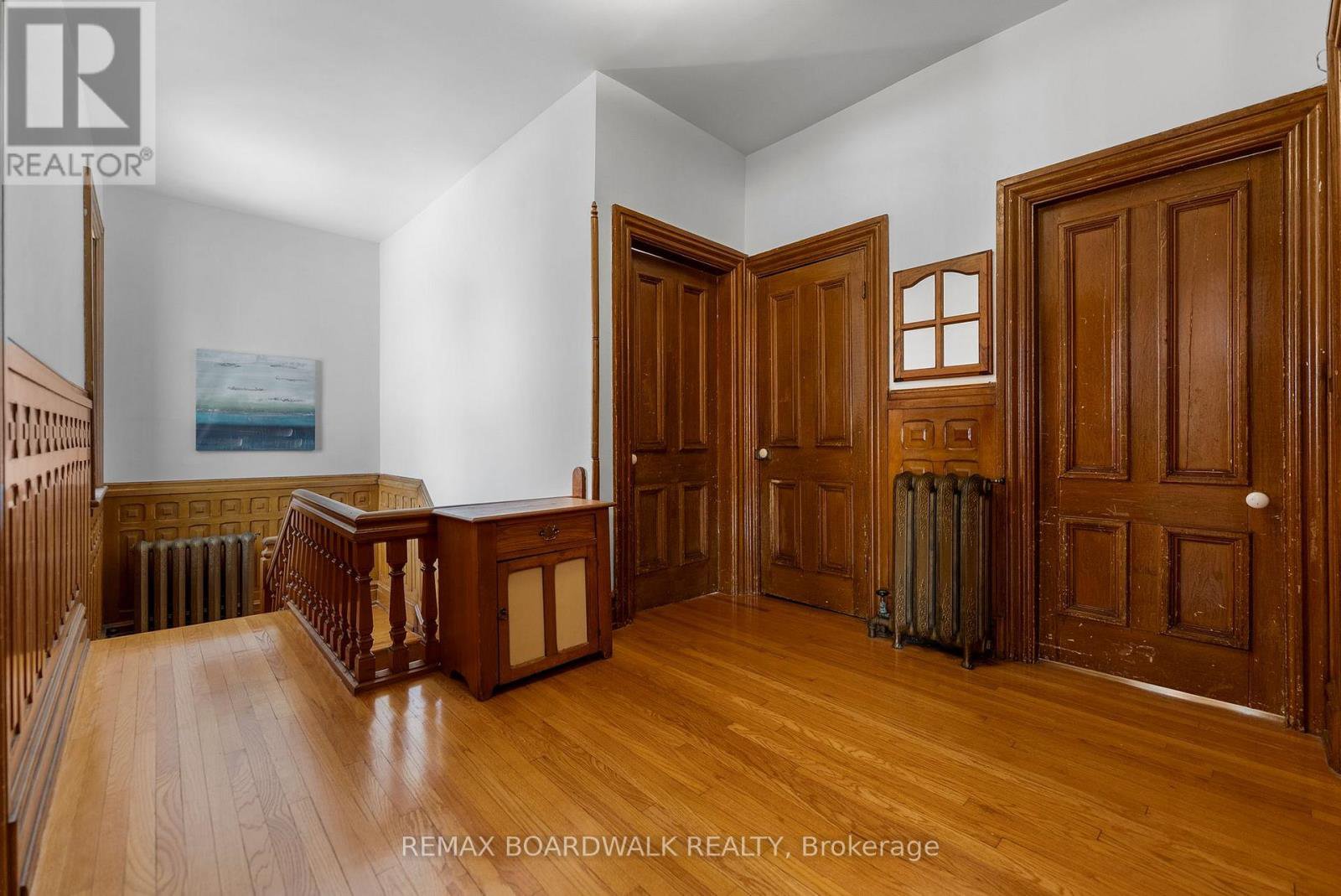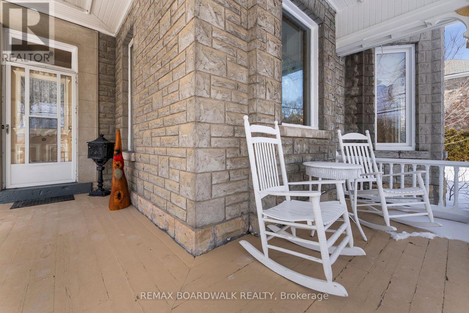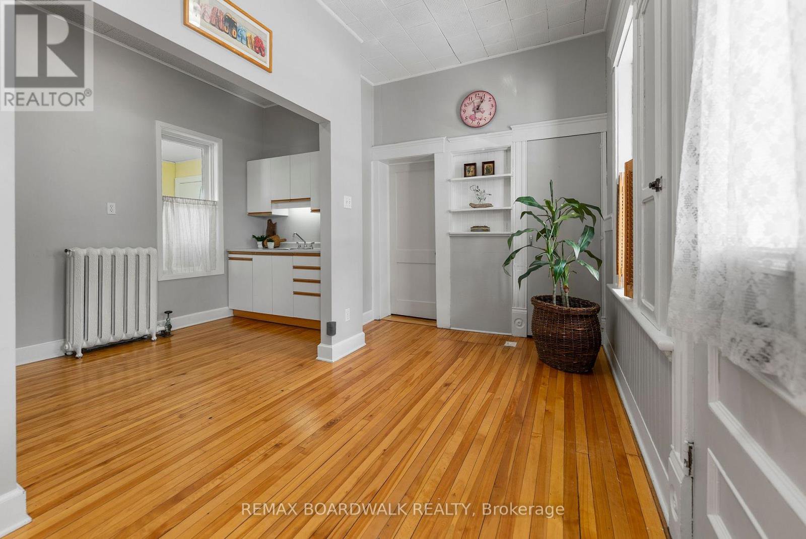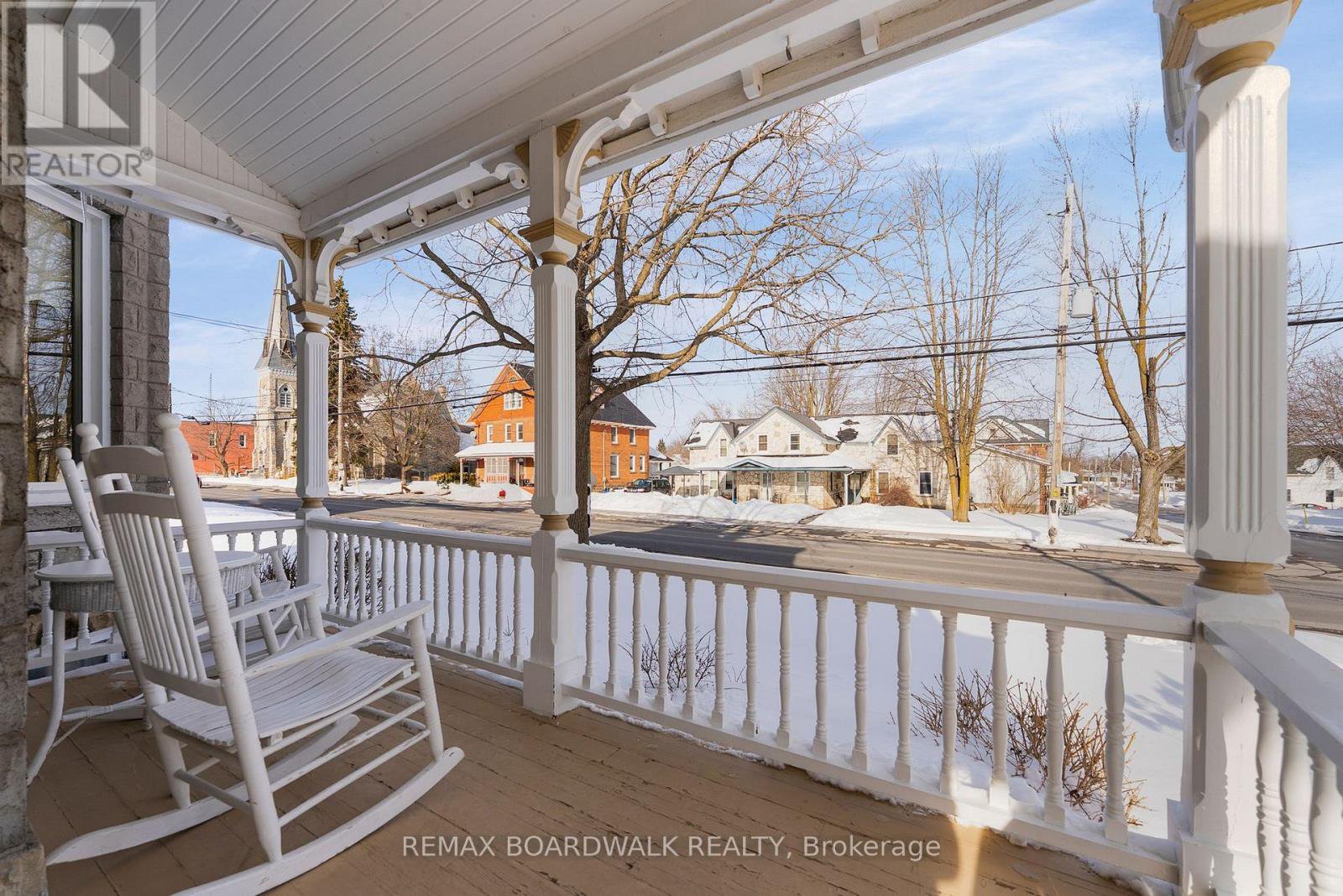 Nestled on a prominent corner lot in the heart of Winchester, this distinguished early-1900s residence offers appx. 4000 sq ft of beautifully preserved character paired with thoughtful modern updates.Originally built for a local doctor, the home reflects a timeless elegance with a stately turret, classic mansard roofline, & inviting front & side porches that enhance its grand curb appeal.Step inside to welcoming rich original wood trim, detailed wainscotting, and craftsmanship that speaks to history. The main level offers an updated kitchen designed for everyday functionality.The formal dining room flows seamlessly from the living room, separated by original pocket doors-perfect for both intimate dinners and larger gatherings A pellet stove anchors the living room, creating a warm and inviting atmosphere.The rear of the home, the doctor's original office has been thoughtfully adapted into a versatile living space featuring a family room w/gas fireplace, 2nd kitchen, updated full bathroom.This additional living quarters ideal for potential in-law suite/rental unit.The 2nd level has original hdwd flooring & wood detail following the main level. One staircase leads to a spacious primary bedroom complete with a comfortable sitting area, two generously sized secondary bedrooms & a den/office space.These rooms share an updated 5 pc bathroom that blends modern convenience with classic style. From the den, a large room presently used as storage that lead to an expansive bonus room above the double car garage.Whether envisioned as a home theatre, fitness studio, games room, or creative workspace, the possibilities here are truly endless! A 2nd staircase on this side of the home leads to a bright laundry room at the rear of the home. Set on a large, beautifully positioned corner lot, this property offers both presence and privacy. With its distinctive architectural features, substantial living space, & rare combination of history & versatility, you will be proud to call home.